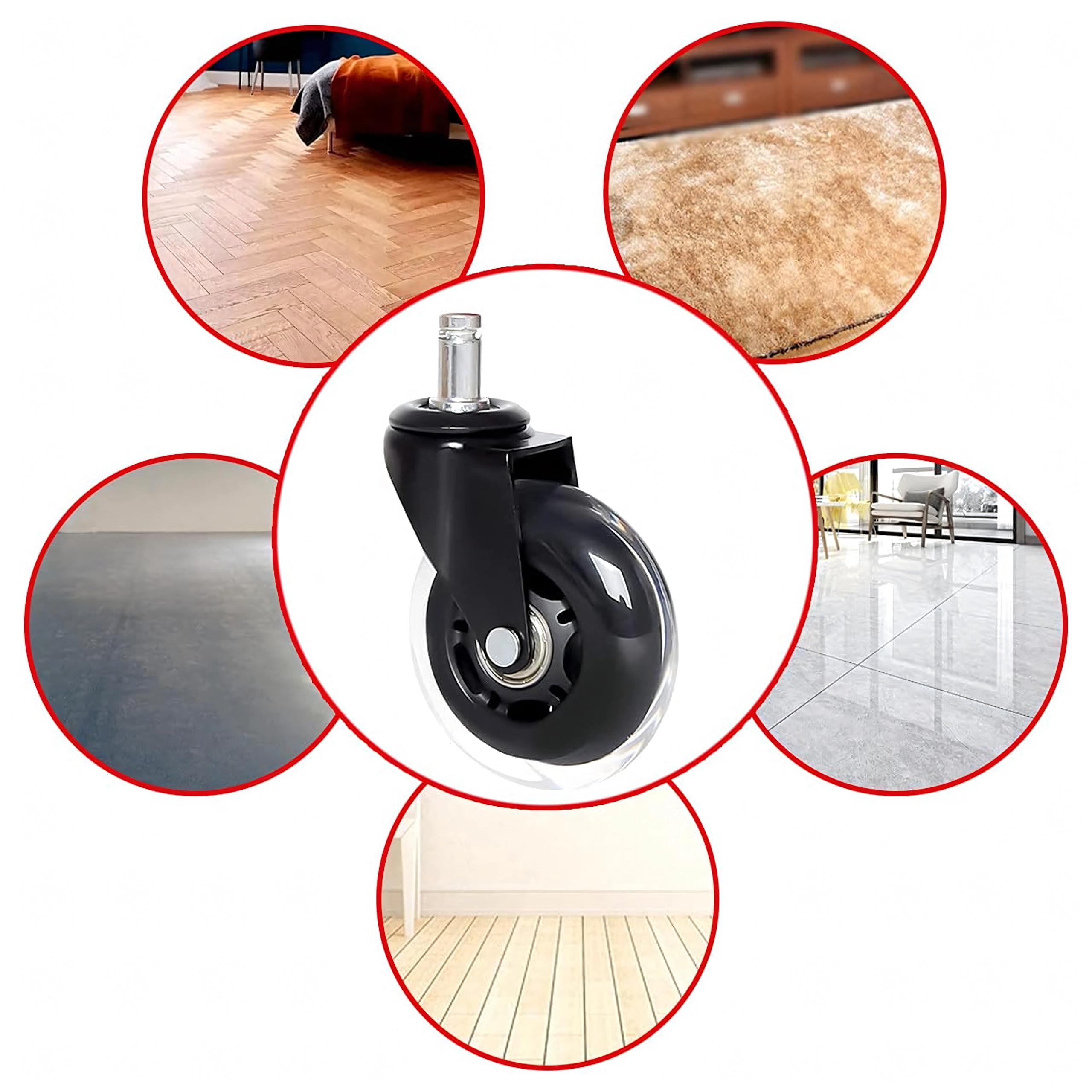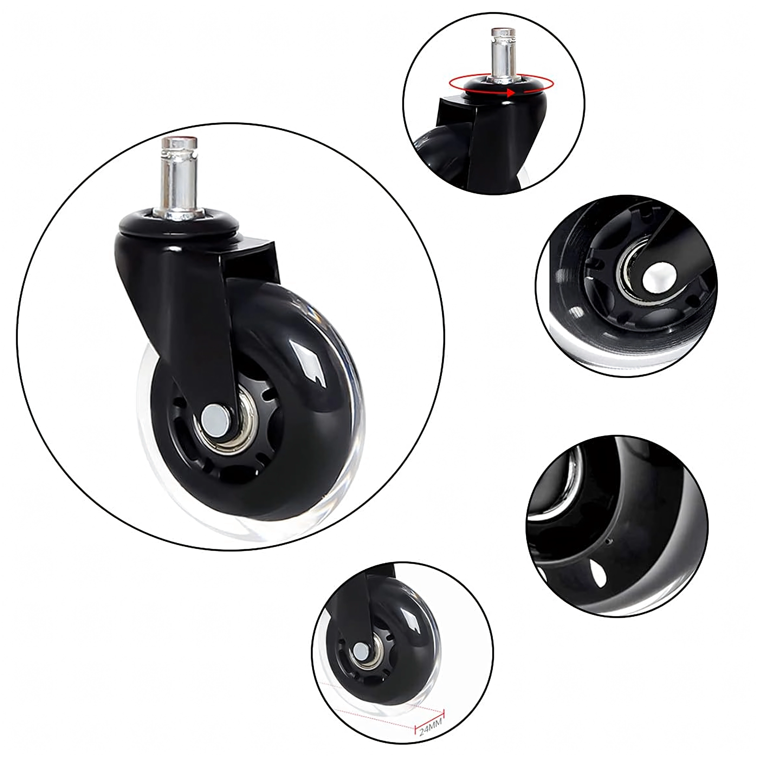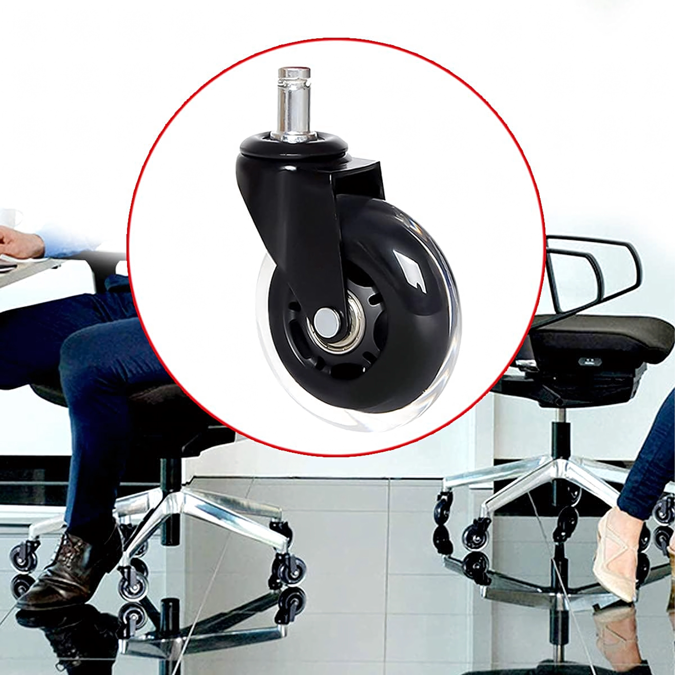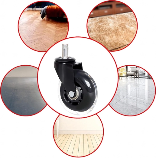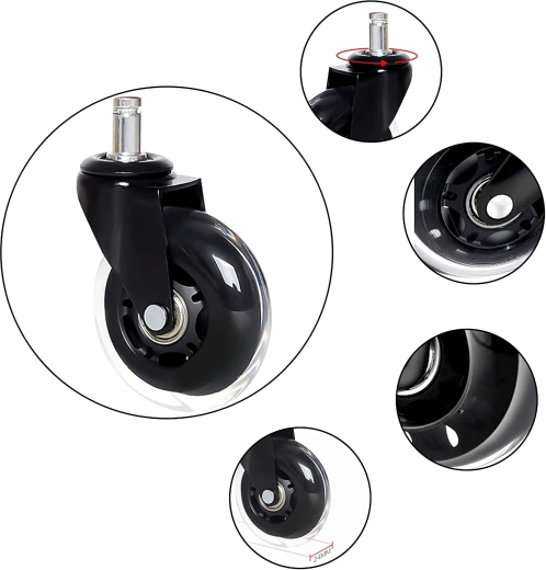 Cserélje le régi görgőit modern gumírozott kivitelre, amely ötvözi a csendes futást, a stabilitást és a padlóburkolatok kíméletét. A csapágyaknak köszönhetően a szék akadások nélkül, simán gördül, csökkentve a kopást a görgőn és a padlón egyaránt.