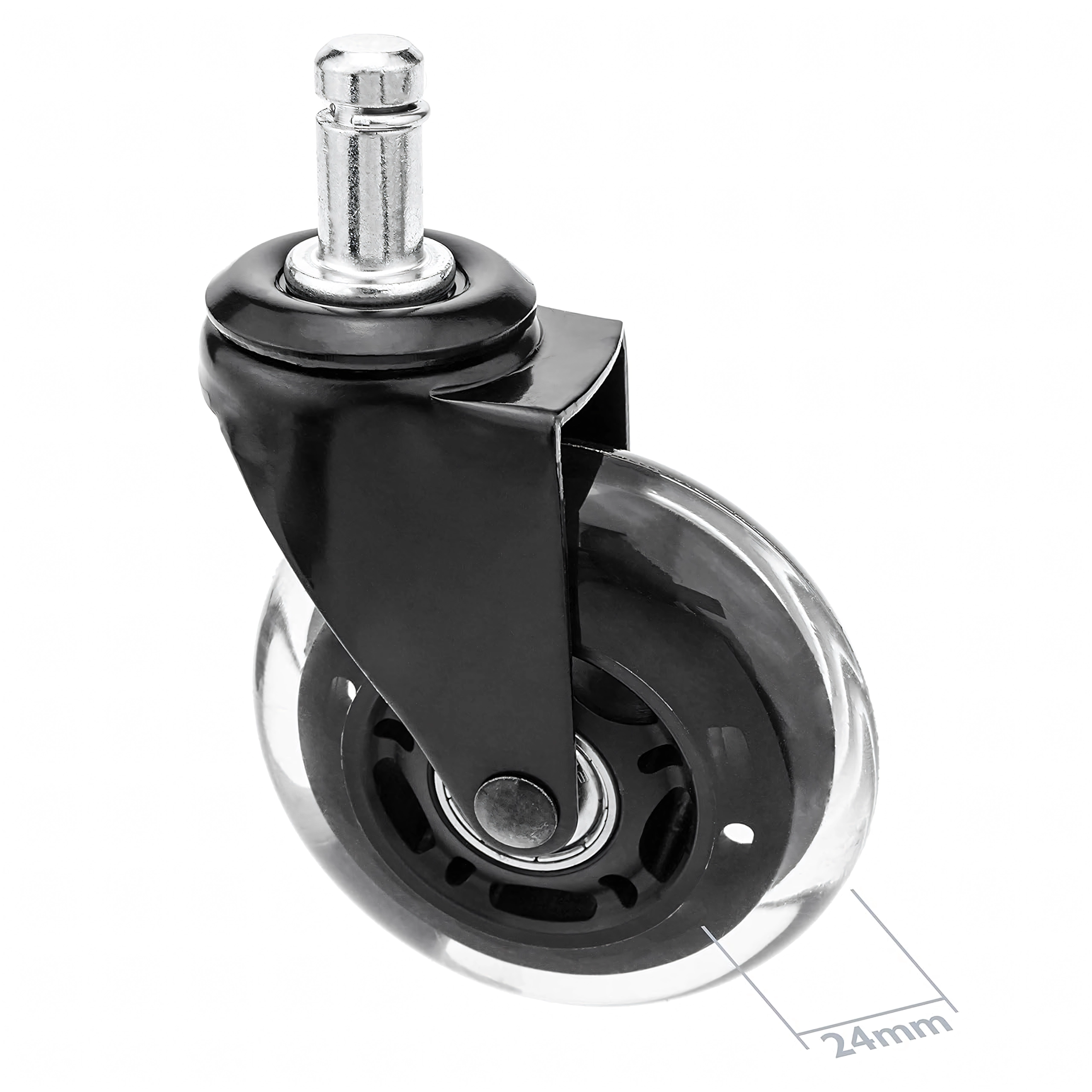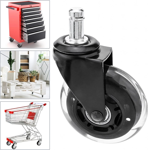 Univerzális gumírozott görgő precíz csapágyazással irodai és gamer székekhez, amely biztosítja a csendes és egyenletes mozgást, a hosszú élettartamot és a padló védelmét a karcolásokkal szemben. Kompatibilis a legtöbb, 12 mm-es tüskével ellátott székkel. Elérhető 100 db-os csomagban is.