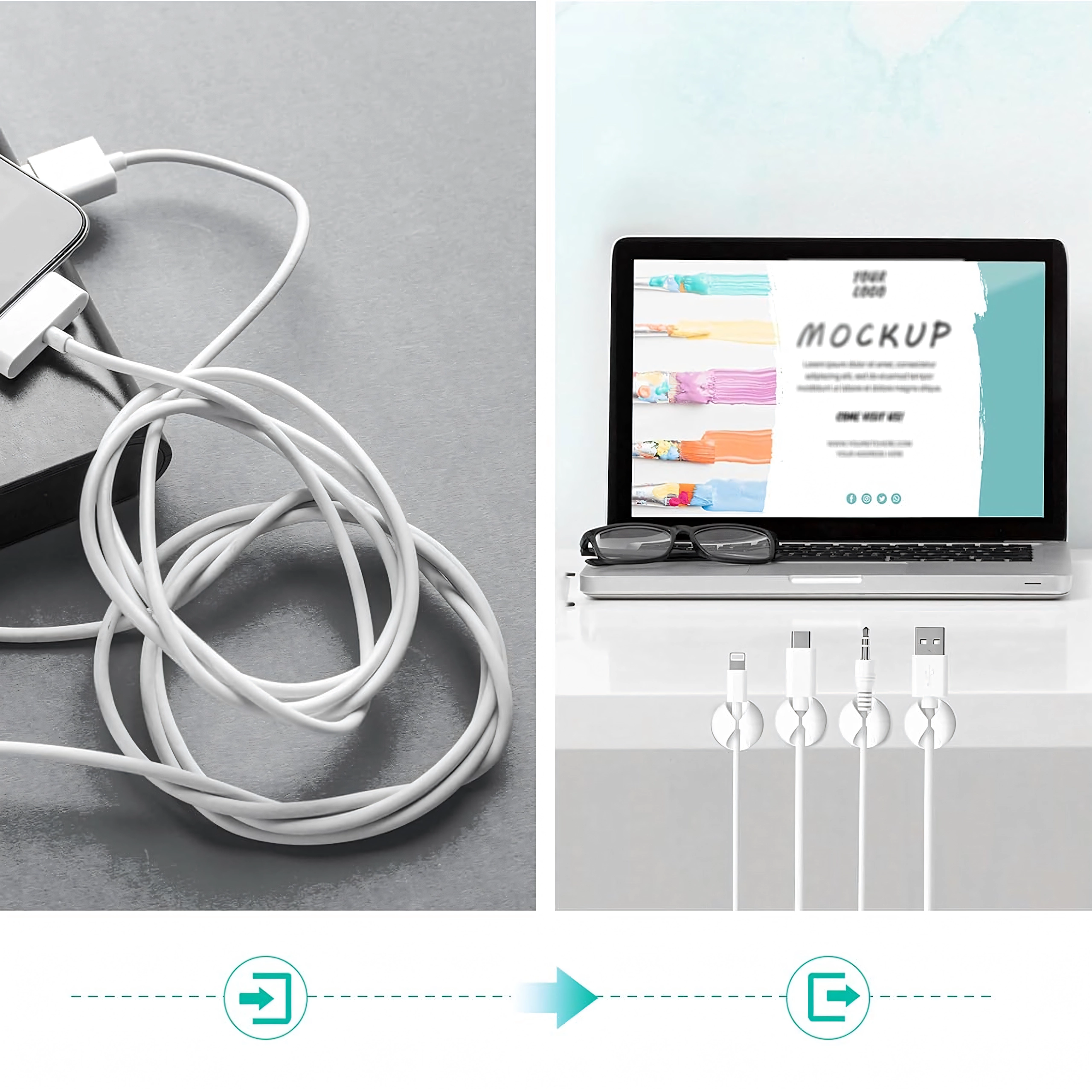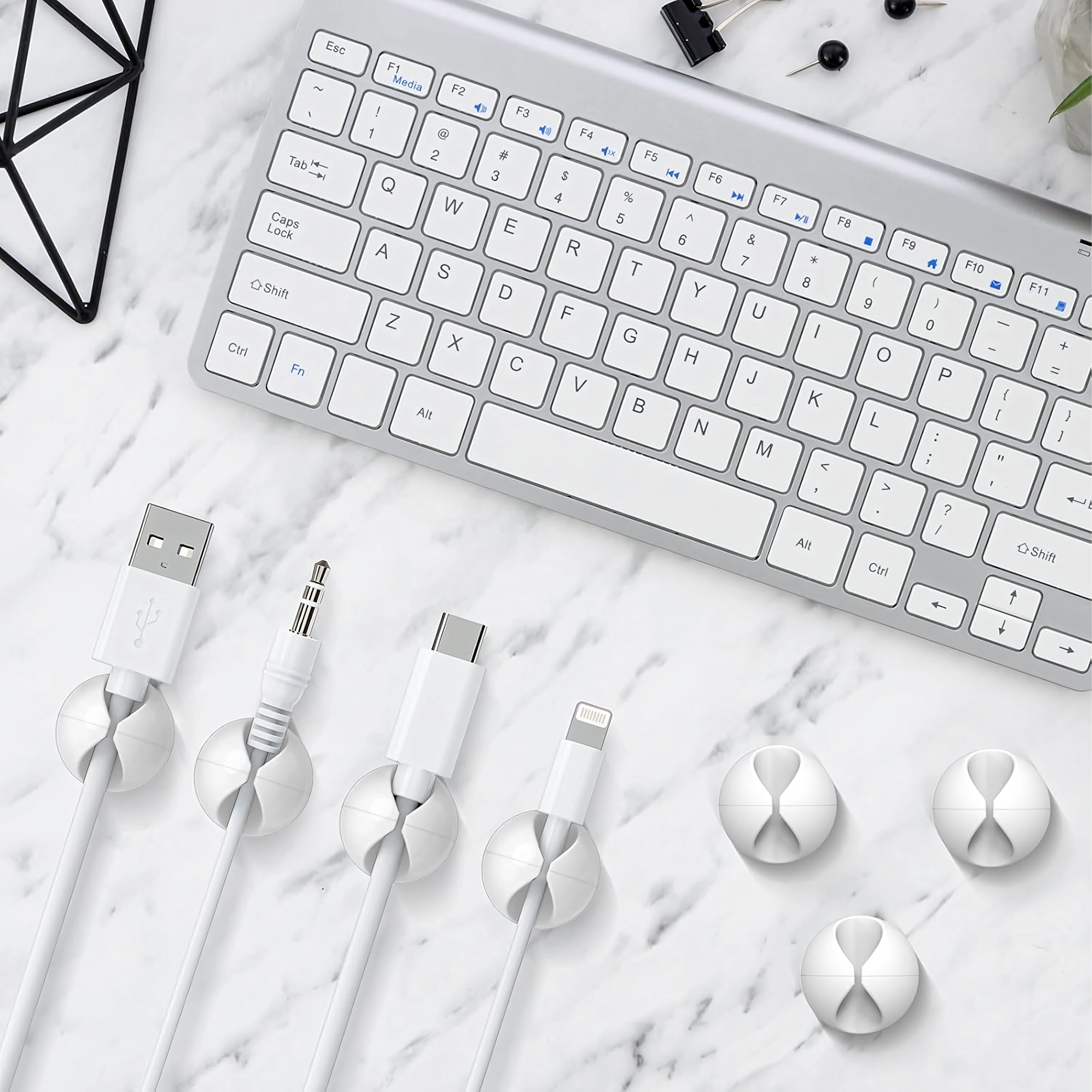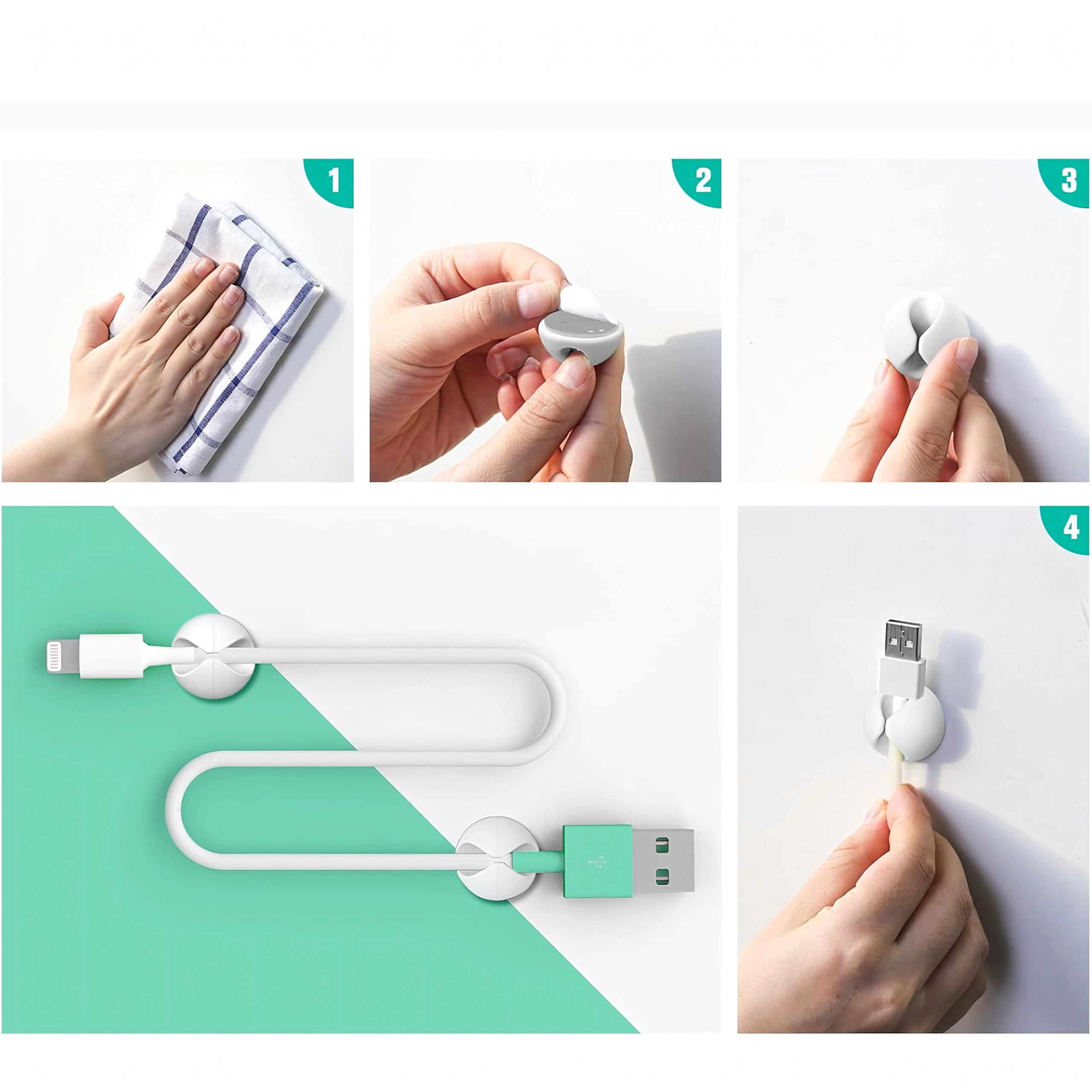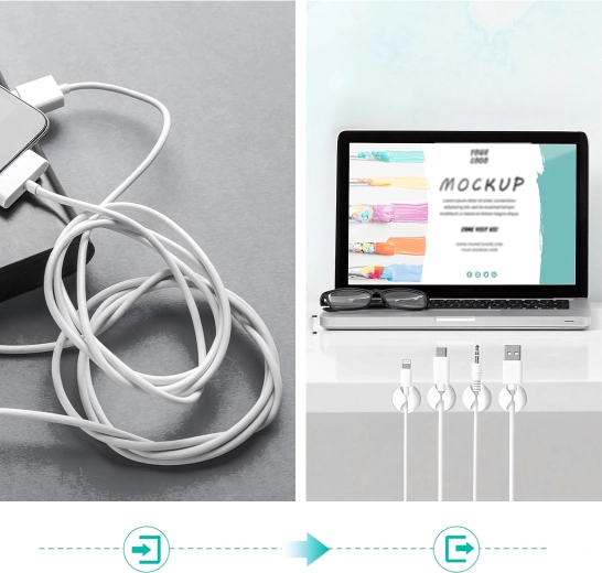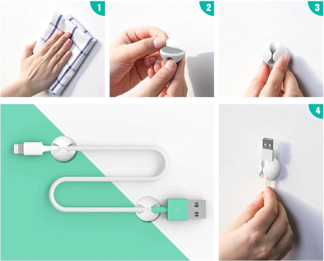 Használhatók töltő- és adatkábelekhez, fülhallgatókhoz, valamint apró tárgyakhoz, például ceruzákhoz vagy dekorációkhoz. Az egyszerű, szerszámmentes telepítés időt takarít meg, és tiszta, áttekinthető környezetet biztosít.