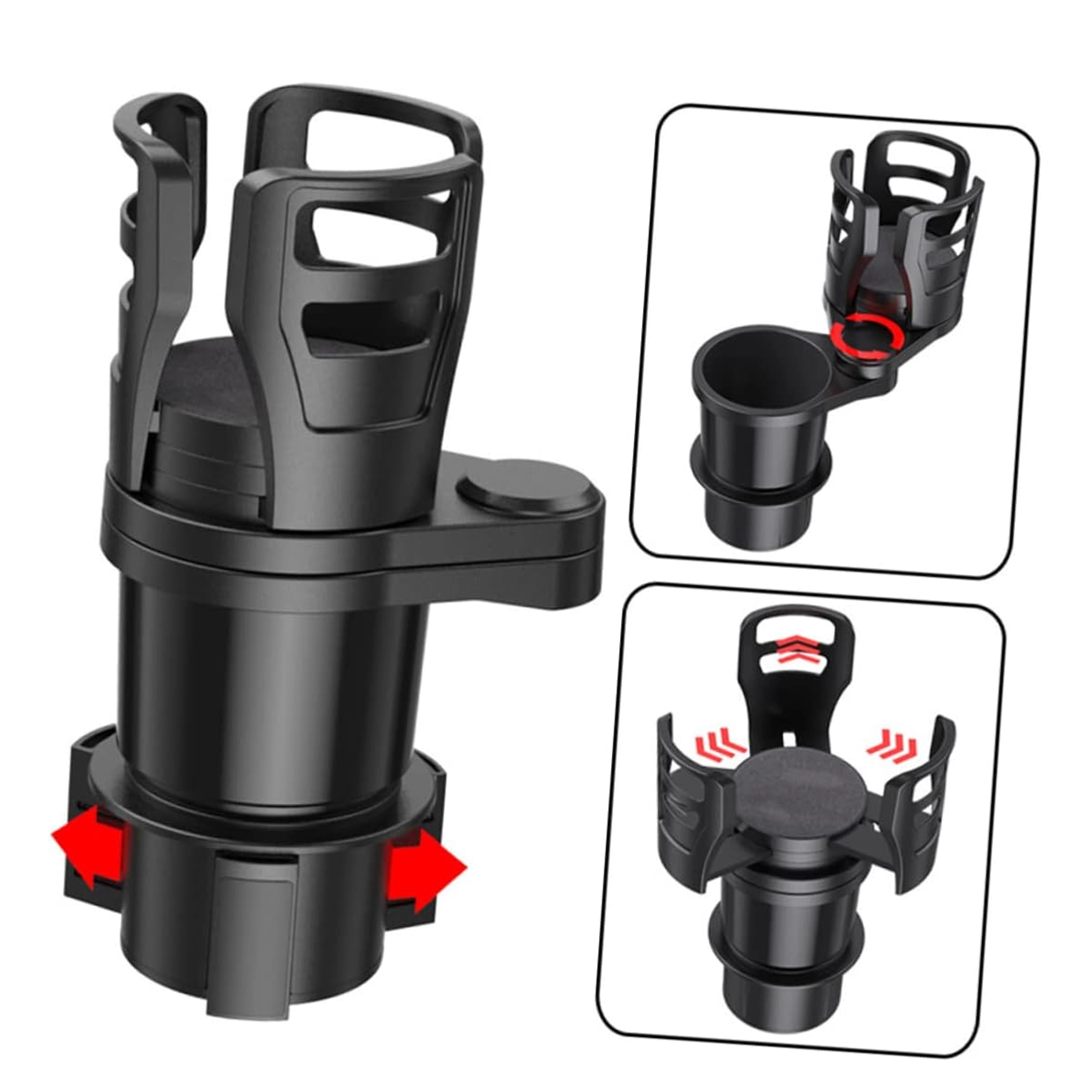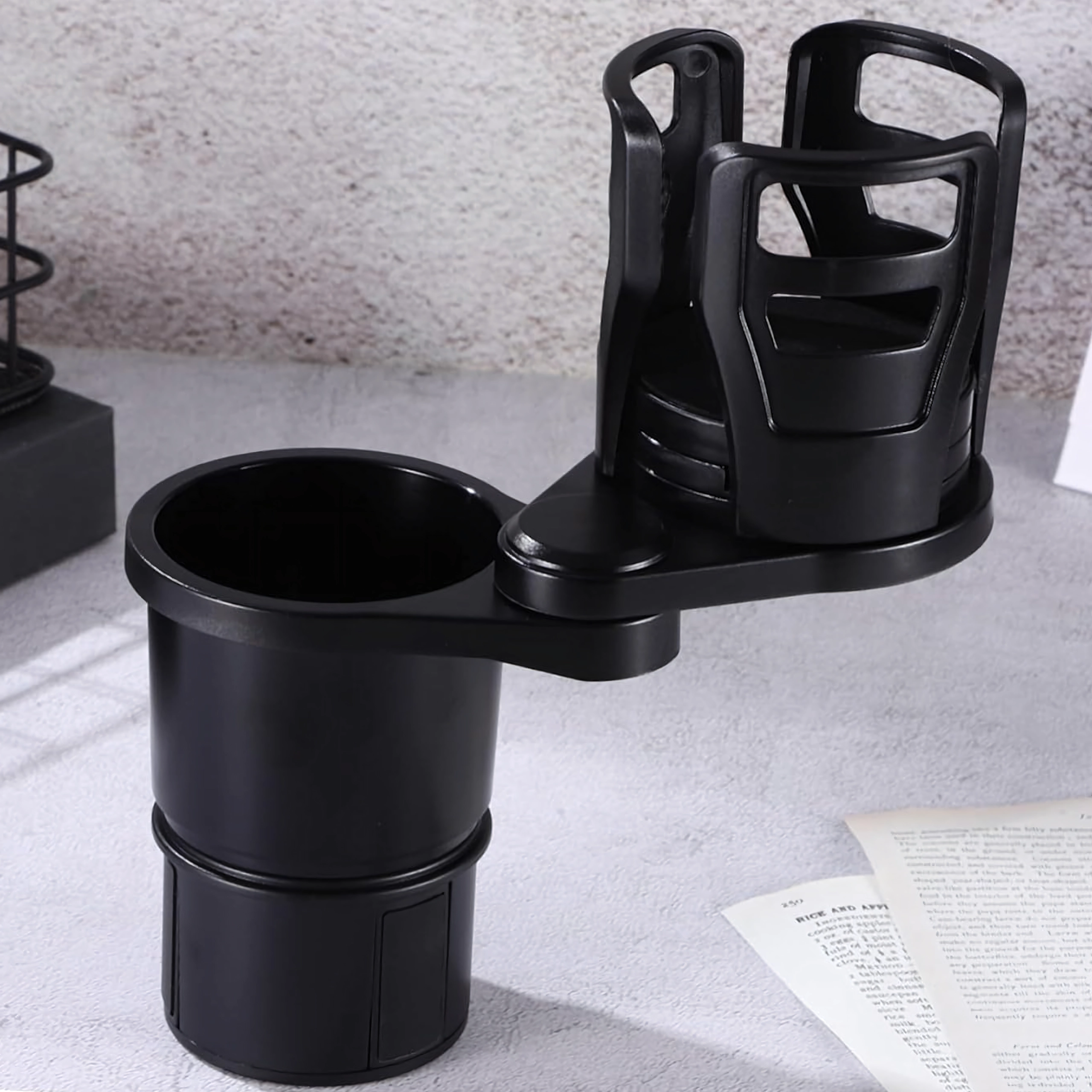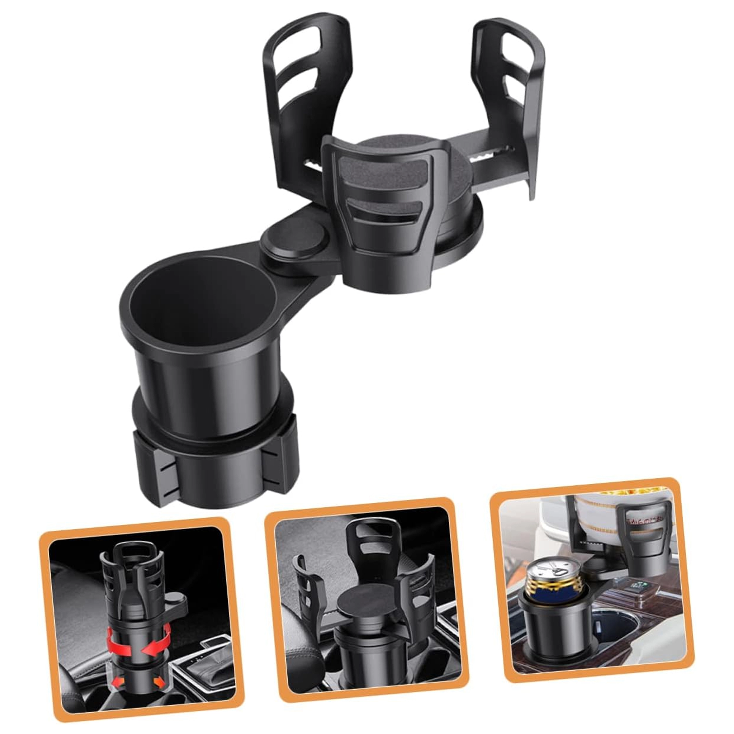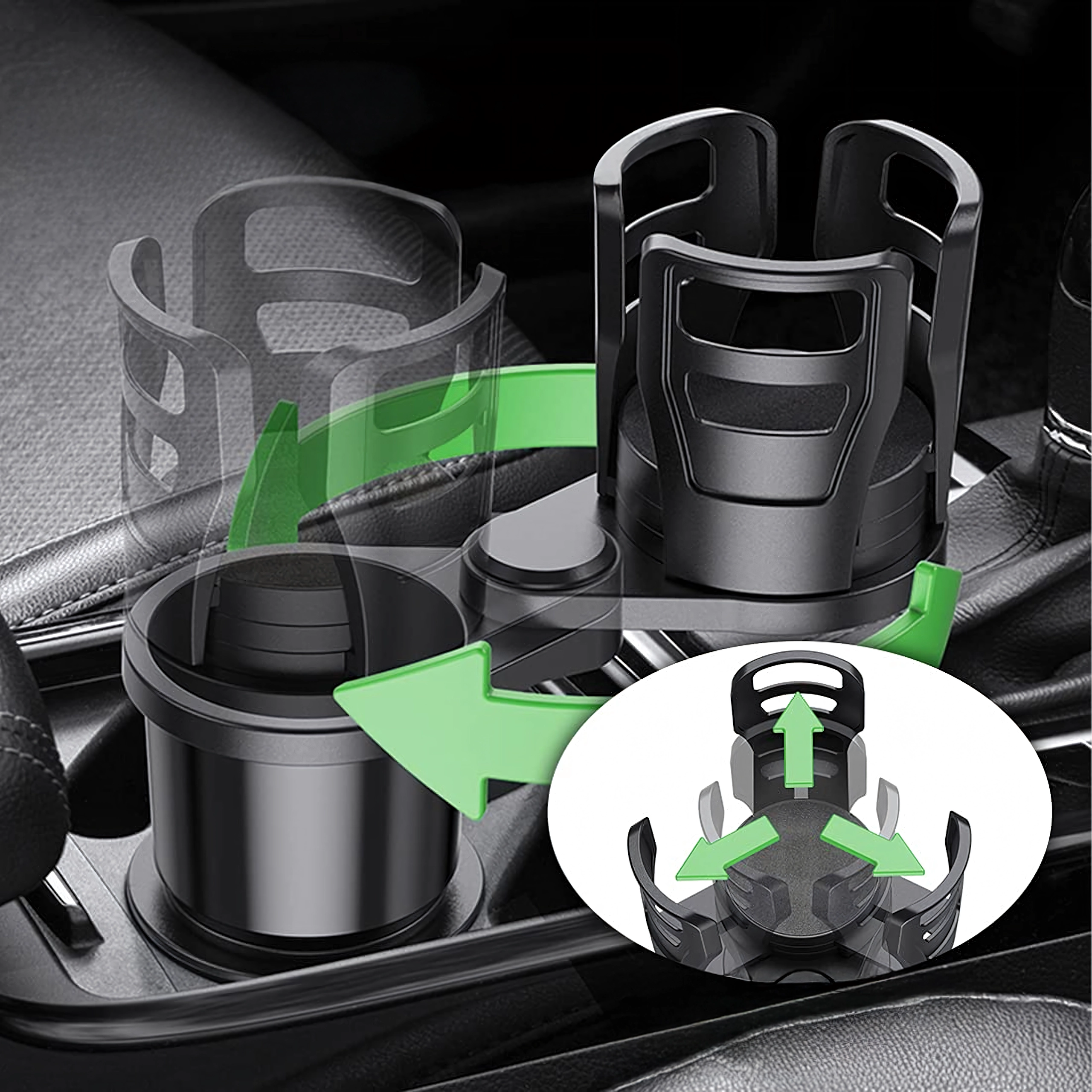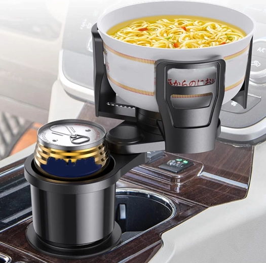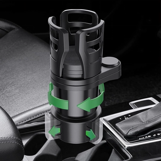Praktikus autós rendszerező, amely ötvözi a 2 az 1-ben italtartót a 360°-ban forgatható fejjel és az állítható átmérővel. A masszív ABS szerkezetnek köszönhetően biztonságosan stabilizálja a poharakat és palackokat, és megakadályozza a kifröccsenést vezetés közben. Ideális utazáshoz és mindennapi ingázáshoz.