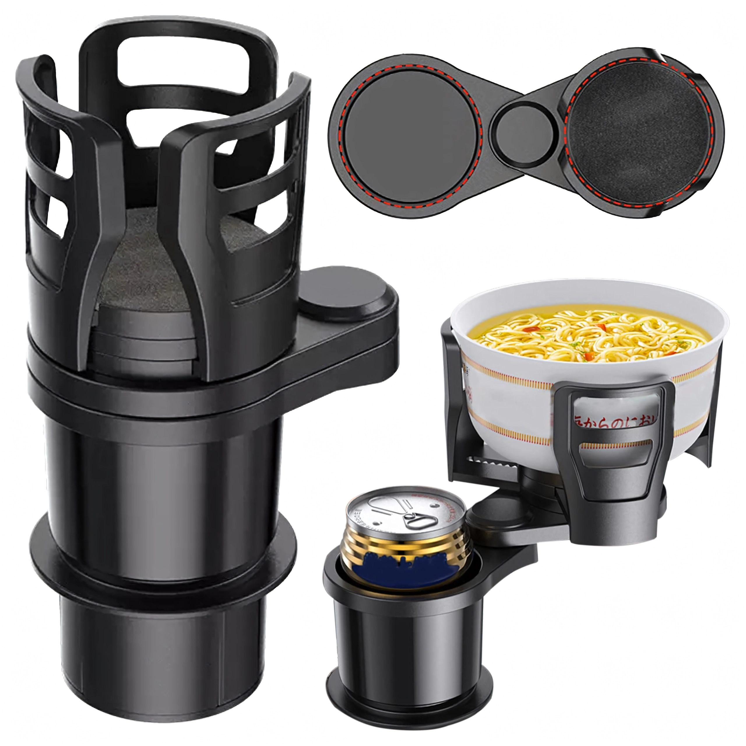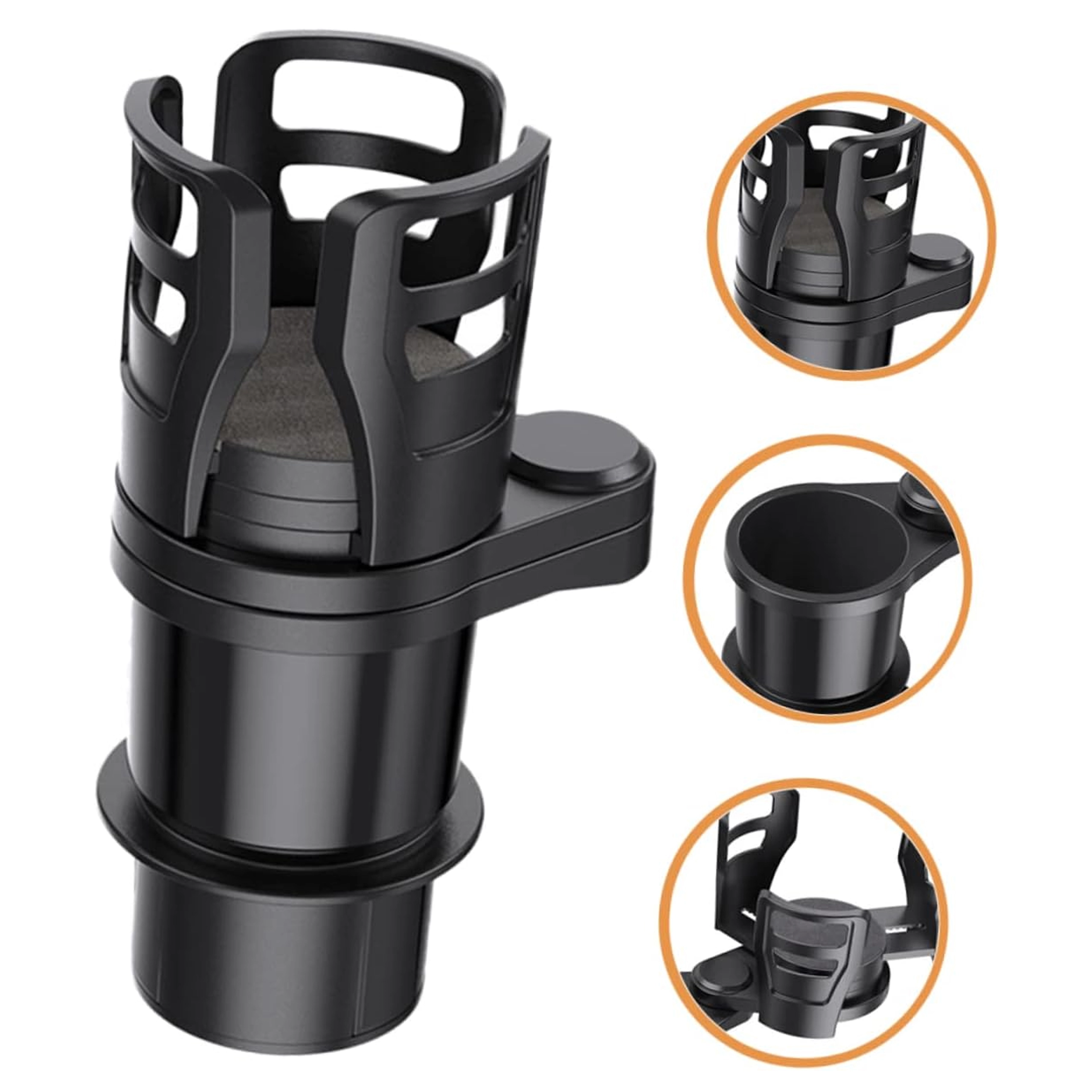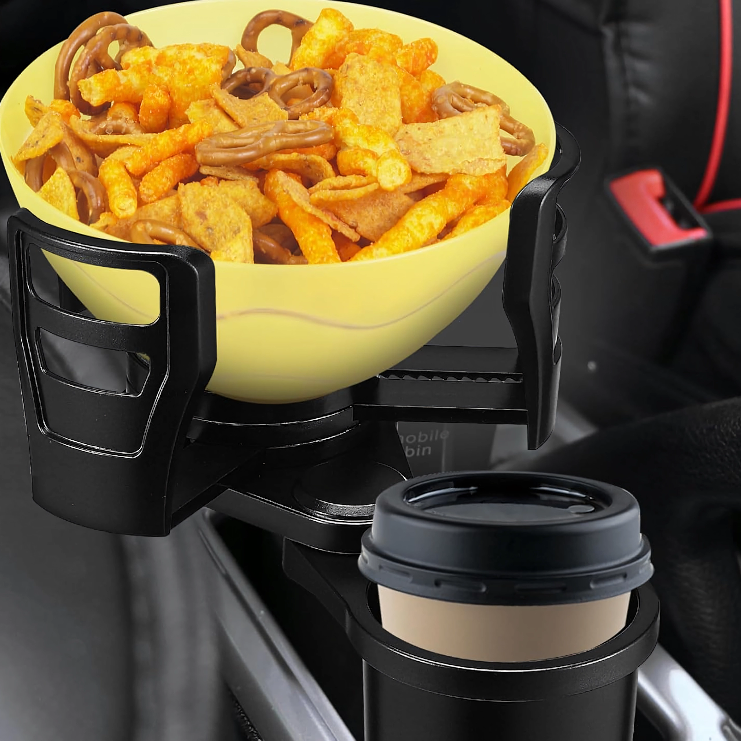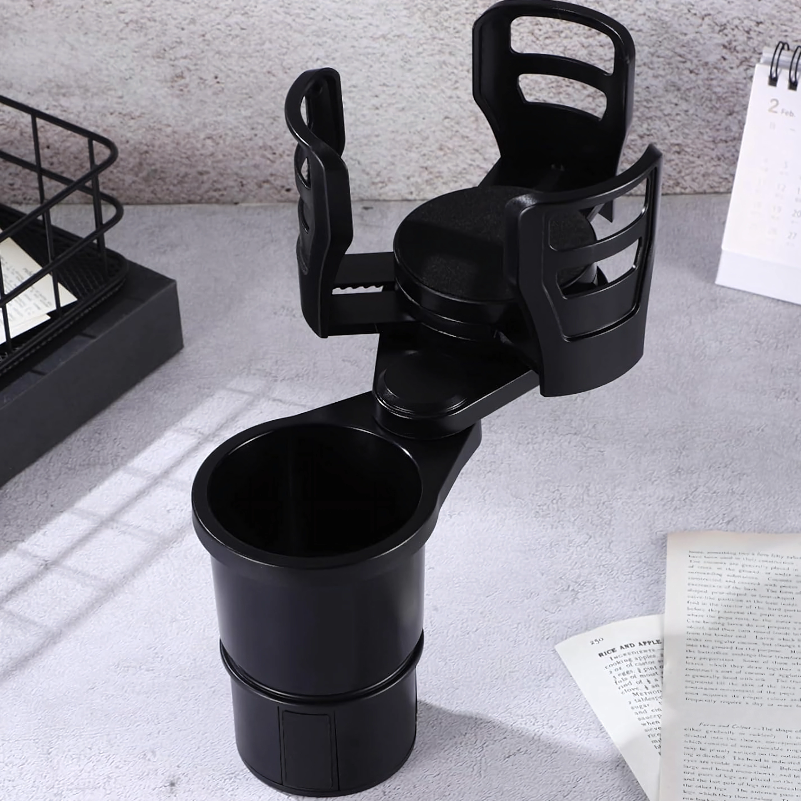 Praktikus autós rendszerező, amely ötvözi a 2 az 1-ben italtartót a 360°-ban forgatható fejjel és az állítható átmérővel. A masszív ABS szerkezetnek köszönhetően biztonságosan stabilizálja a poharakat és palackokat, és megakadályozza a kifröccsenést vezetés közben. Ideális utazáshoz és mindennapi ingázáshoz.