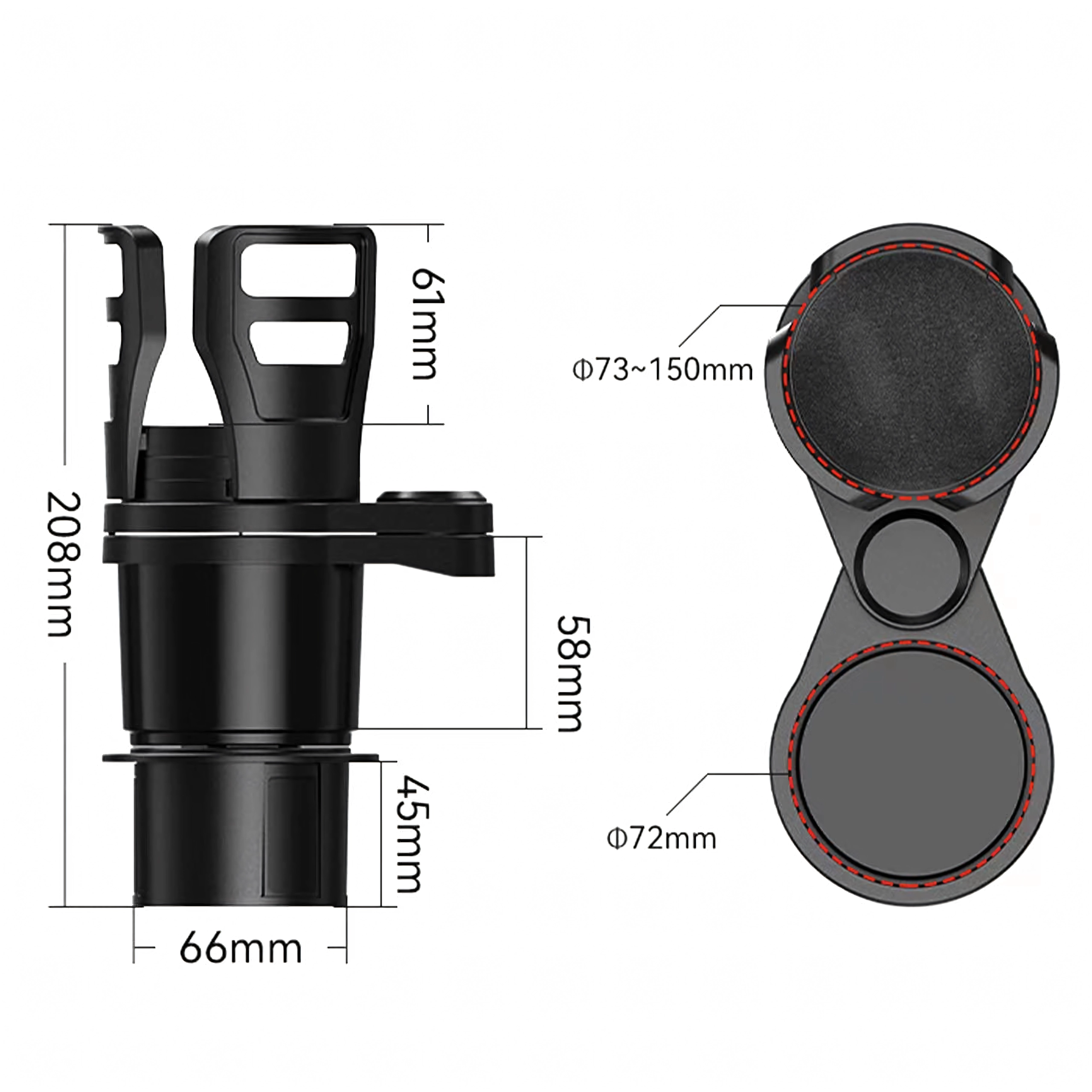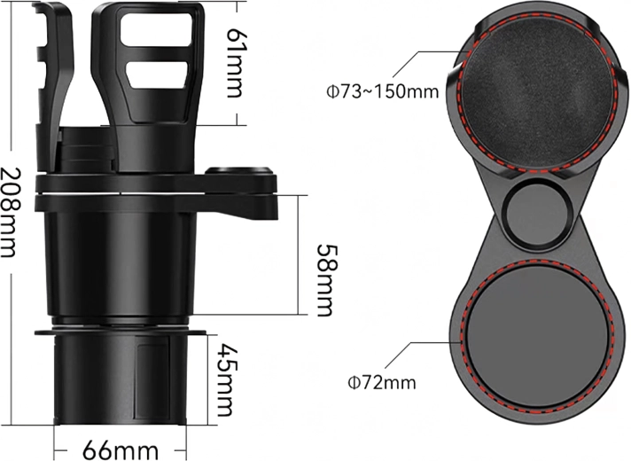 - Könnyű szerelés szabványos autós pohártartó nyílásba