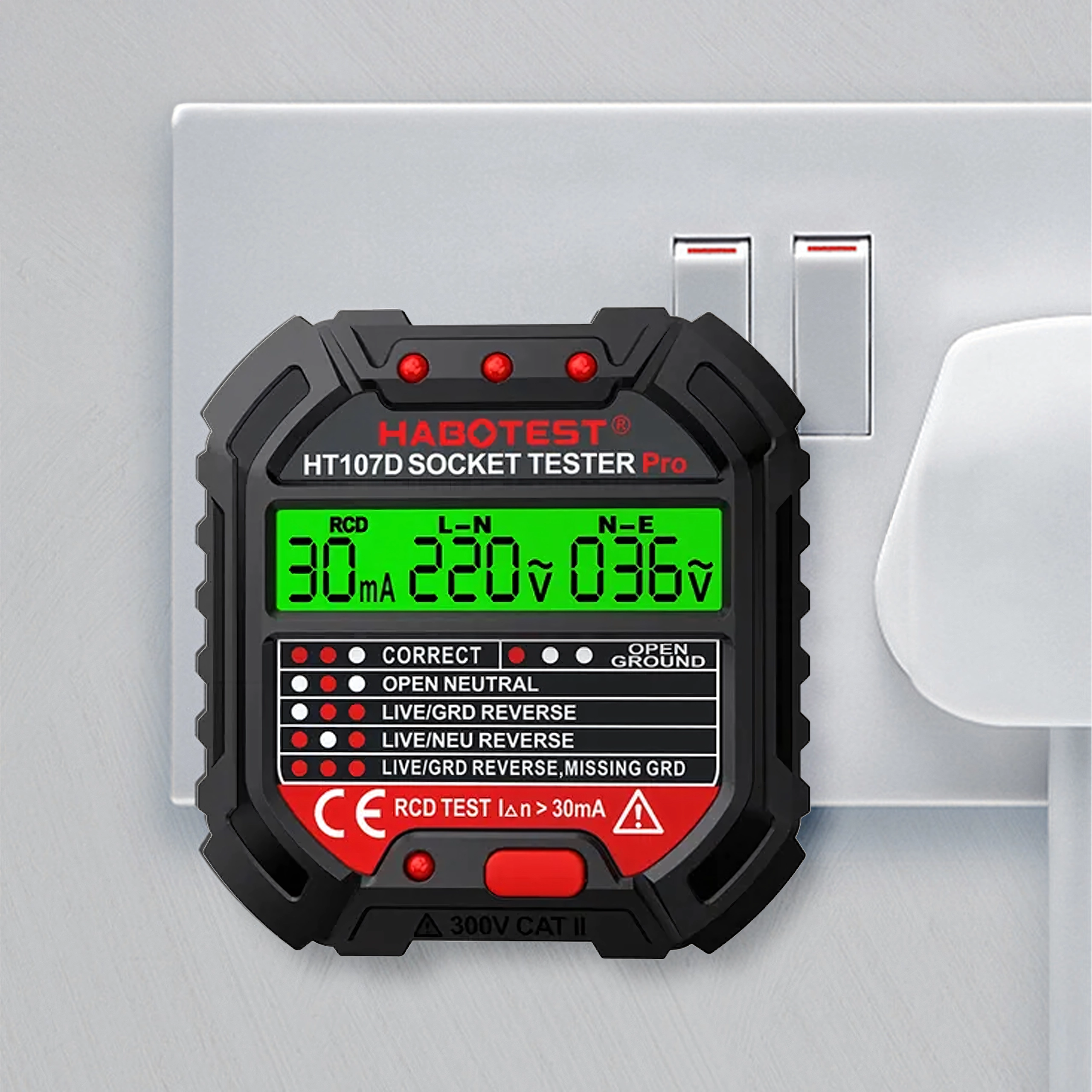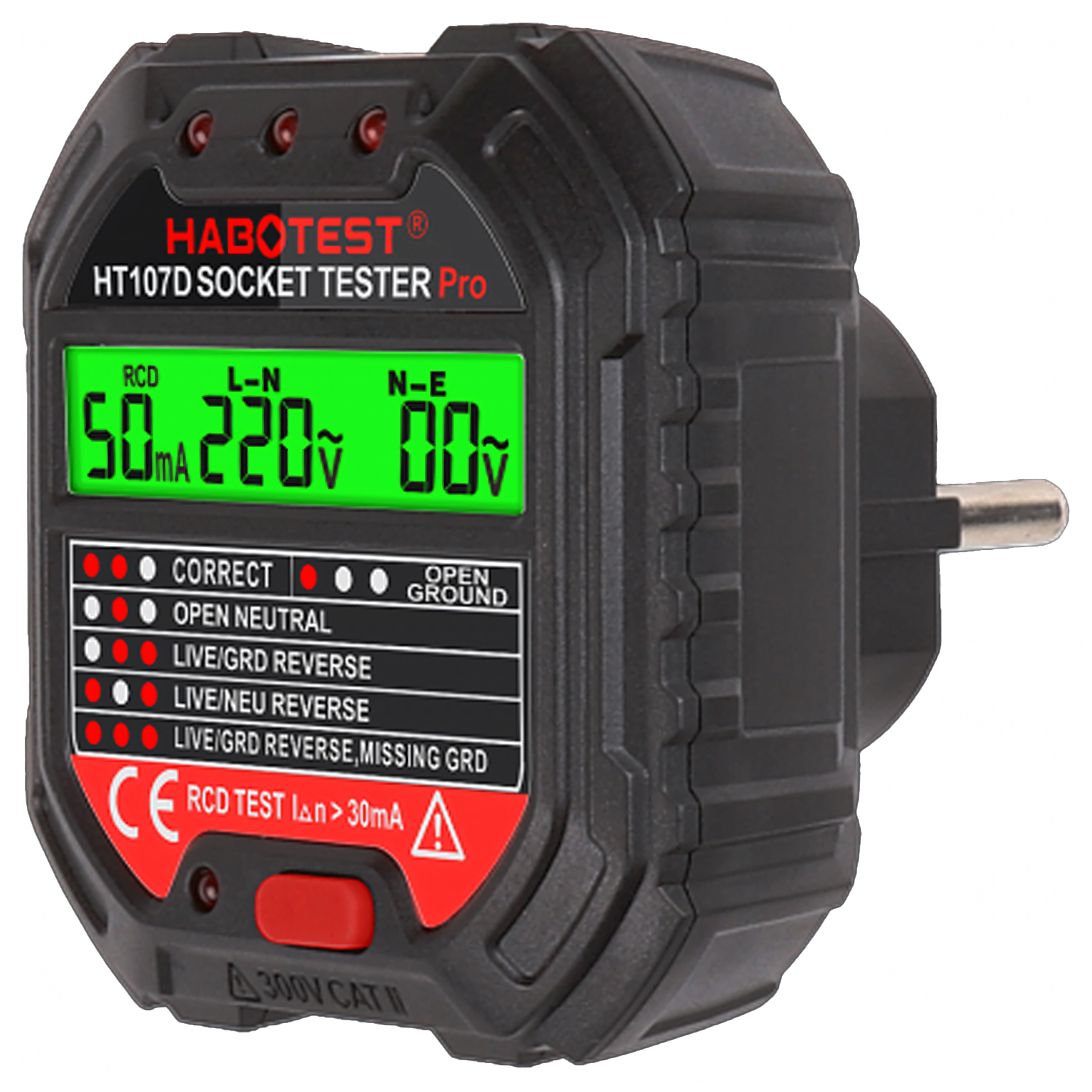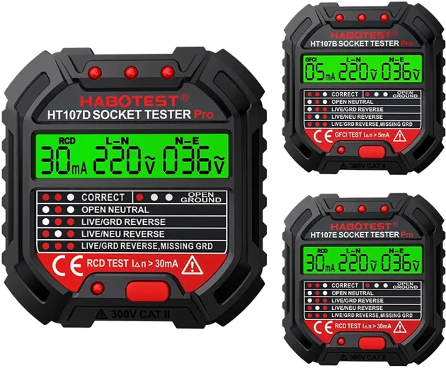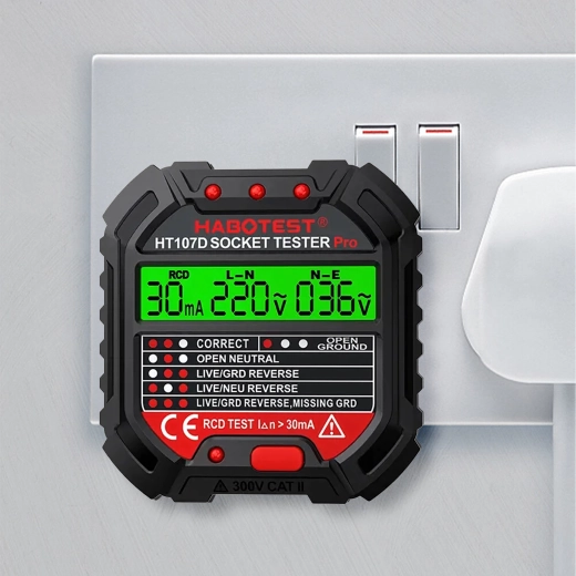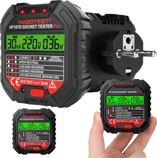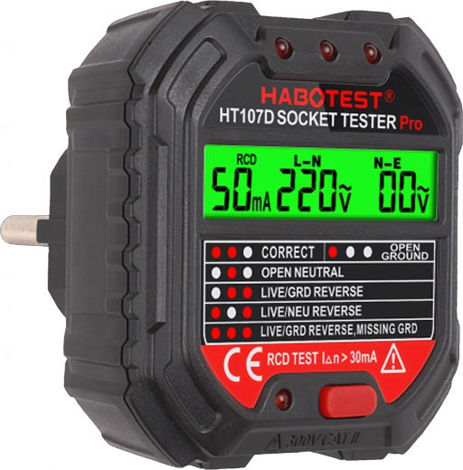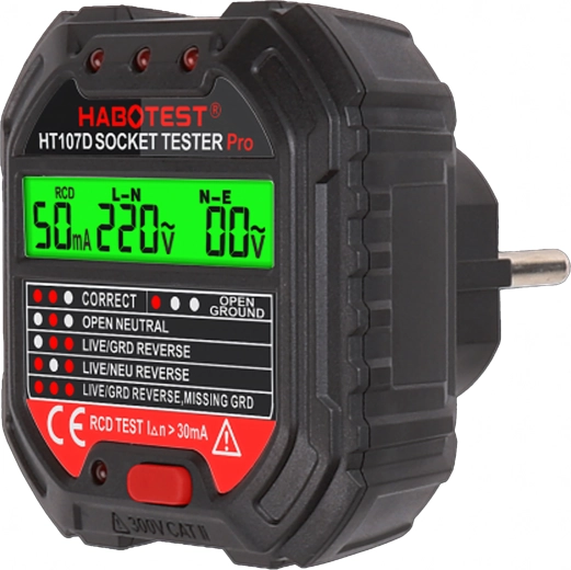 HABOTEST HT107D LCD-s aljzatfeszültség-tesztelő RCD teszttel