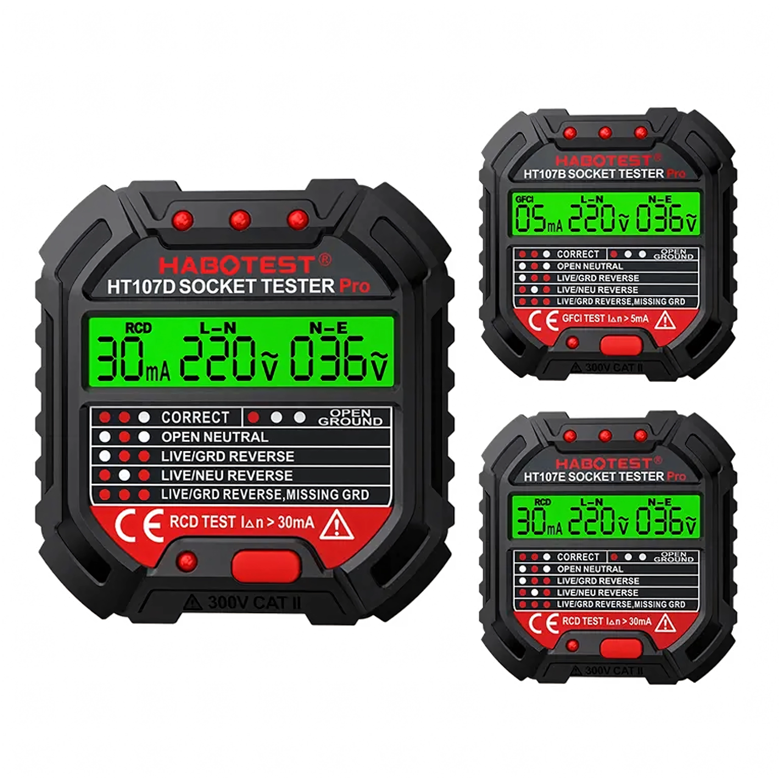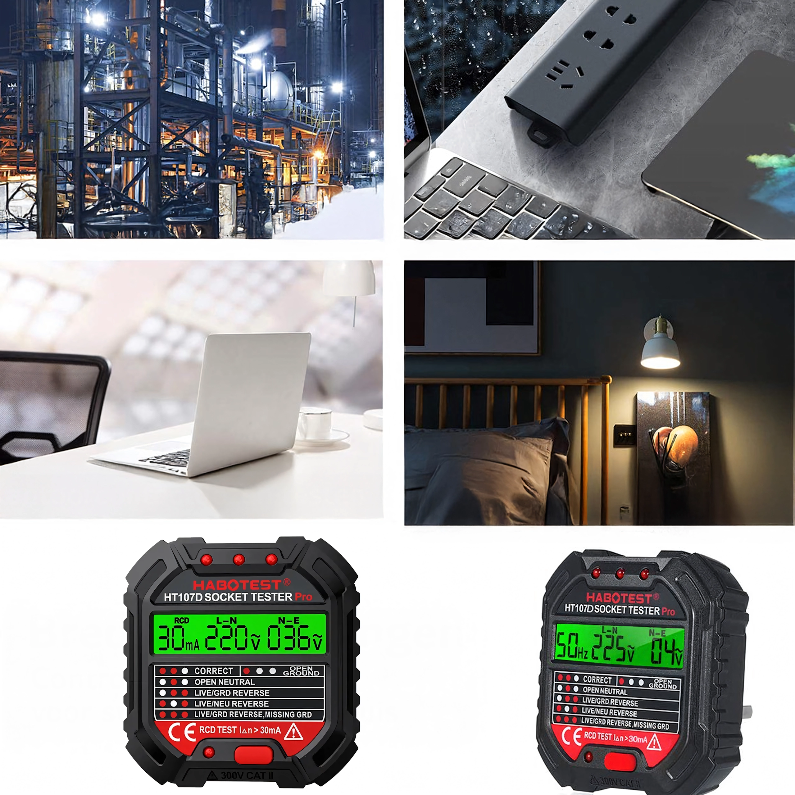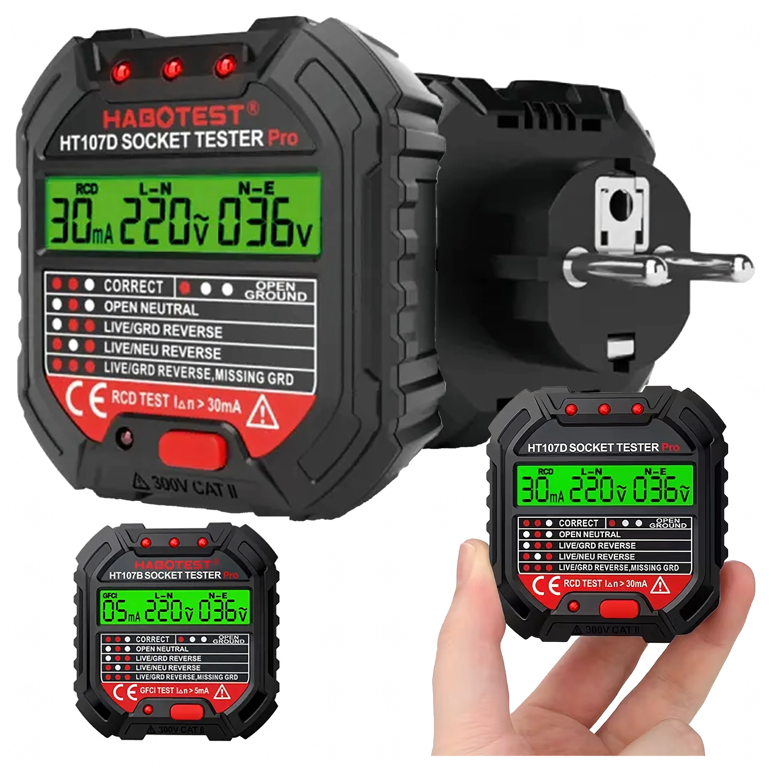 HABOTEST HT107D LCD-s aljzatfeszültség-tesztelő RCD teszttel