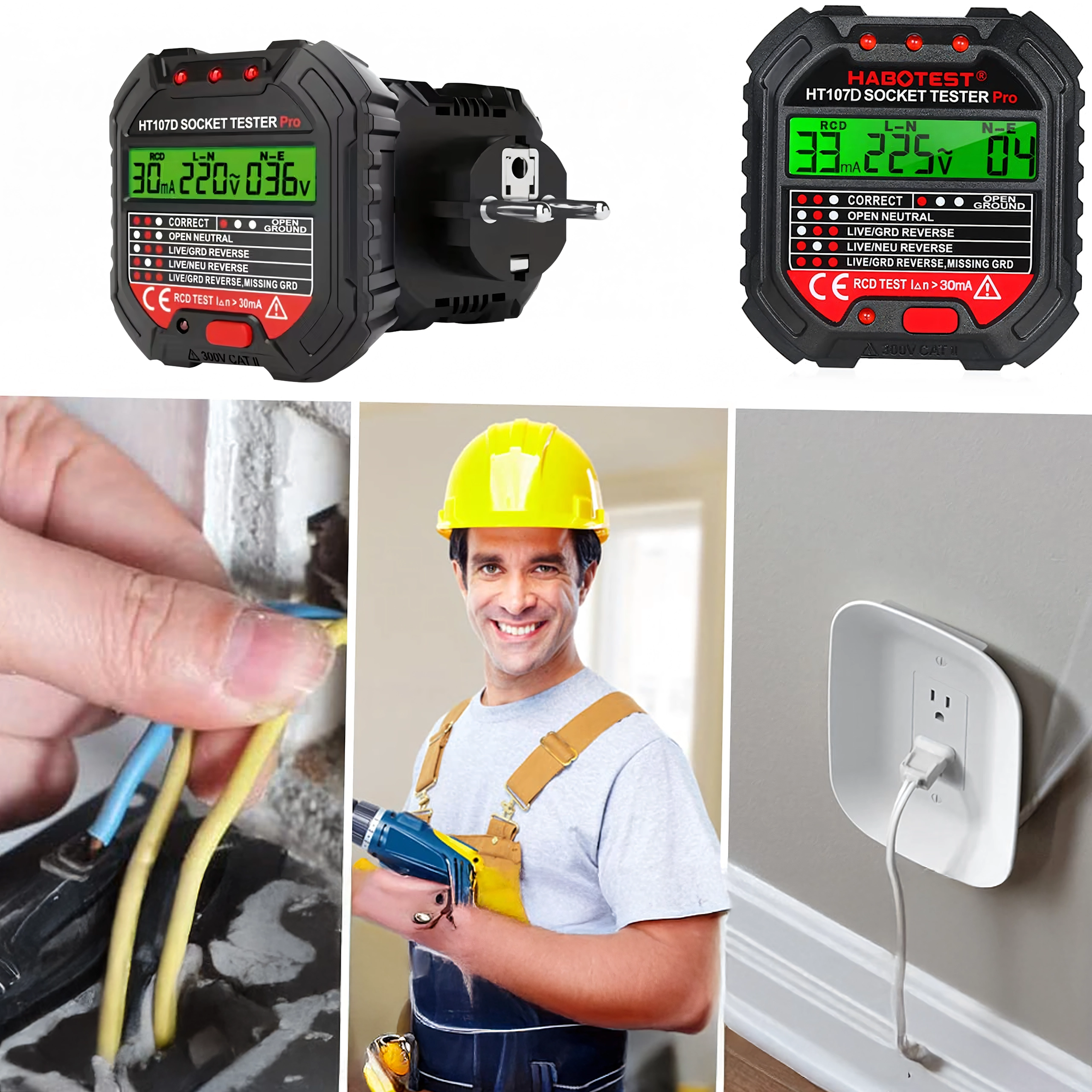 A tesztelő ideális villanyszerelőknek, karbantartásra és otthoni használatra is. Használata gyors és intuitív – csak csatlakoztassa az aljzatba, és kövesse a kijelző jelzéseit. Időt takarít meg a hibák felderítésekor, mint például a rossz földelés, a fázis- és nullavezető felcserélése vagy a védővezető hiánya.