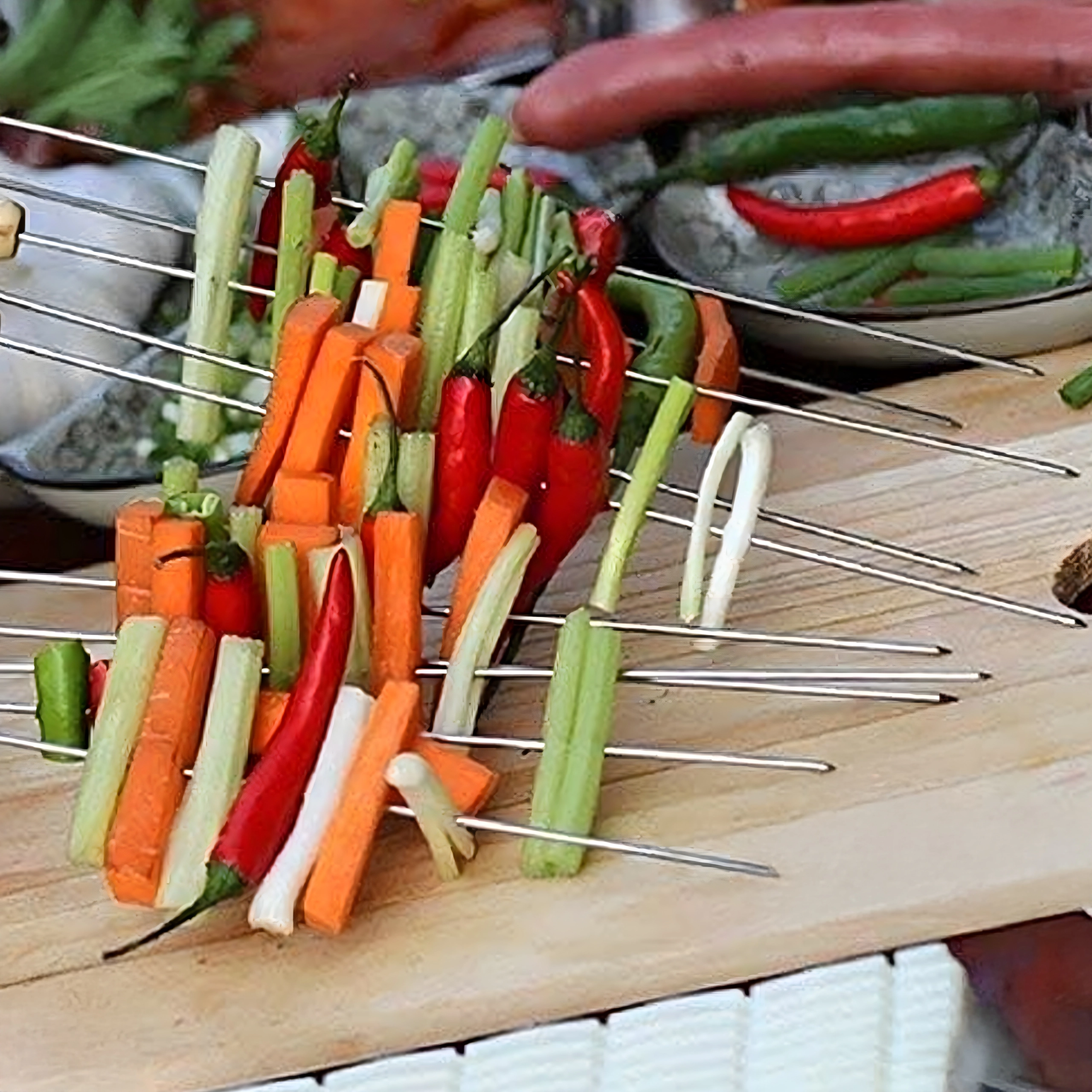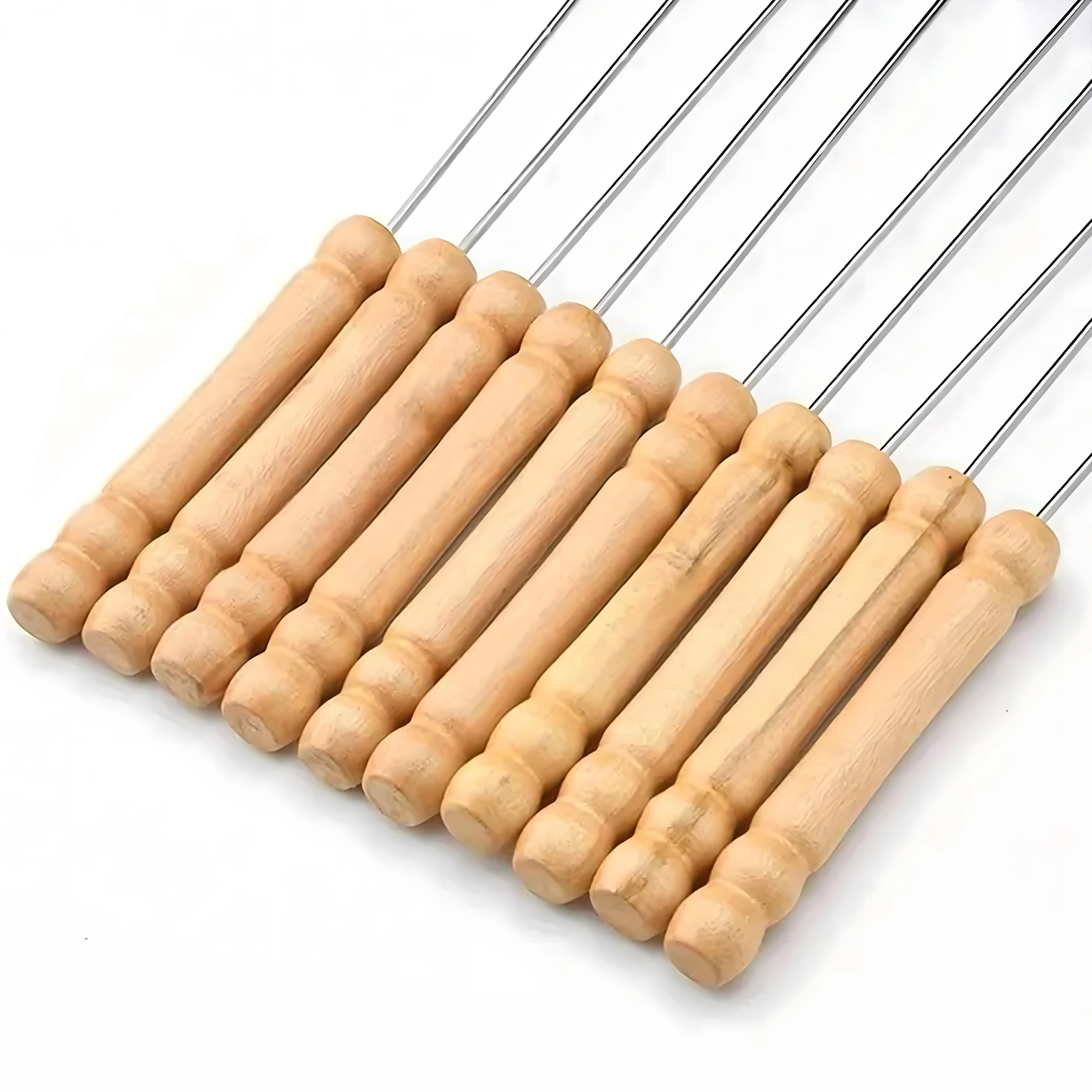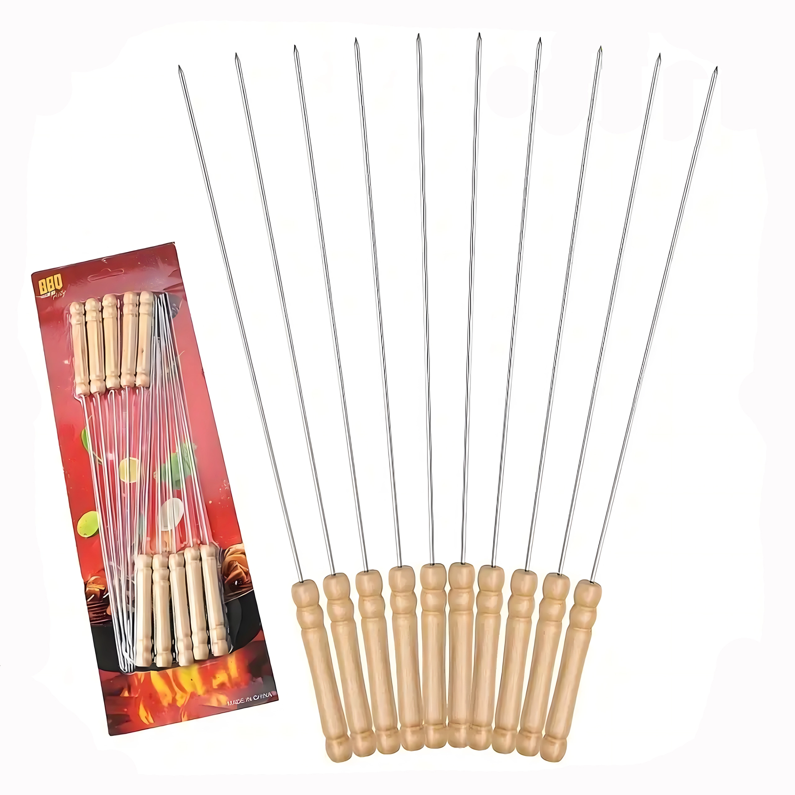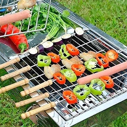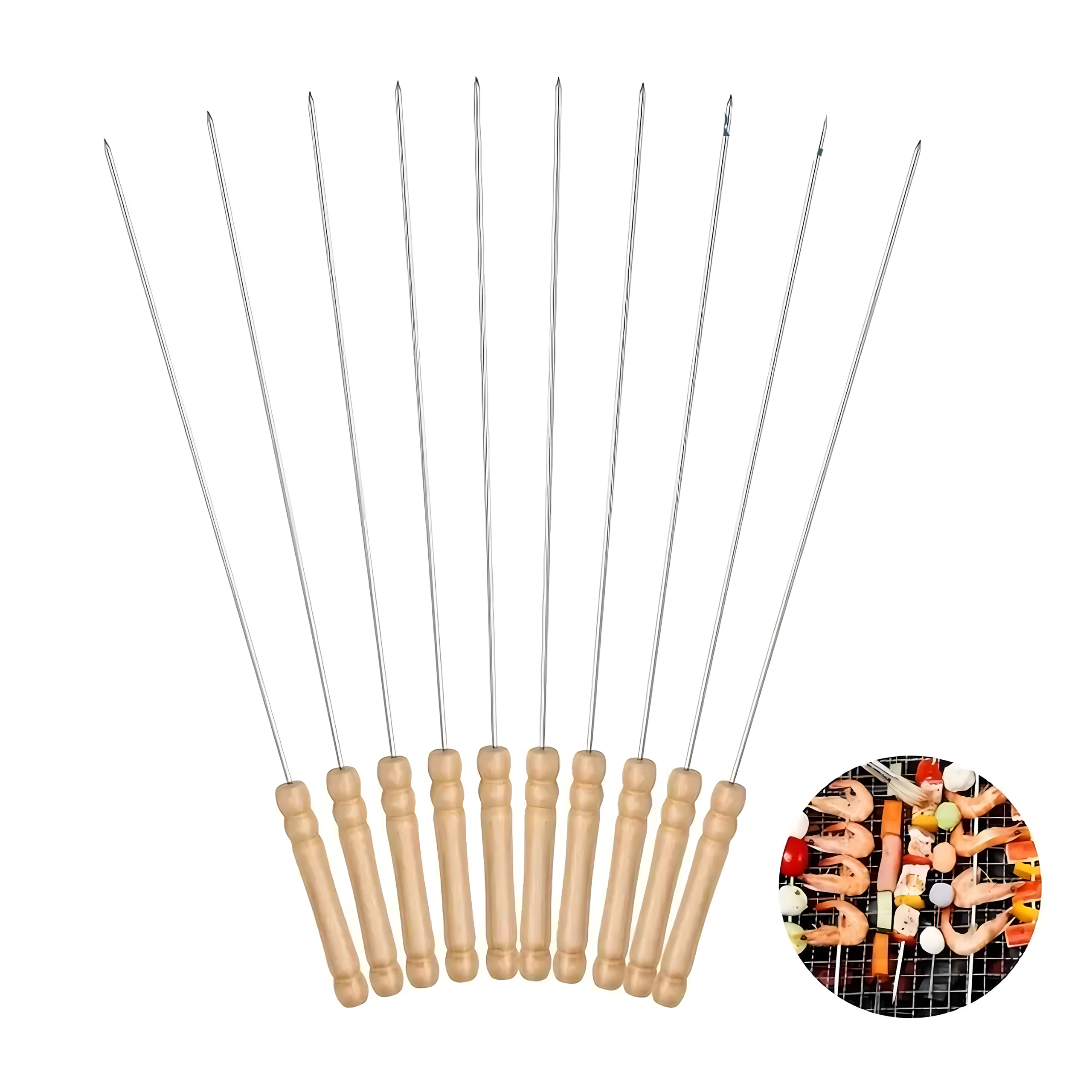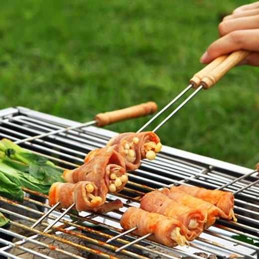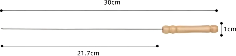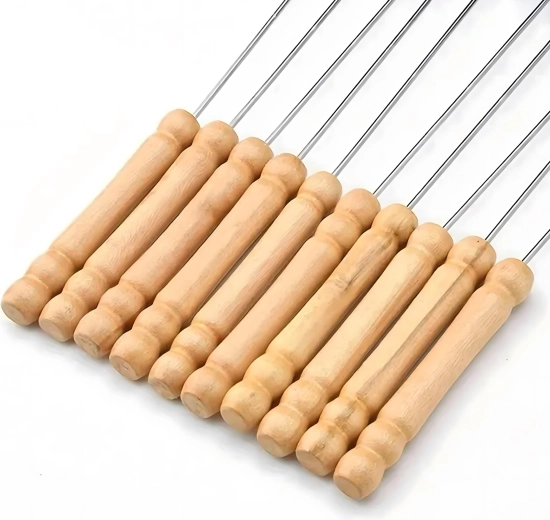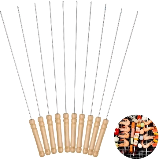 A készlet 10 db 30 cm hosszú nyársat tartalmaz, ami a legtöbb grillhez ideális méret. Használat után könnyen elmoshatók és újra felhasználhatók – időt és pénzt takarítanak meg, kiváló választás otthoni kerti partikhoz és kirándulásokhoz.