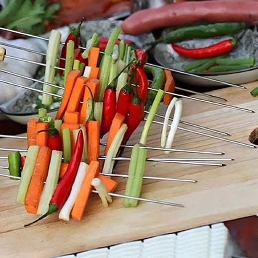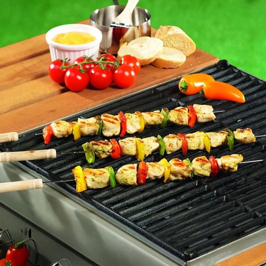 Élvezze a gondtalan grillezést a tartós rozsdamentes acélból készült fém nyársak készletével. A minőségi kivitelezésnek köszönhetően stabilak és erősek, az étel nem fordul el rajtuk. Semlegesek az élelmiszerekkel szemben és egészségre ártalmatlanok, ezért húsokhoz, zöldségekhez és tenger gyümölcseihez is alkalmasak.