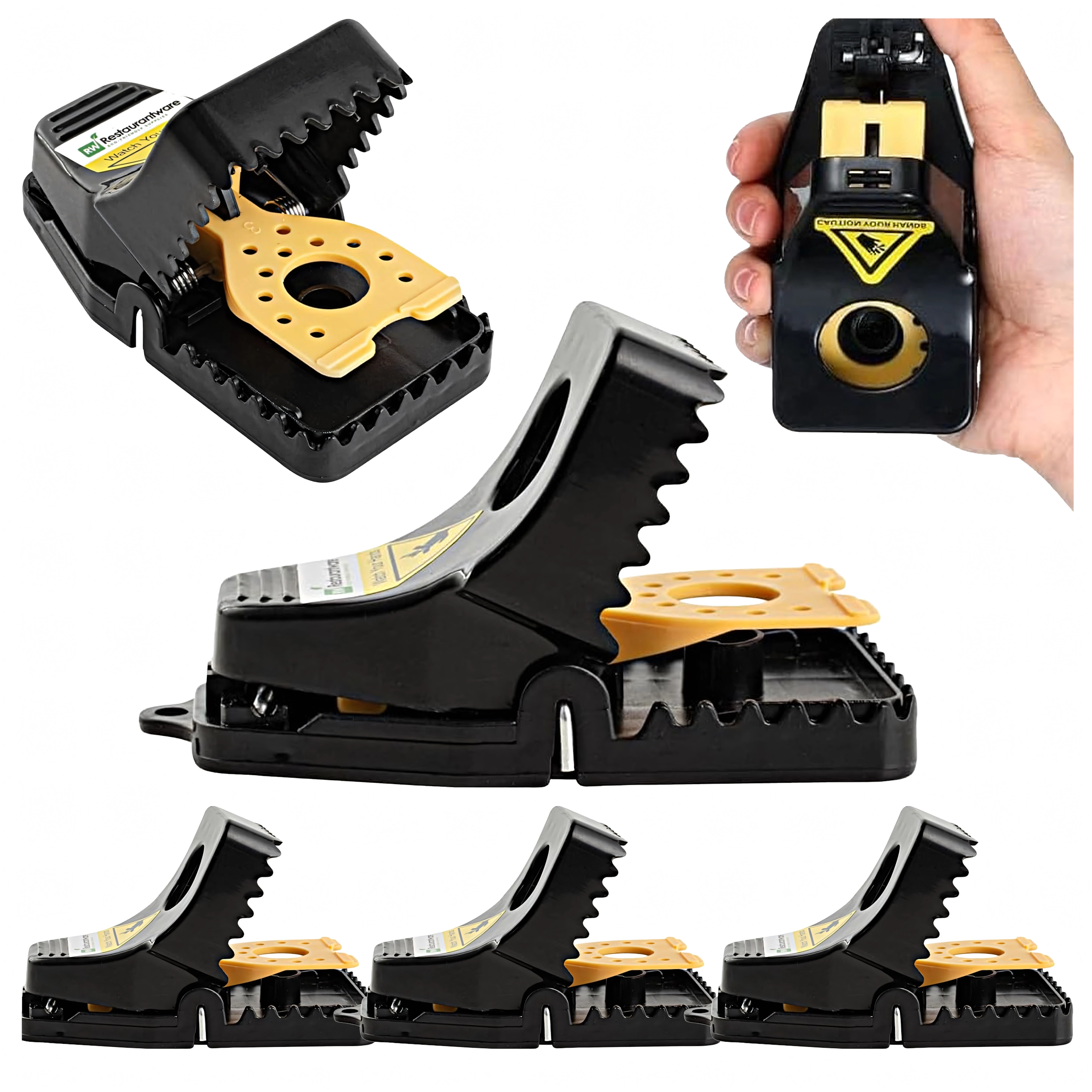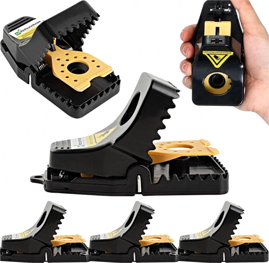 Praktikus 4 darabos műanyag egér- és patkánycsapda készlet a kártevők gyors és higiénikus eltávolításához otthon. A csapda erős rugóval, karos, könnyű beállítással és csalétek-tartállyal rendelkezik a biztonságos kezelésért. Kompakt méreteinek köszönhetően konyhában, kamrában, garázsban és pincében is elhelyezhető. Többször használható és időjárásálló.