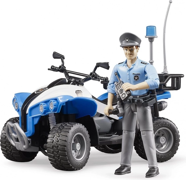 A quad egyedi részletei közé tartoznak a rendőrségi embléma, rendőrségi kiegészítők sorozata, mint például sapka, öv vagy pisztoly, és lehetőség más BRUDER figurák behelyezésére az ülésbe. Mindez magas minőségű anyagokból, Németországban készült.