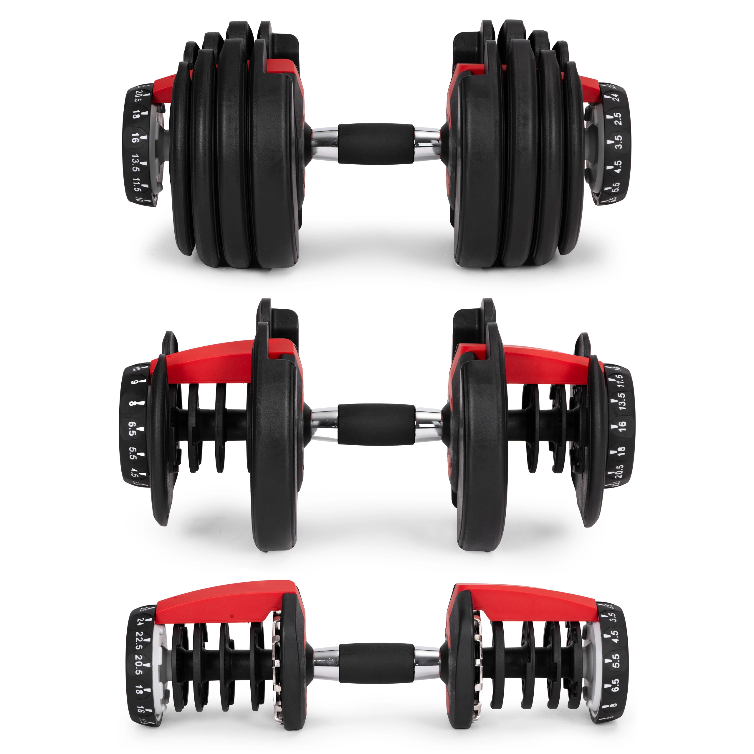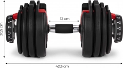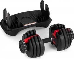 Takarítson meg helyet és időt egy olyan súlyzóval, amely egy teljes fix állványt kivált. Az integrált fokozatos súlyválasztó rendszerrel zökkenőmentesen válthat sorozatok és gyakorlatok között – a könnyű bemelegítéstől a megterhelő erősítő szériákig. Az öntöttvas tárcsák és a tartós műanyag elemek hosszú élettartamot biztosítanak, míg a talp lehetővé teszi a terhelés biztonságos és intuitív beállítását.