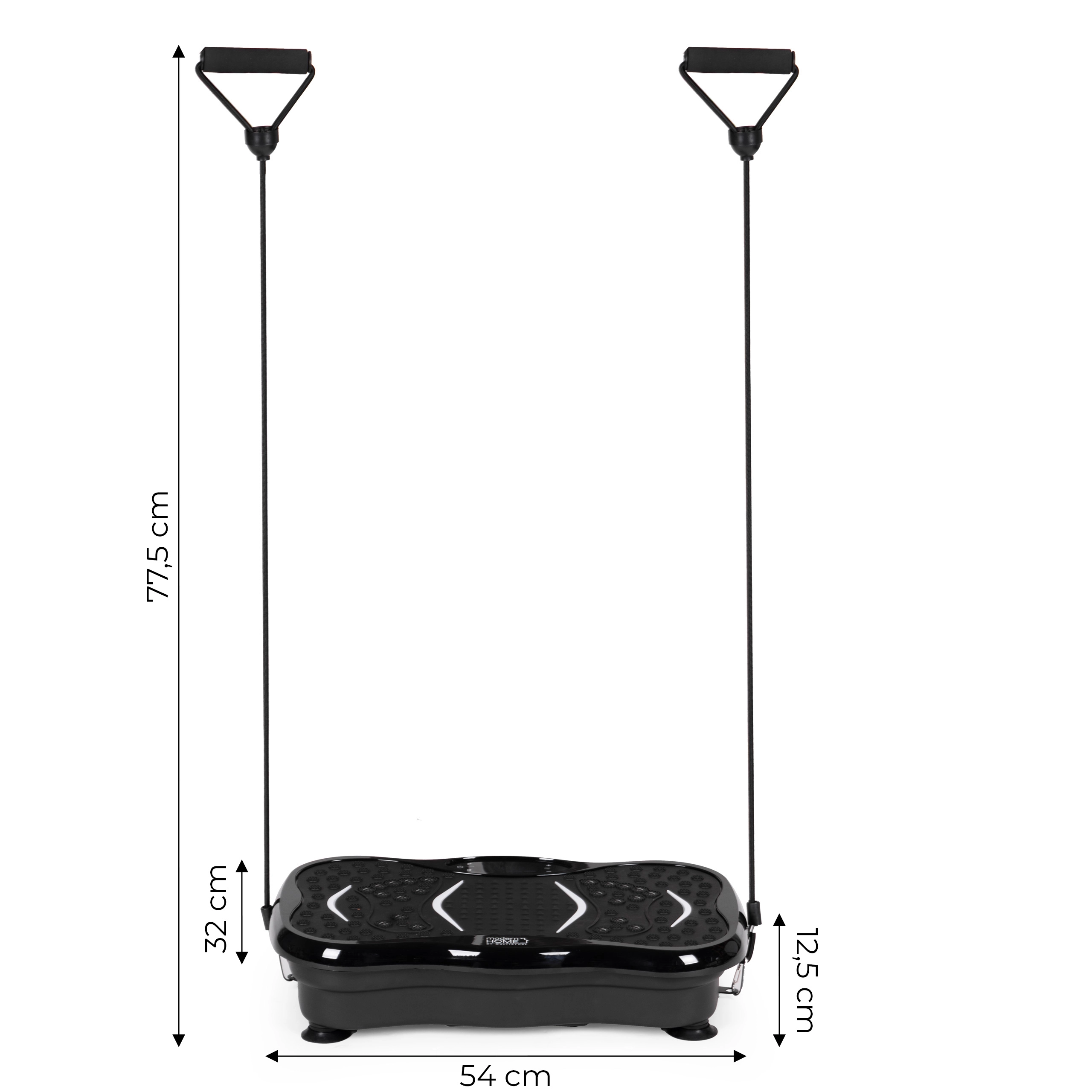Otthoni vibroplata a testformáláshoz, a narancsbőr csökkentéséhez és az izmok relaxációjához. 100 sebességszintet, 5 programot, Bluetooth zenelejátszást, vezeték nélküli távirányítást és expandereket kínál a felsőtest erősítéséhez. Stabil felépítés ABS-ből, csúszásgátló alap és 120 kg teherbírás.