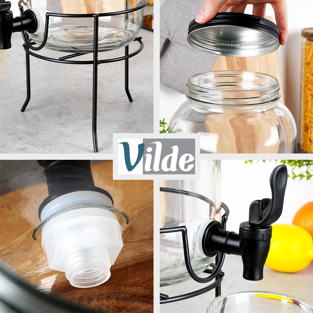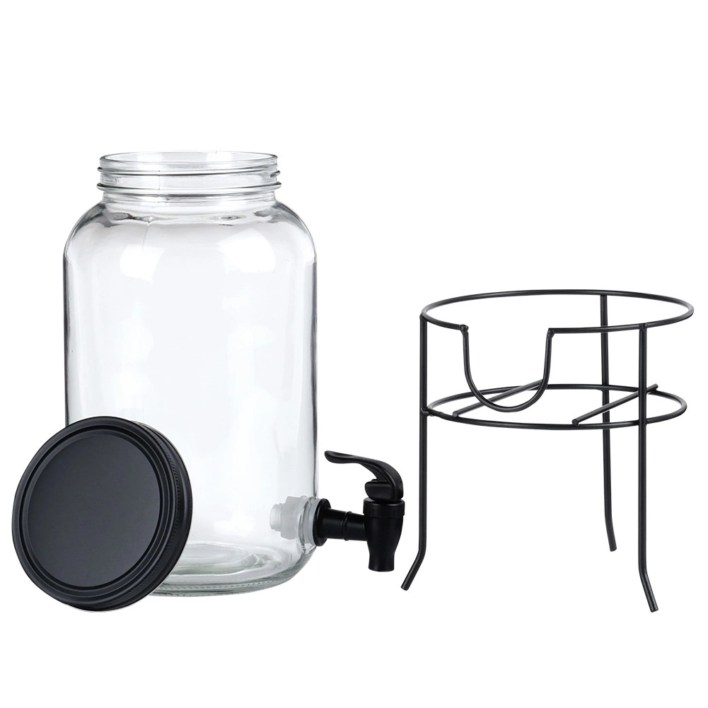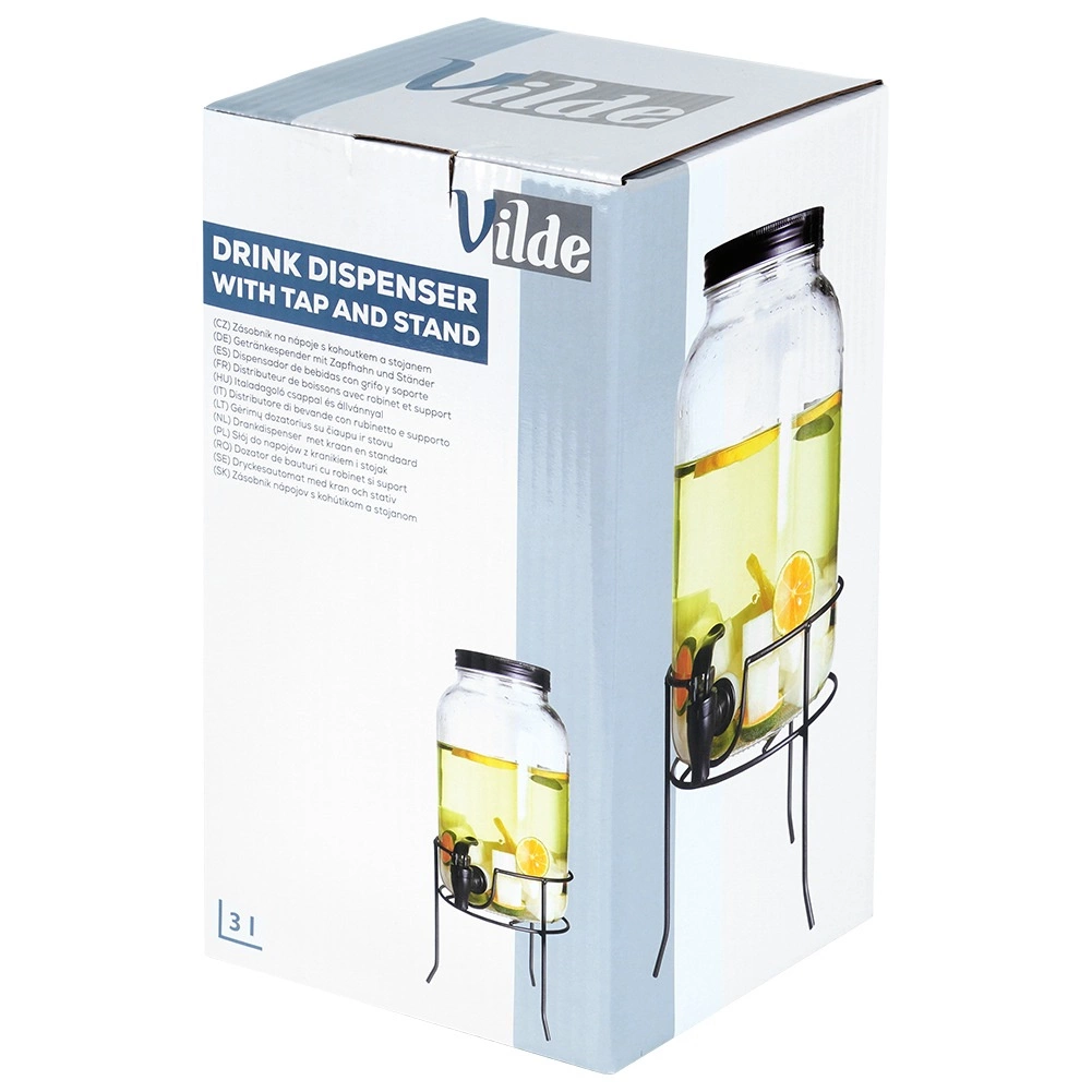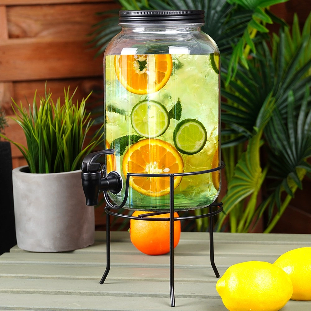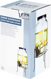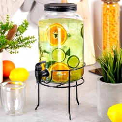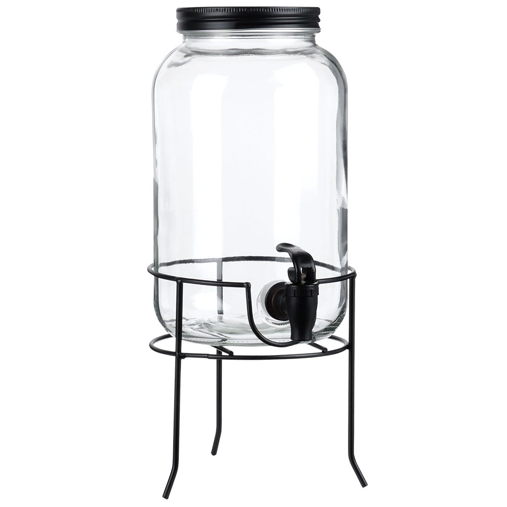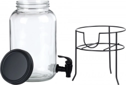 Praktikus italadagoló minőségi, vastag üvegből, fekete csappal és matt fekete tetővel, hogy frissítő italai védve legyenek a rovaroktól és a szennyeződésektől. A stabil fém állvány az edényt ideális magasságba emeli a poharakhoz, így a töltés tiszta és kényelmes.