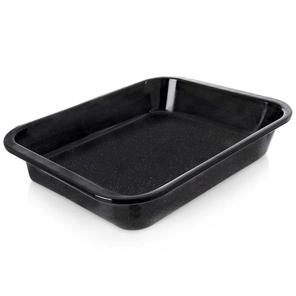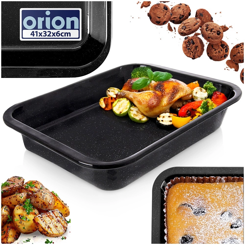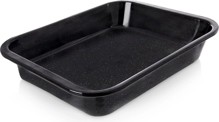 Ez a mély, téglalap alakú tepsi minőségi acélból készült tartós, zománcozott felületkezeléssel, amely hosszú élettartamot, karcállóságot és egyszerű karbantartást biztosít. A sima felület csökkenti az odaégést és megkönnyíti az ételek kioldását.