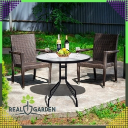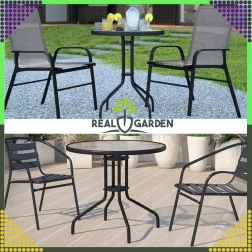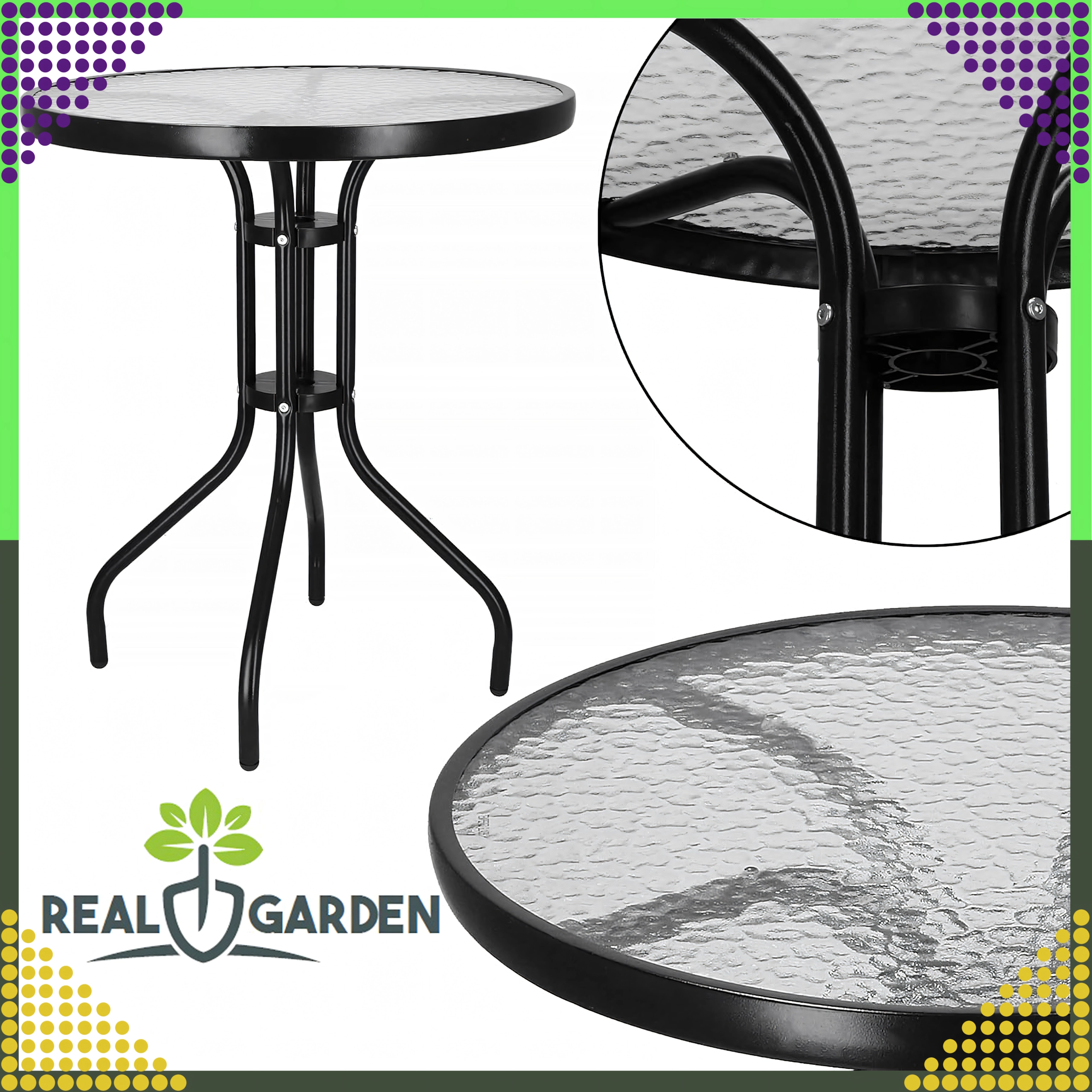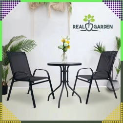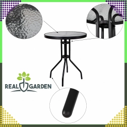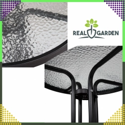 A masszív, porszórt felületű acél váz stabilitást ad és véd a korrózió ellen, így az asztal kiváló kültéri használatra – erkélyre, teraszra, patio-ra és a kertbe. Az univerzális fekete szín a legtöbb kerti bútorhoz illik, modern és elegáns megjelenést kölcsönözve.