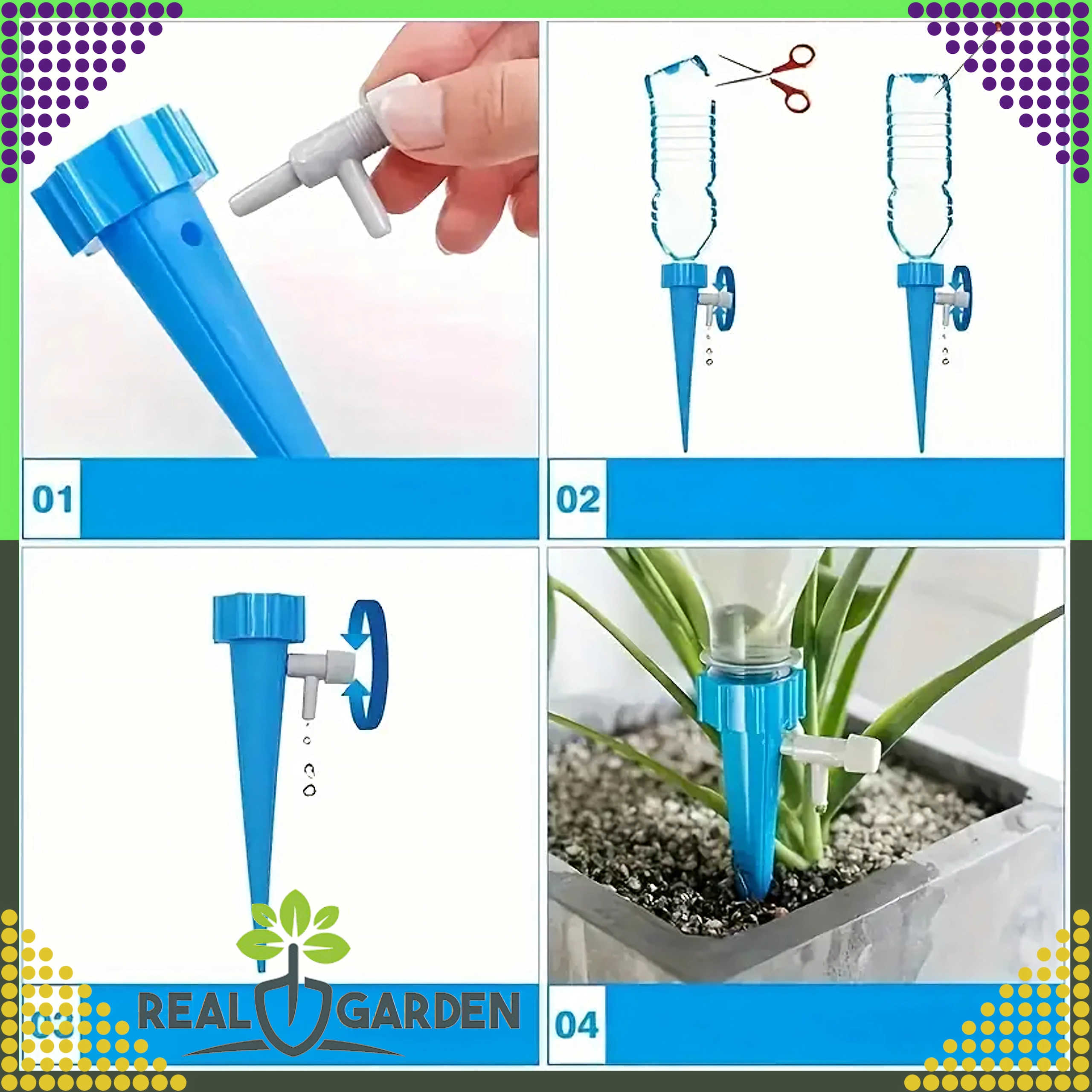 Egyszerű megoldás mindenkinek, aki szeretne biztos lenni abban, hogy növényei pontosan annyi vizet kapnak, amennyire szükségük van. A csappal ellátott öntözők lehetővé teszik a folyamatos átfolyásszabályzást, így különböző típusú talajokhoz és cserepekhez is alkalmasak. A telepítés gyors, szerszám nélkül – csak ráhelyezi a PET palackra, megfordítja, és a cserépbe szúrja.