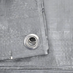 Ez a víz- és szélálló ponyva ideális megoldás gyors és rugalmas védelemre kültéren és beltéren egyaránt. A UV-stabilizálás növeli az anyag élettartamát, míg a fém ringlik a peremen biztos rögzítést tesznek lehetővé kötéllel vagy kampókkal. Az ezüst szín ráadásul jól visszaveri a napsugarakat.