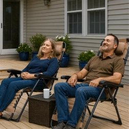 Az ergonomikus dönthetőség egyenletesen oszlatja el a testsúlyt, tehermentesíti a hátat és a lábakat, valóban mély relaxációt nyújtva.