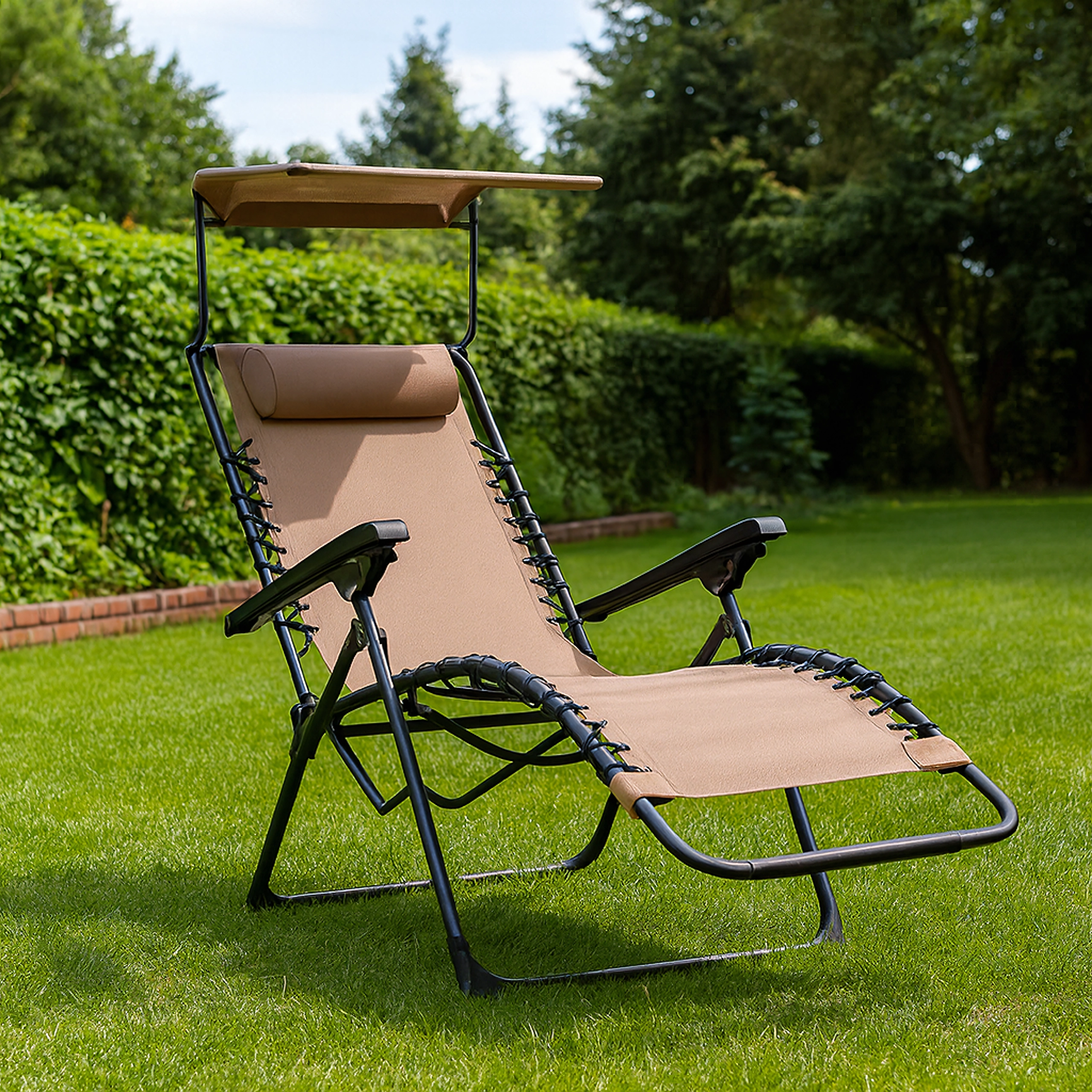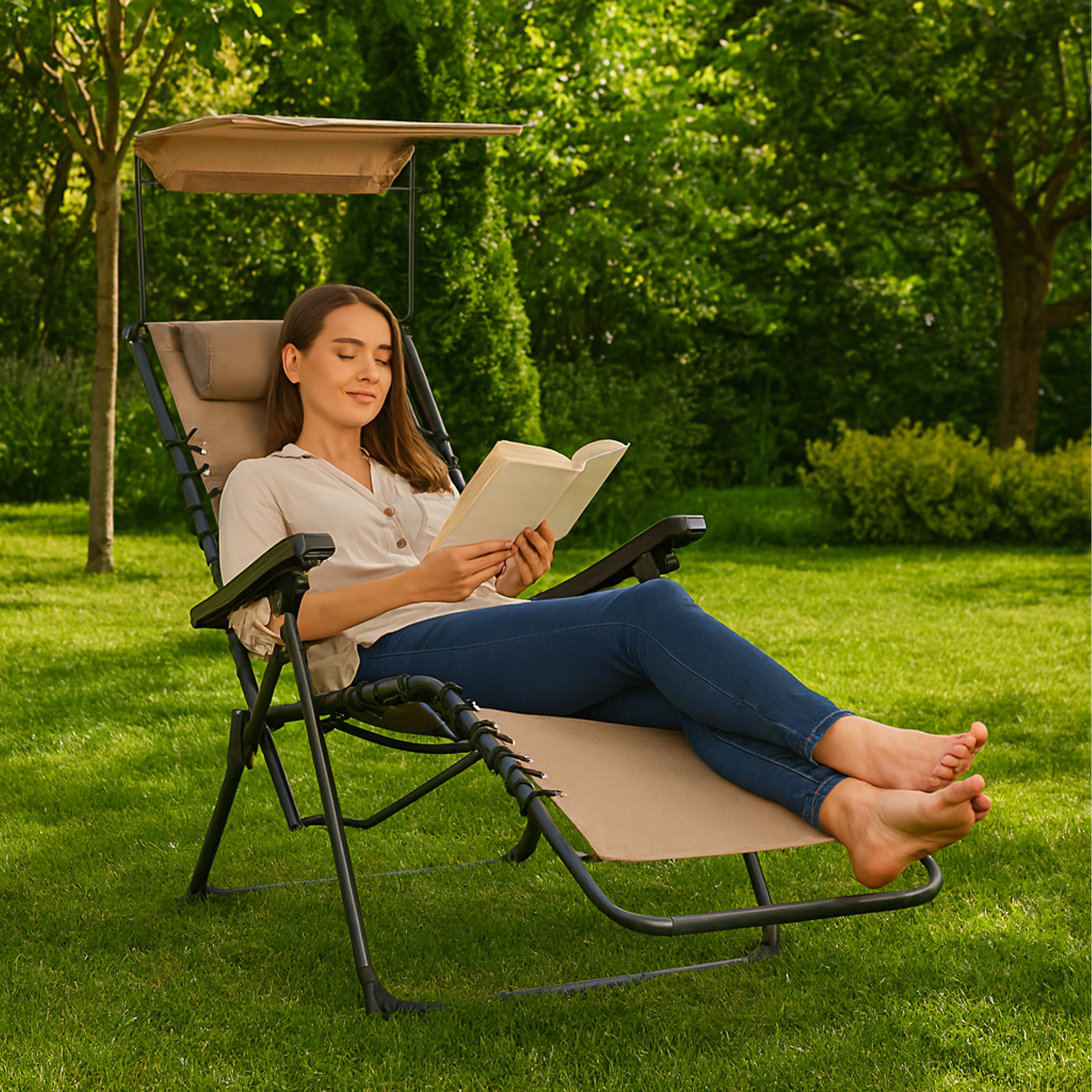 Az integrált baldachint könnyedén a nap állásához igazíthatja – olvasson, pihenjen és relaxáljon vakítás nélkül.