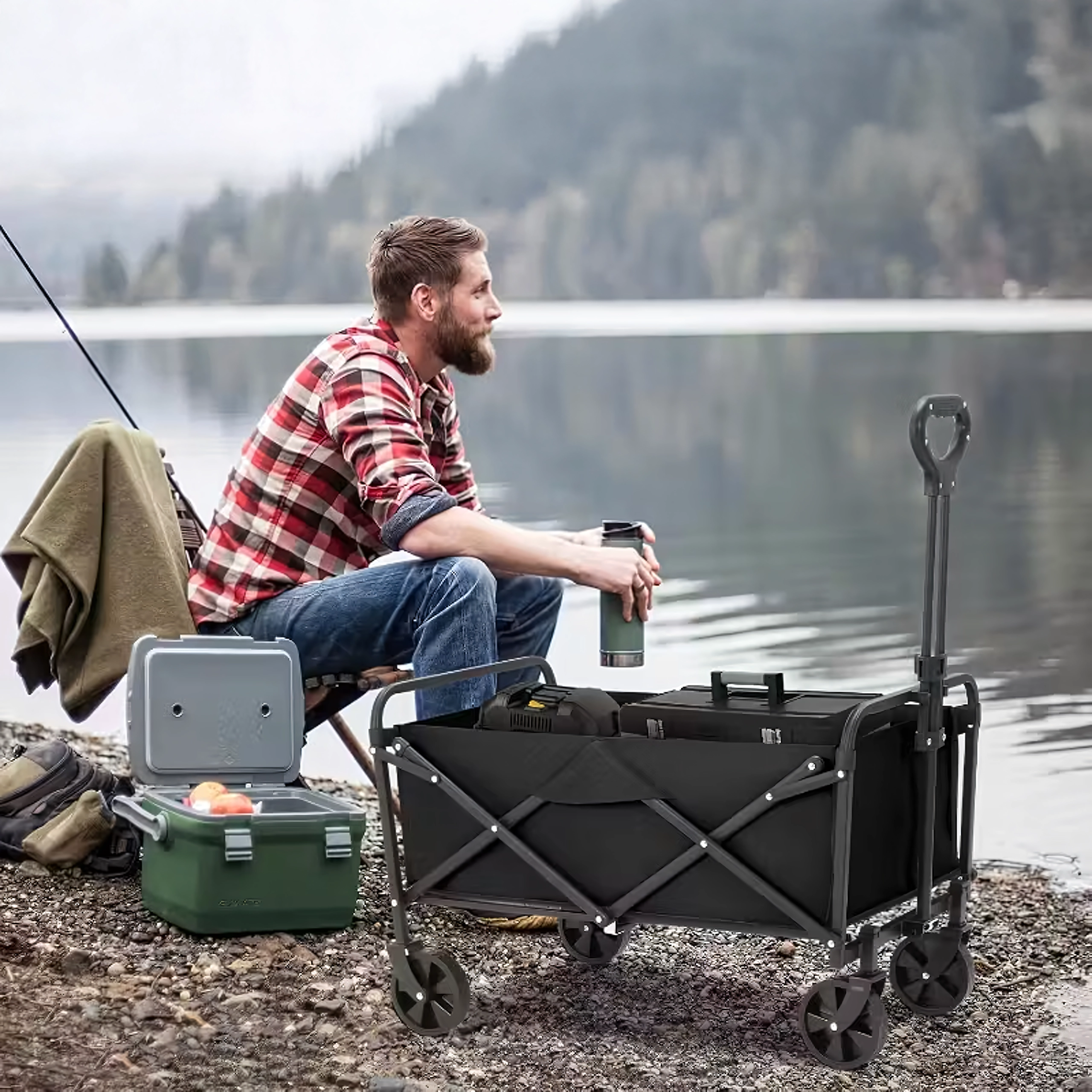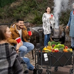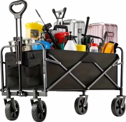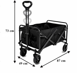 Sokoldalú, összecsukható kocsi, amely megkönnyíti a mindennapi és szabadidős tevékenységeket. A strapabíró acélváz és a erős textil révén nehezebb terhet is képes szállítani különböző felületeken – a kerttől a parkon át egészen a strandig. A nagy, forgó kerekek sima haladást és könnyű manőverezést biztosítanak terepen is.