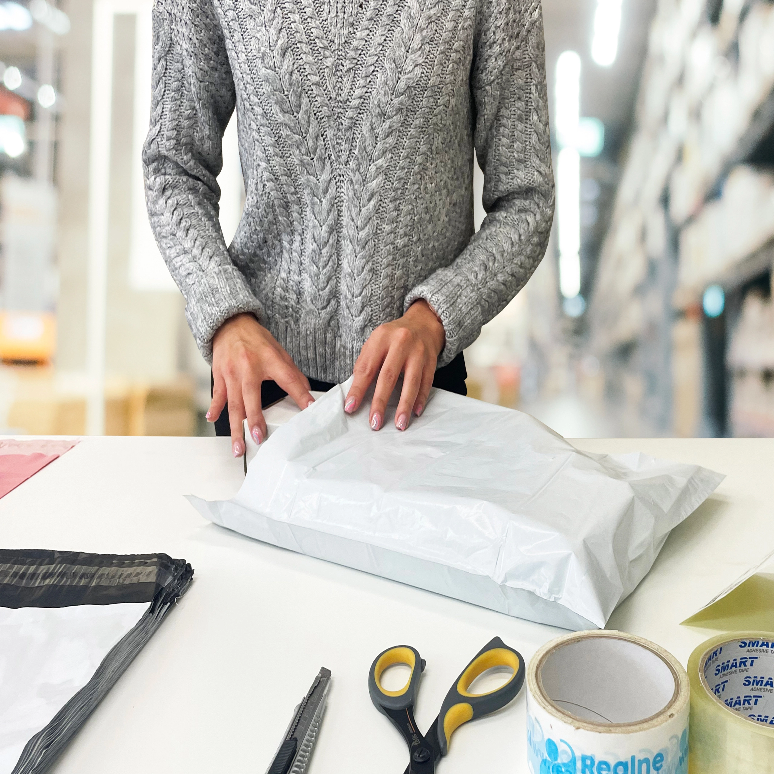 Ezek a fehér politasakok a termékek hatékony feladásához készültek – a textiltől a kiegészítőkig. Az öntapadó csík gyors és megbízható zárást biztosít külön ragasztószalag nélkül, míg a sötét belső réteg adatvédelmet nyújt.