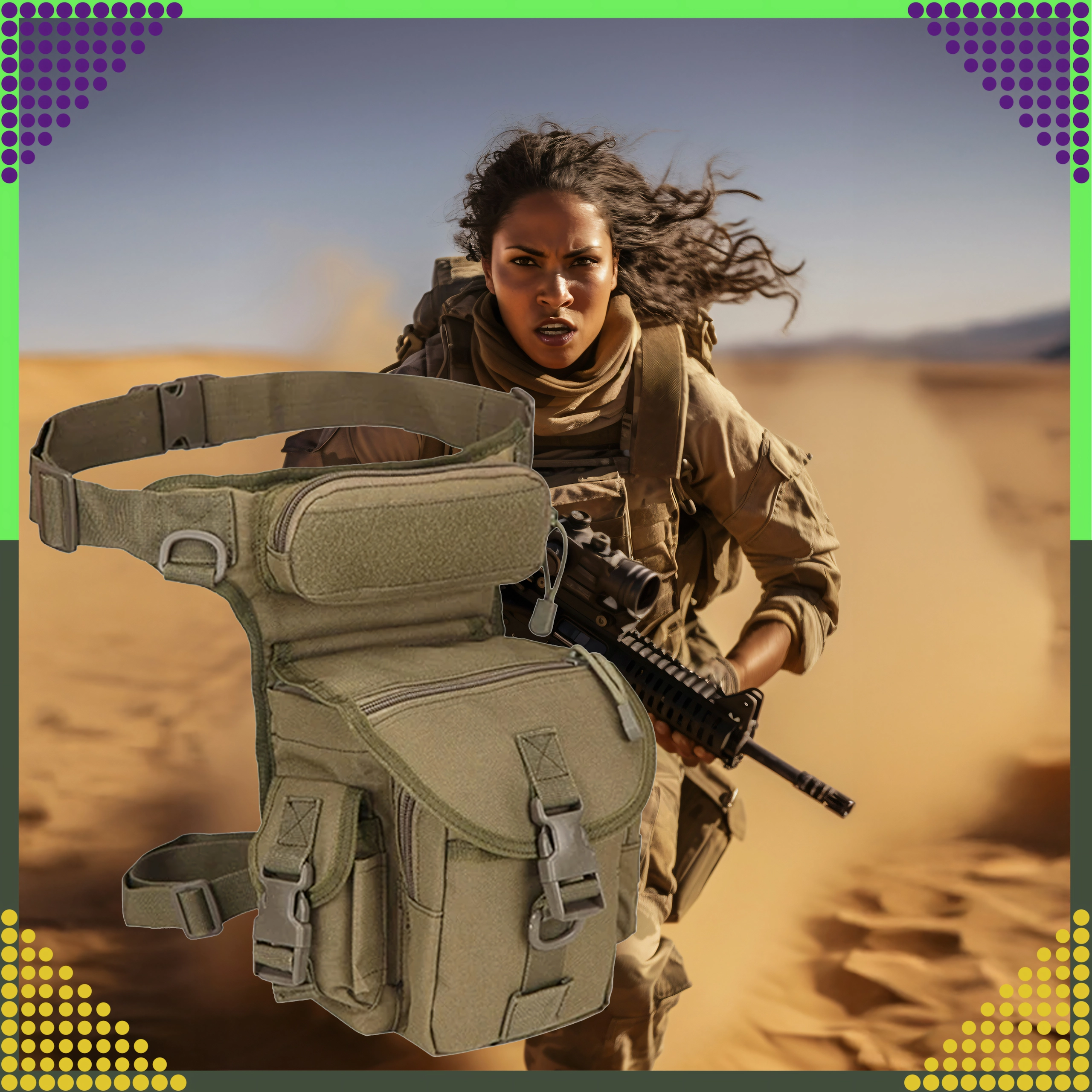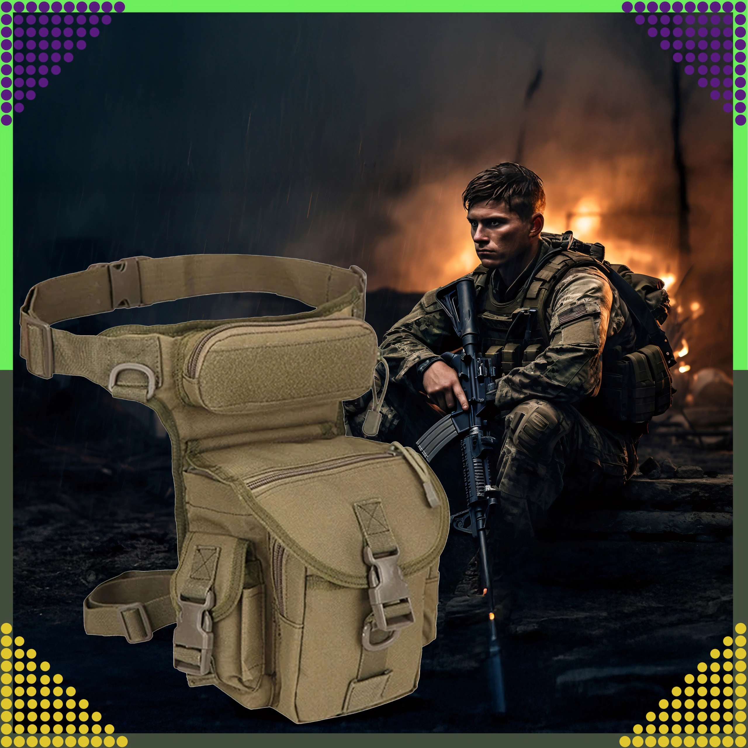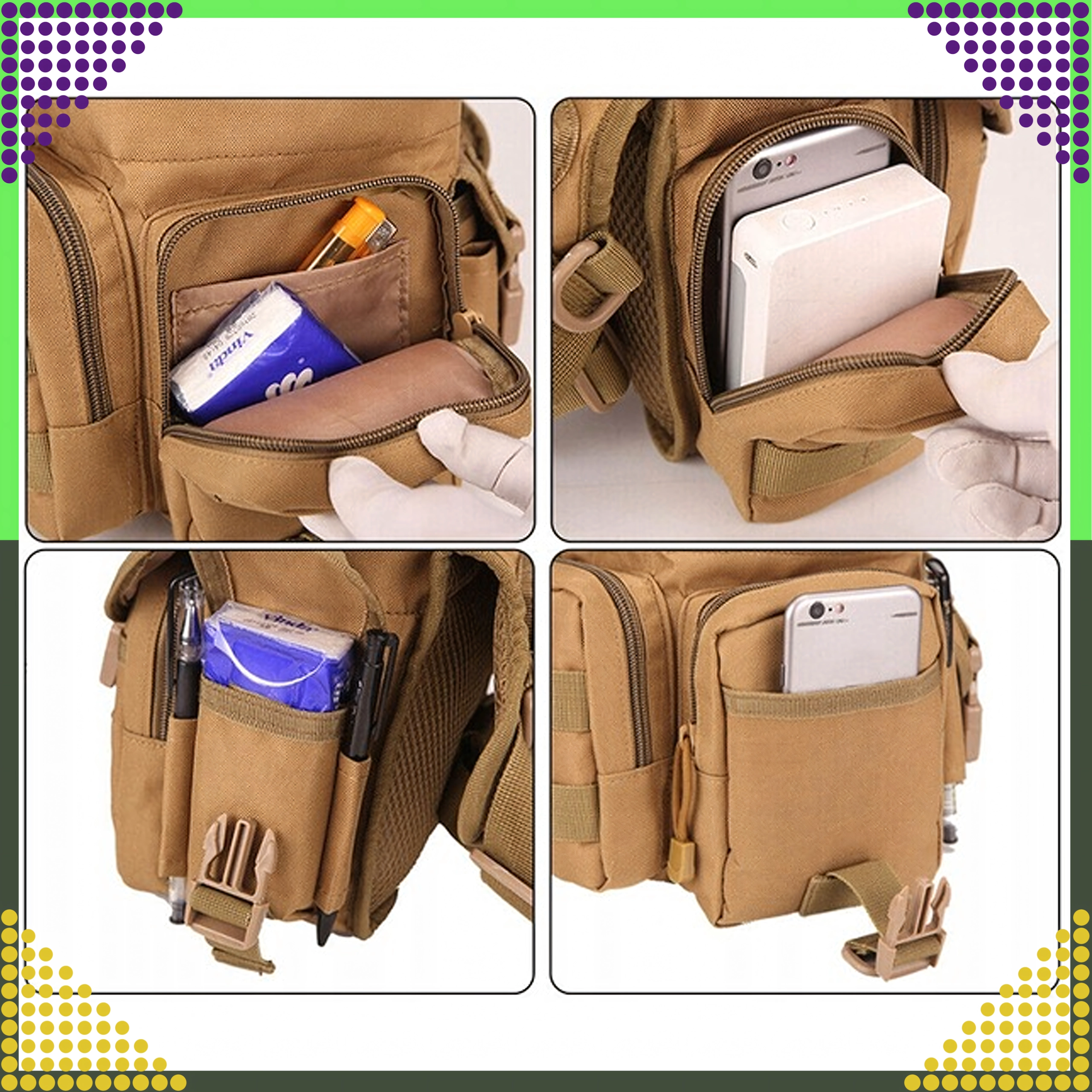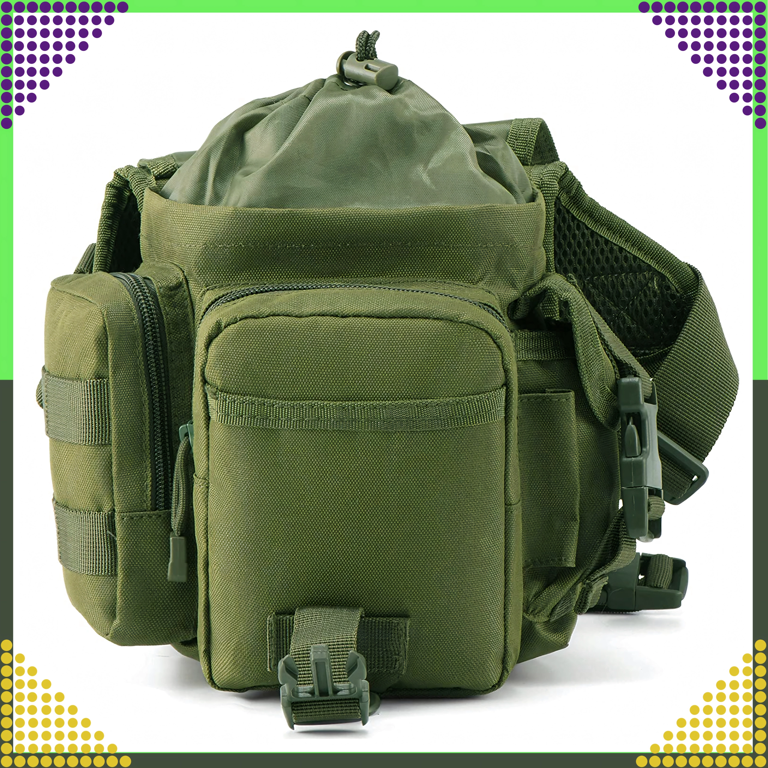 Az ergonomikus rögzítőrendszer állítható derék- és combpánttal stabilitást nyújt gyaloglásnál, futásnál és kerékpározásnál. Az ellenálló anyagok, megbízható csatok és cipzárak bírják a túrázás, kempingezés, horgászat, airsoft és a mindennapos utazás kihívásait.