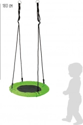 A zöld SMALL FOOT gólyafészek függőhinta bármely kertet, teraszt vagy gyerekszobát a nyugalom és a szórakozás oázisává varázsol. Puha, kényelmes pereme és kerek formája biztonságos, meghitt helyet nyújt olvasáshoz, pihenéshez és hintázáshoz. A fém karikák megkönnyítik a gyors felakasztást, a tartós anyagok pedig hosszú élettartamot biztosítanak.