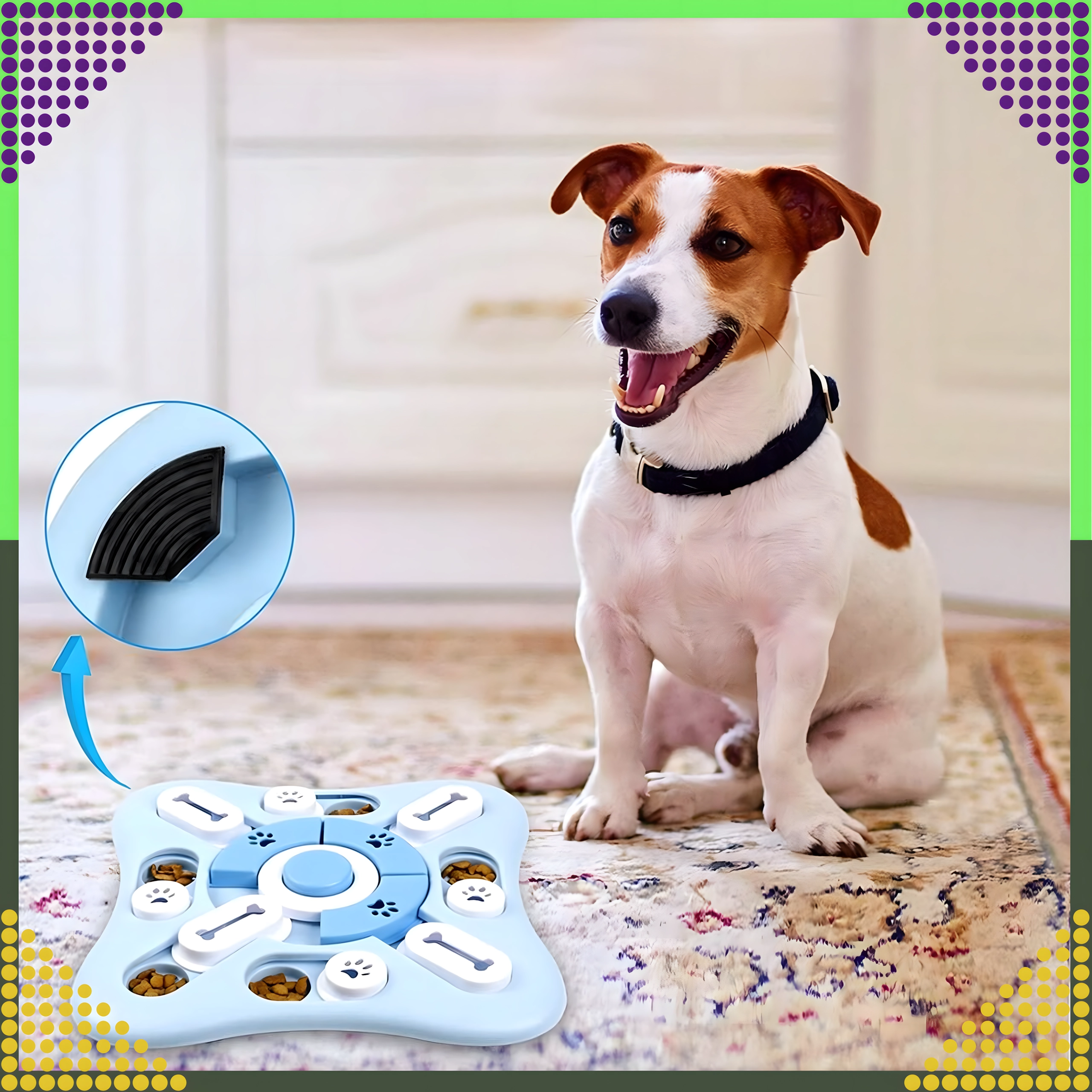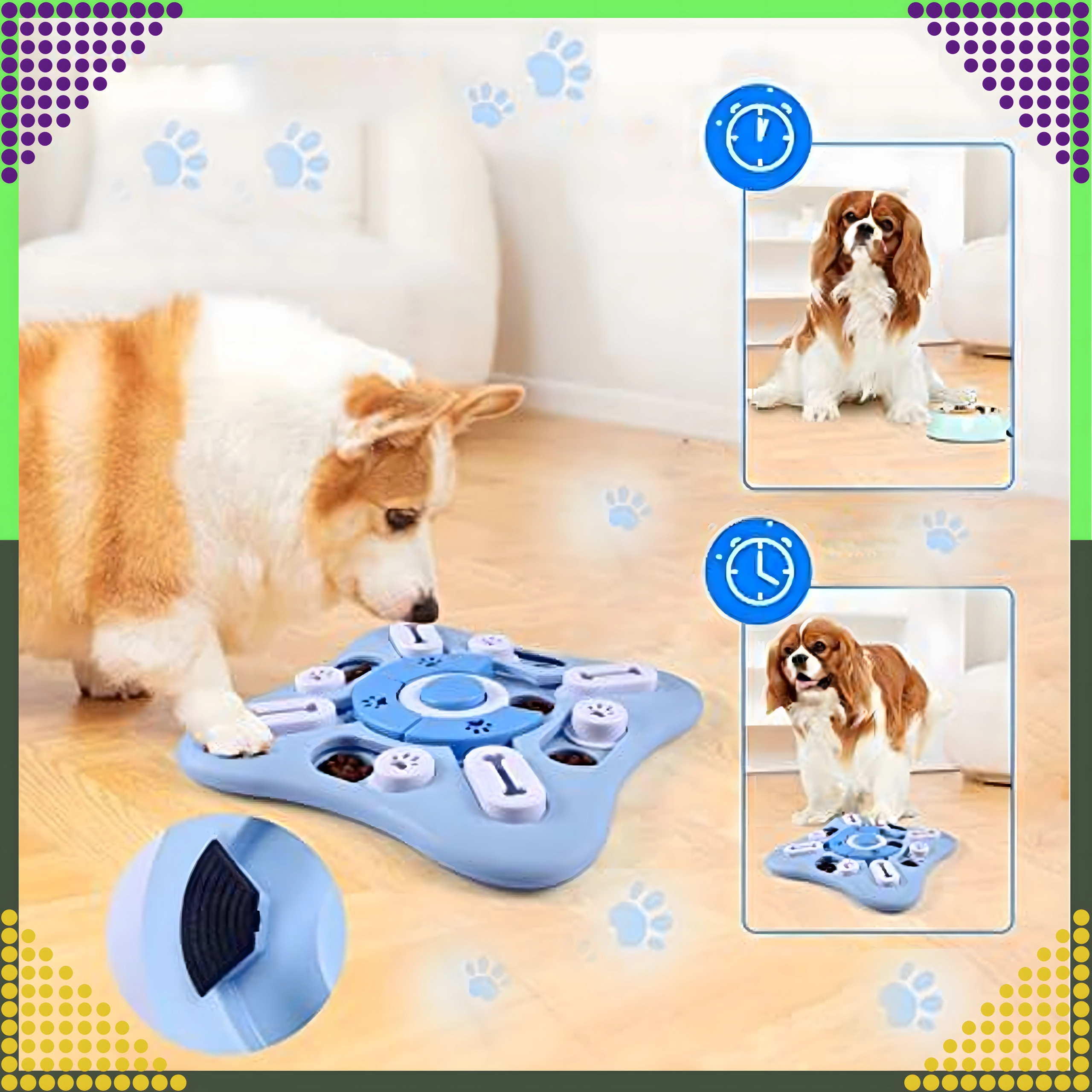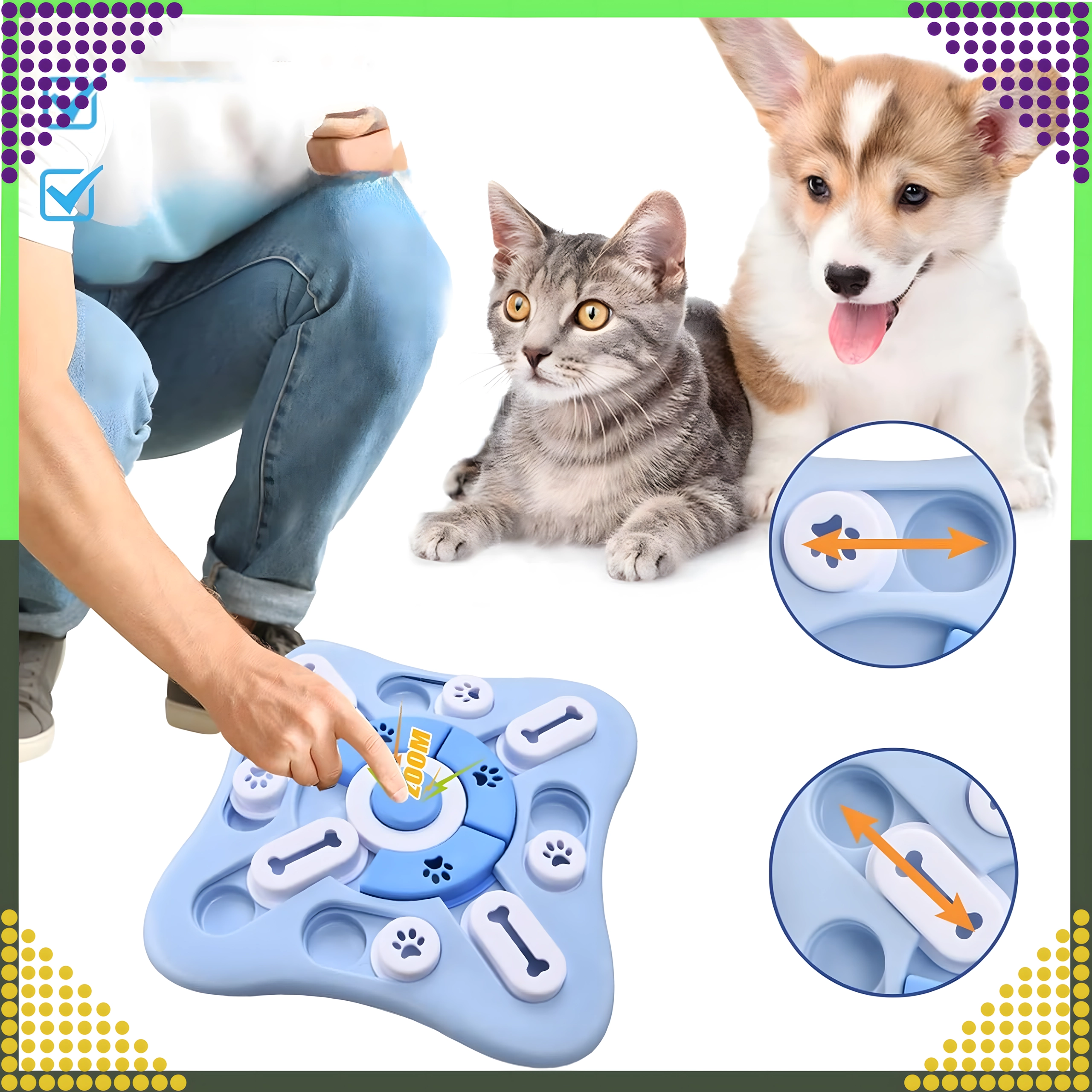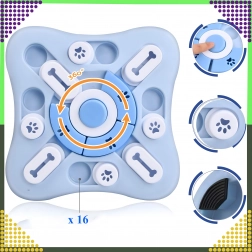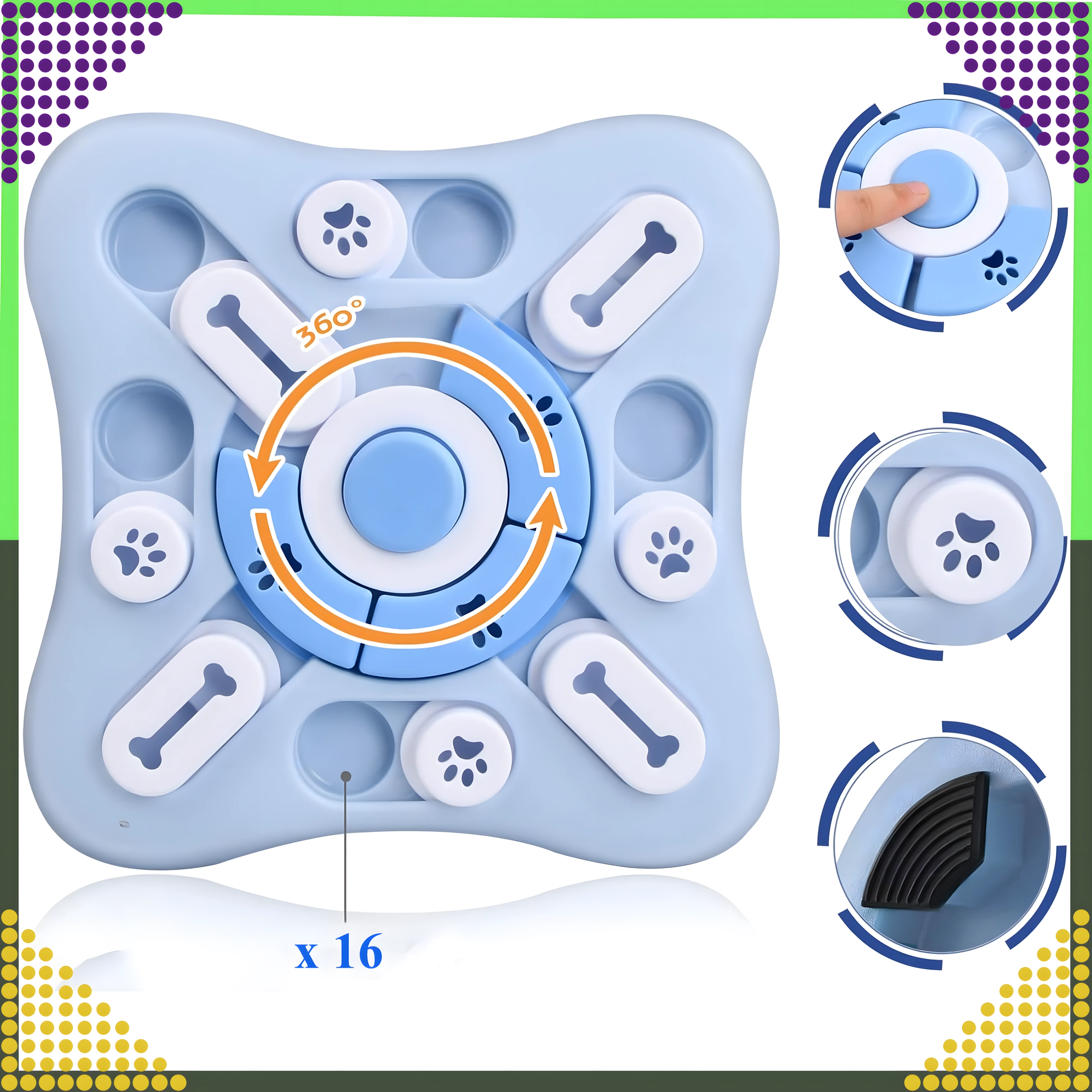 Az oktató játék kutyáknak értelmes szórakozást nyújt még etetés közben is. A kutya csúsztatható rekeszekben keresi a jutalomfalatokat, fejleszti a koncentrációt és használja természetes ösztönét. A lassító elemek segítenek mérsékelni a habzsolást, ami pozitívan hathat az emésztésre és a teljes közérzetre kedvencednél.