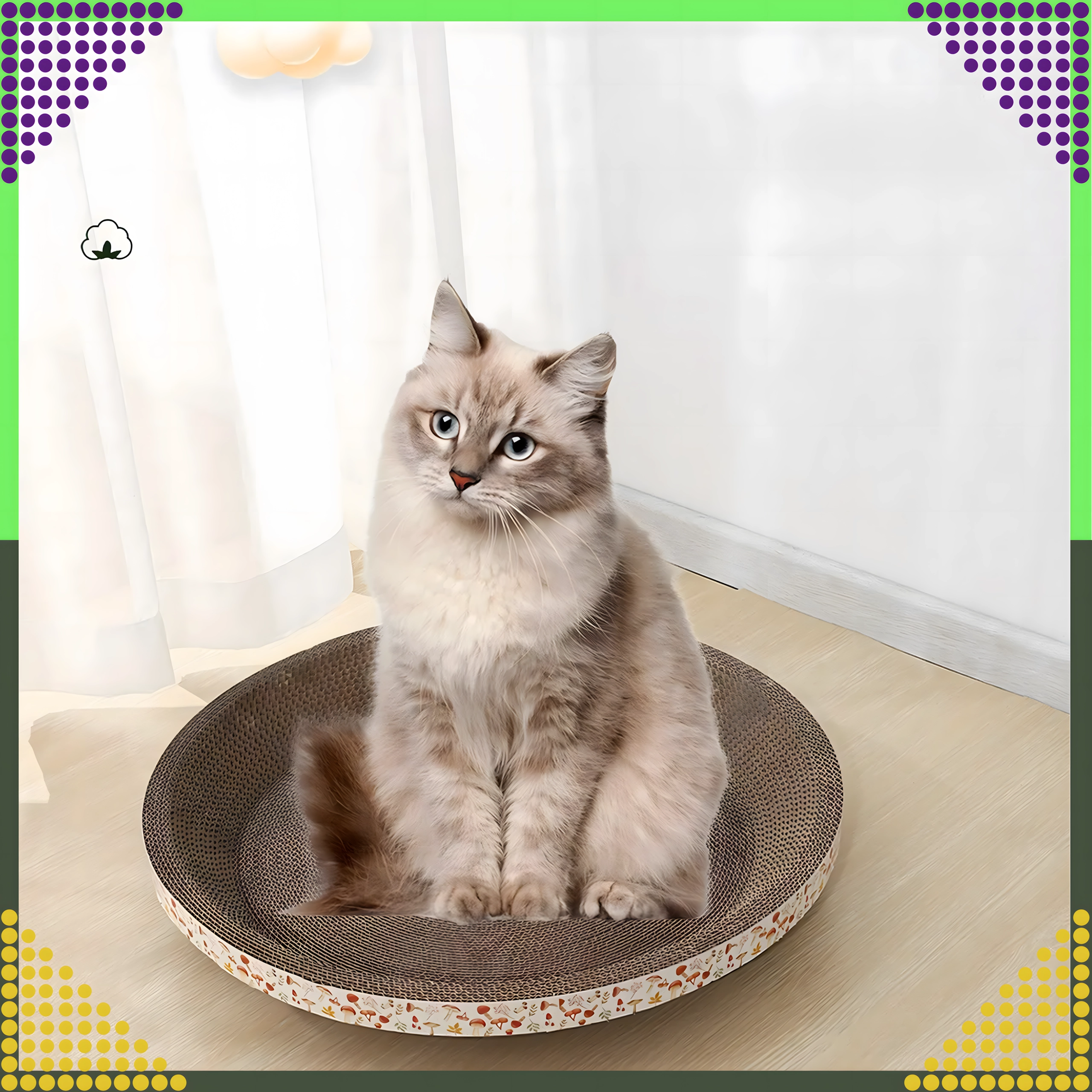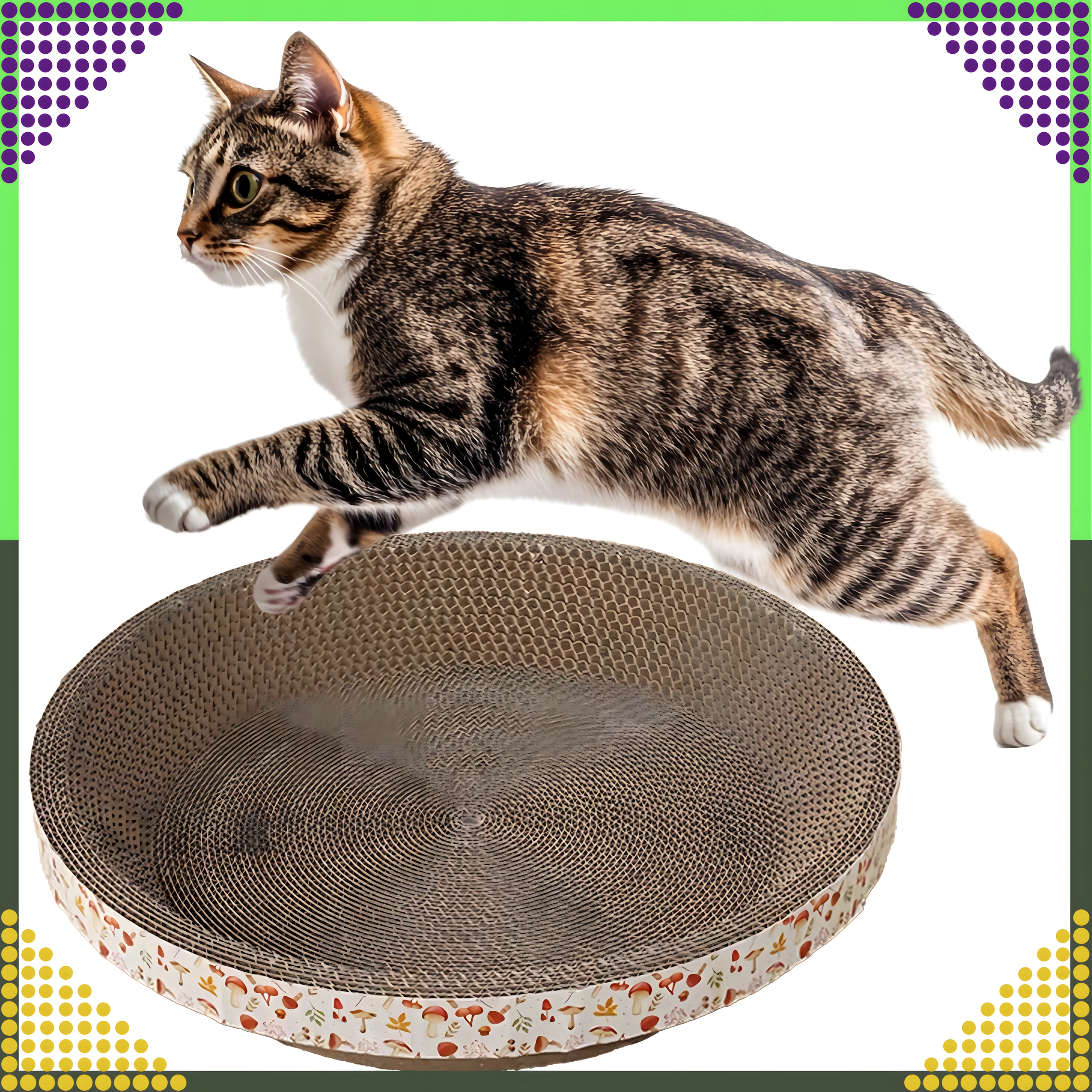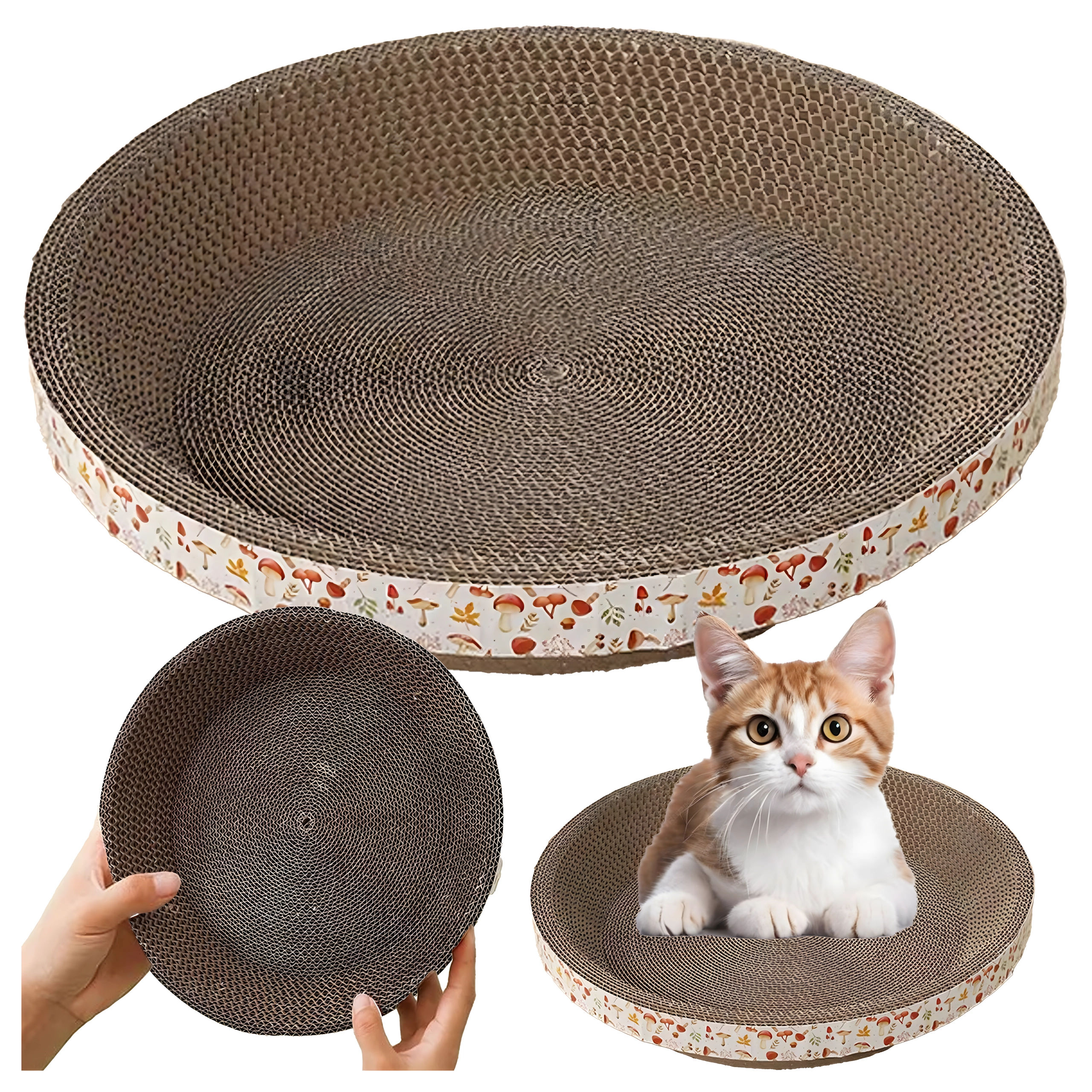 A 30 cm átmérőjű kerek karton kaparó fekhely bőséges teret ad kaparáshoz, játékhoz és pihenéshez. A masszív sejtszerkezetű felület tartós, és természetes karmkoptatásra csábítja a macskákat, ezáltal csökkenti a bútorok sérülésének kockázatát.