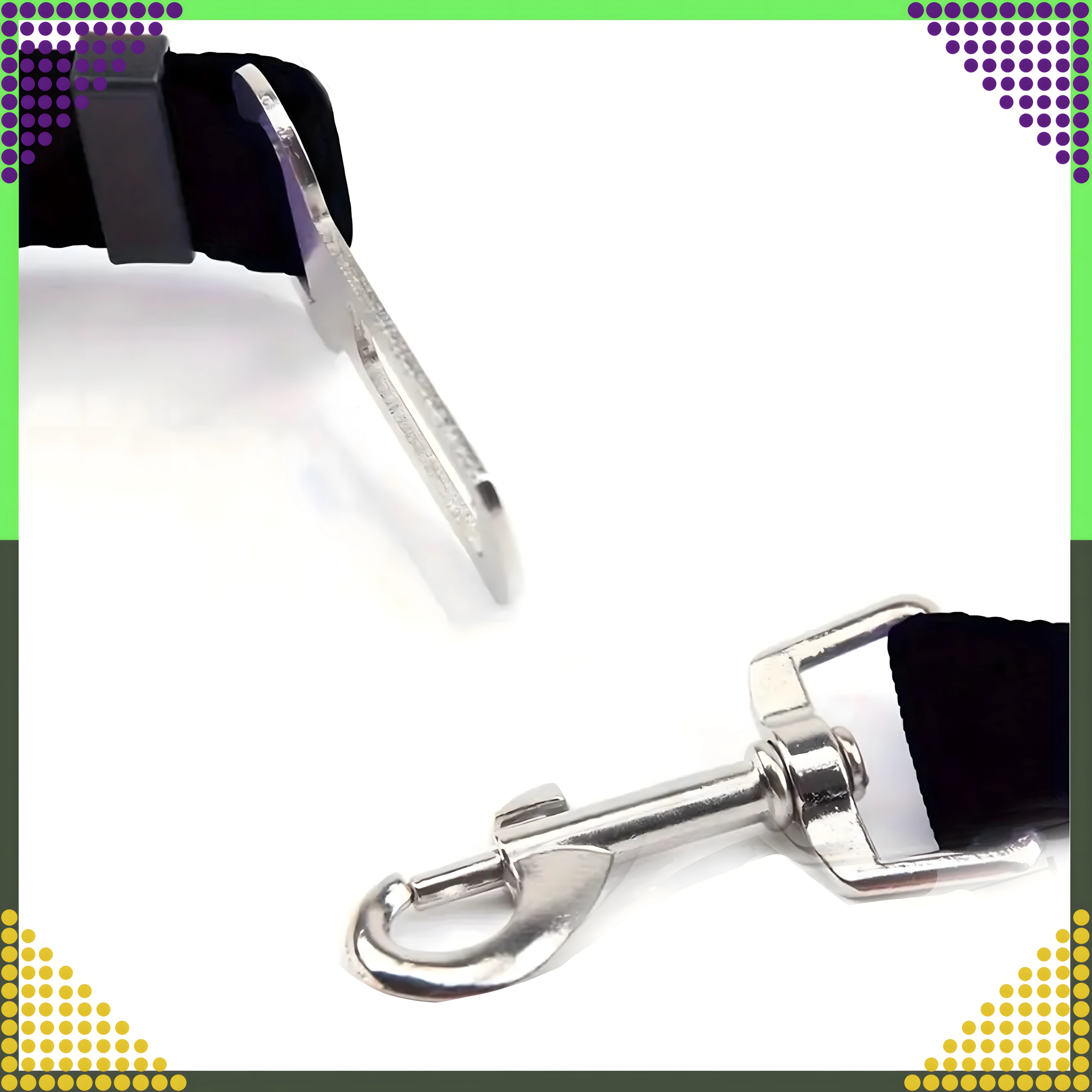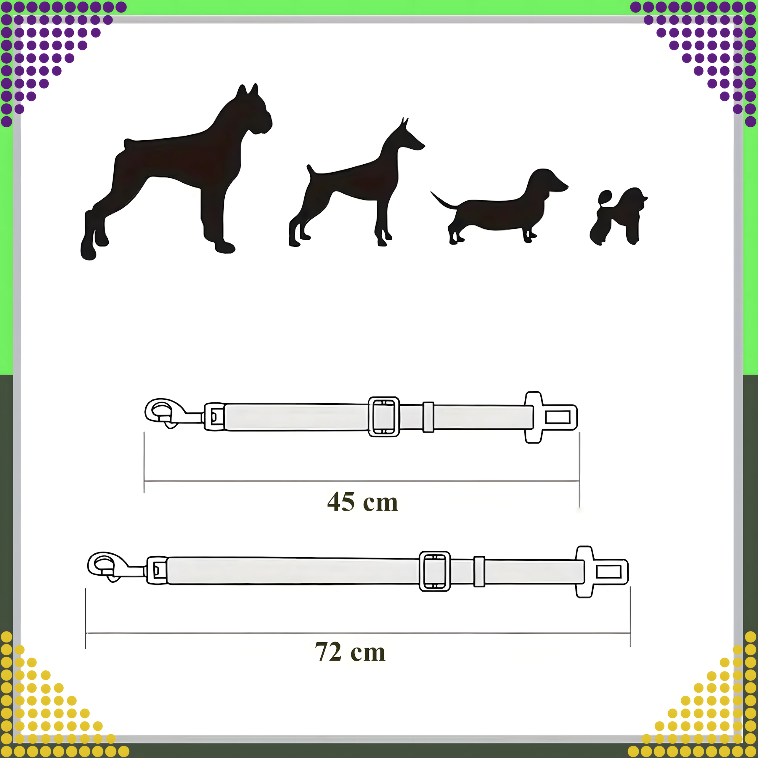 Praktikus öv kutya vagy macska rögzítéséhez autózás közben. Egyszerűen helyezze a szabványos biztonsági öv aljzatába, a másik végét pedig forgó karabinerrel rögzítse a hámhoz (ajánlott a nyakörv helyett). Az állítható 45–72 cm-es hossz lehetővé teszi, hogy az állat üljön vagy feküdjön, ugyanakkor megakadályozza a veszélyes mozgást az autóban.