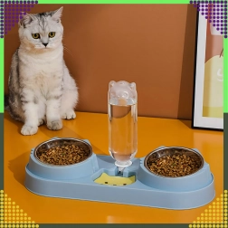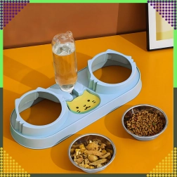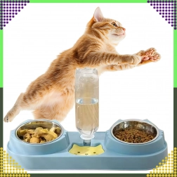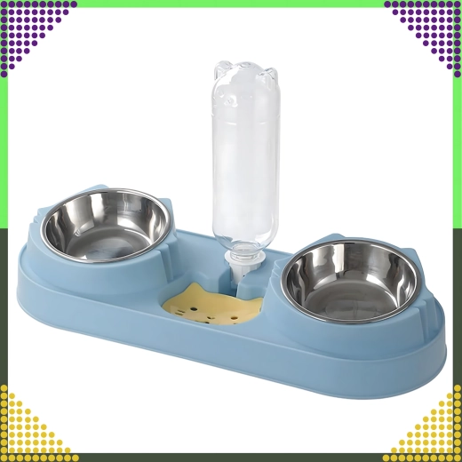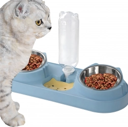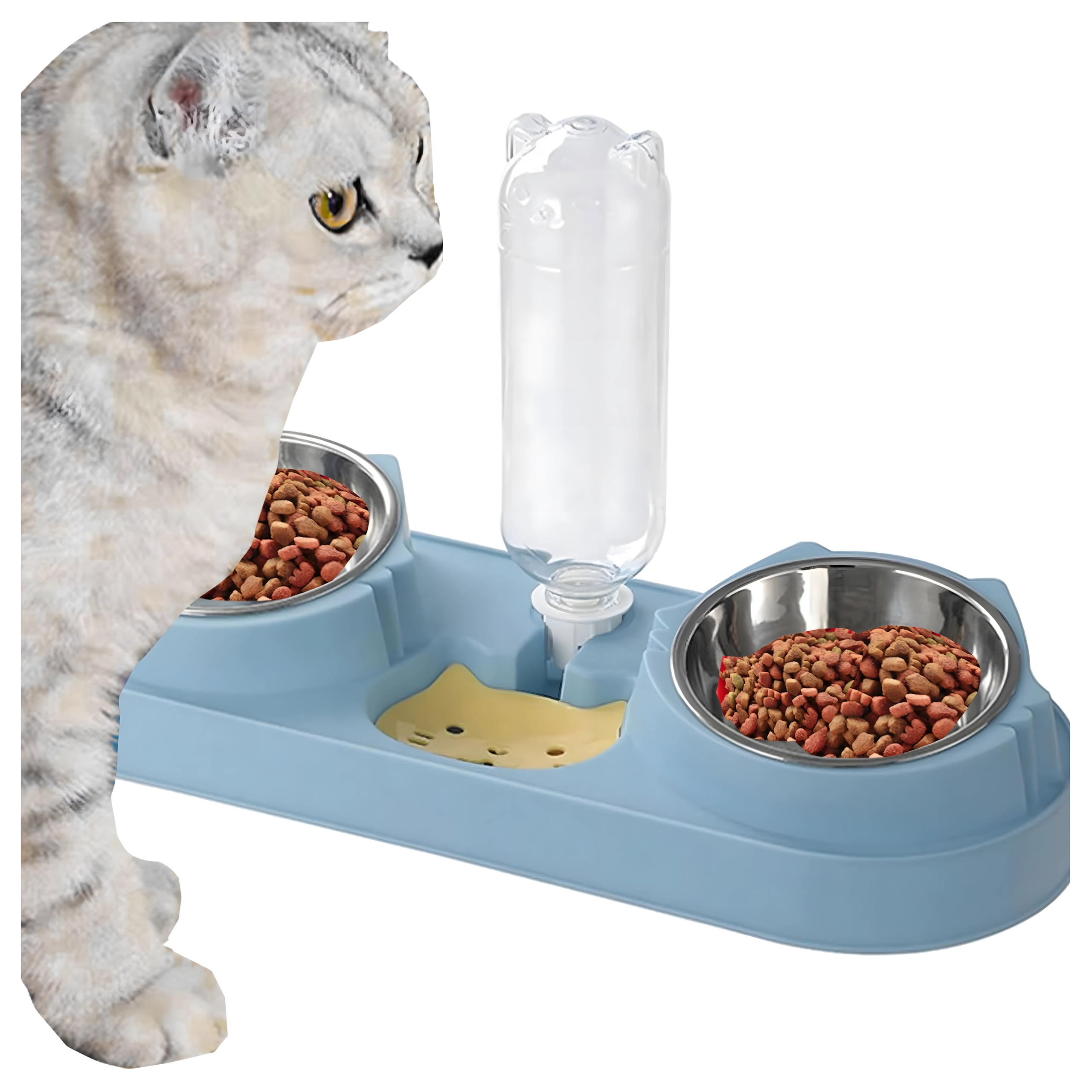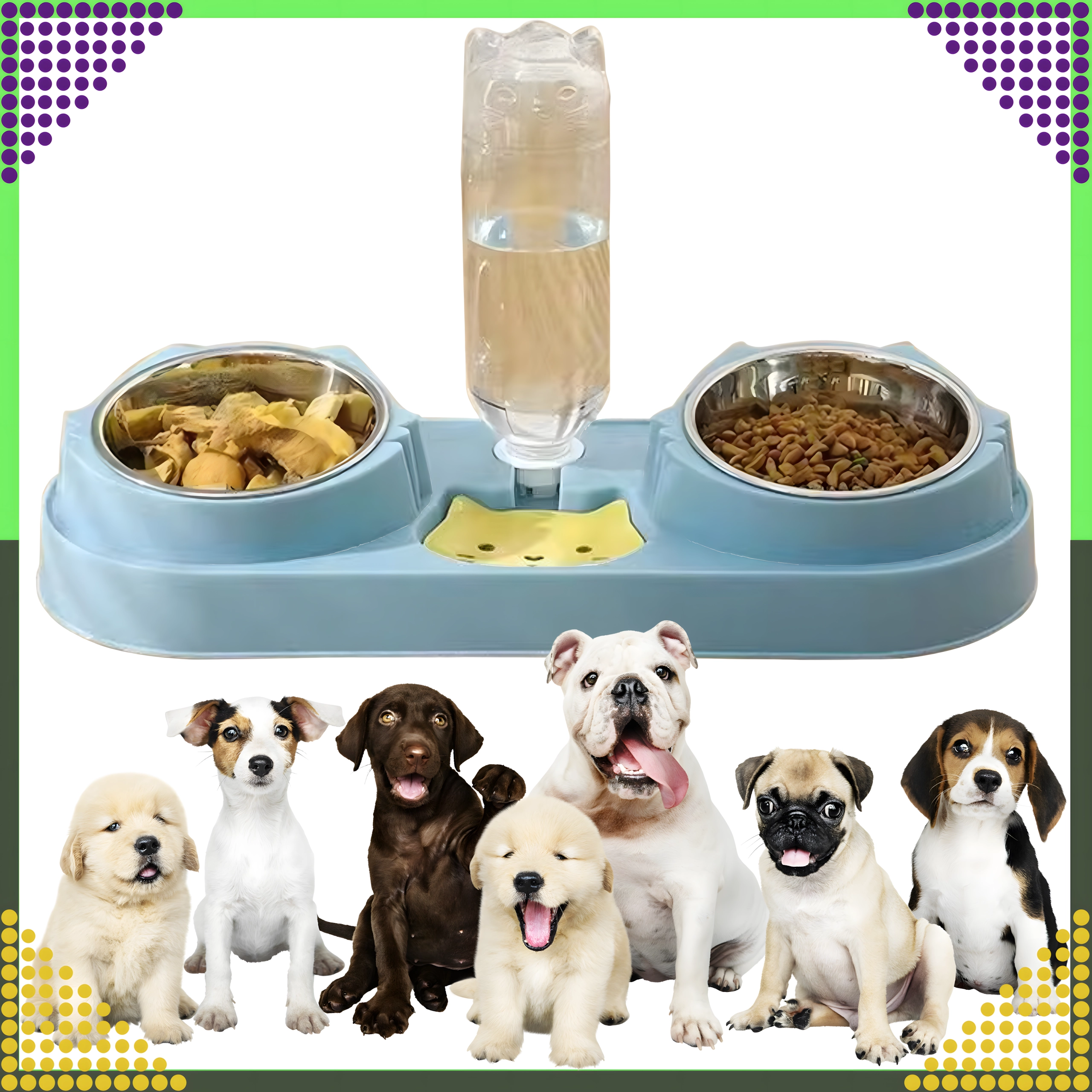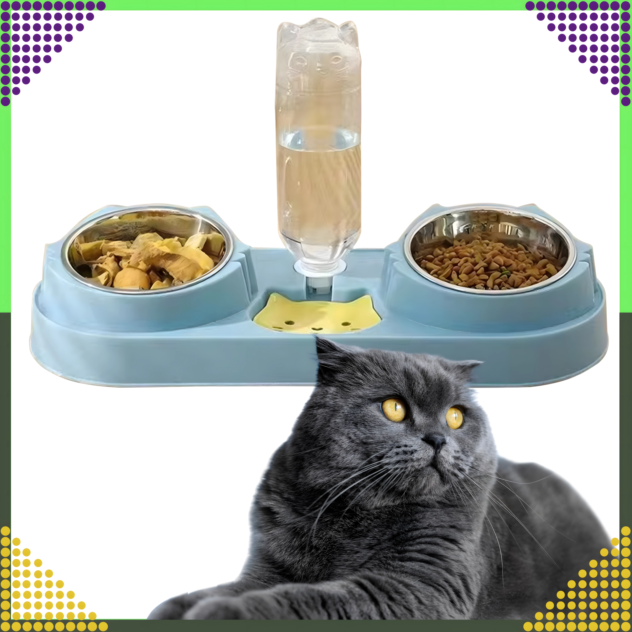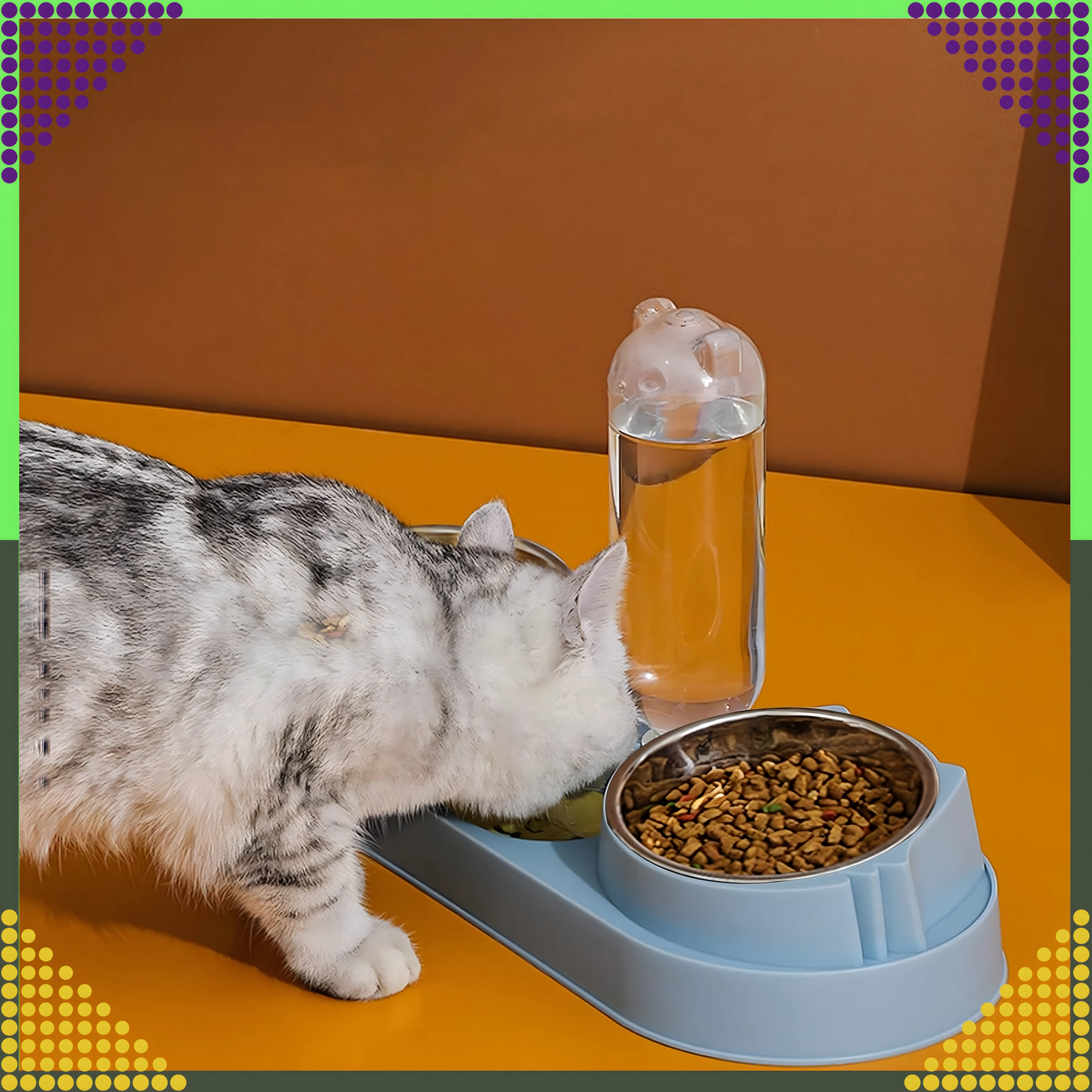 Praktikus kettős etetőtál házi kedvenceknek, integrált vízadagolóval, amely biztosítja az egyszerre történő etetést és friss vízellátást. A kivehető rozsdamentes tálak megkönnyítik a gyors tisztítást, a stabil alap megakadályozza a felborulást, a gravitációs itató pedig tisztán és elérhetően tartja a vizet távollétedben is.