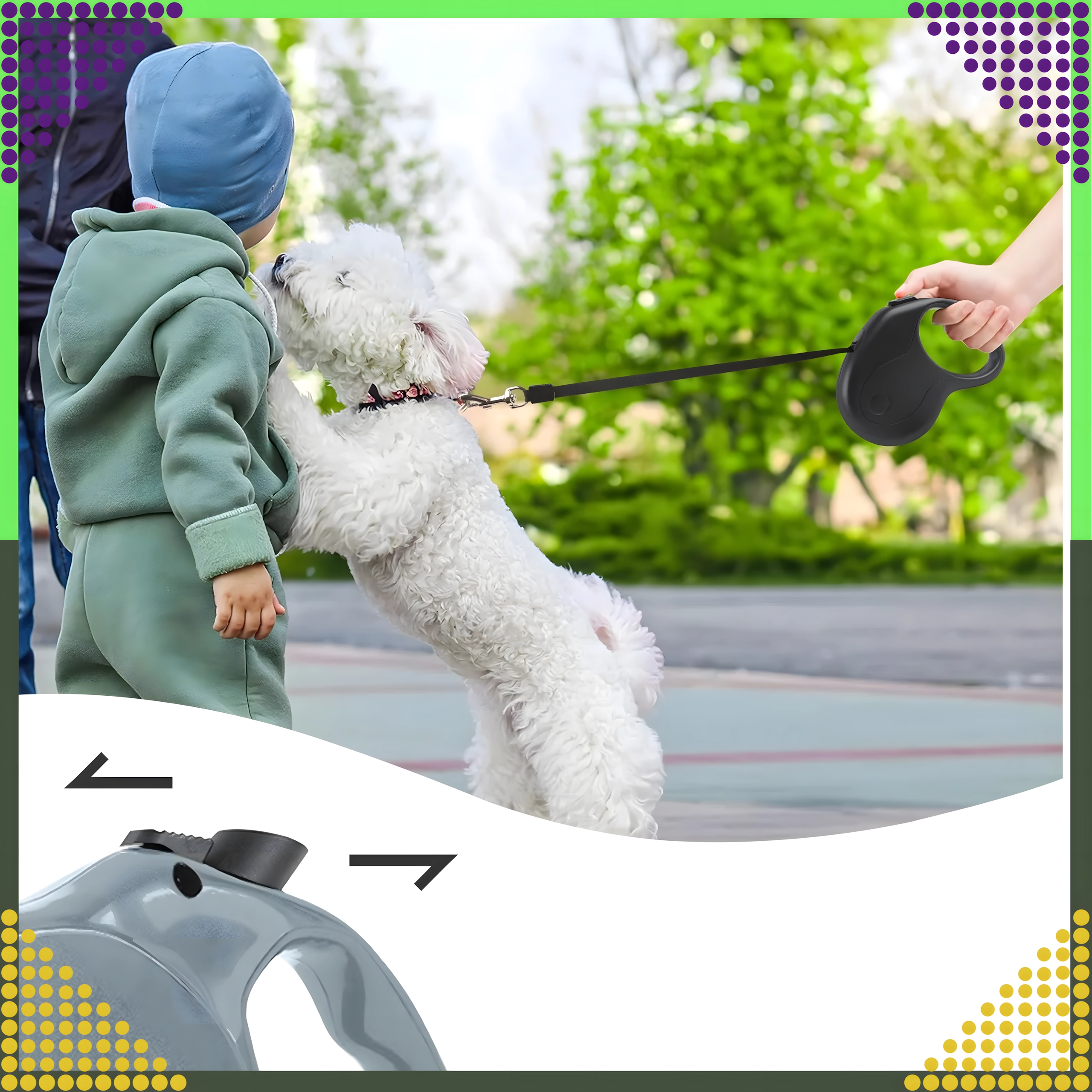 A mechanizmus lehetővé teszi a hossz könnyű szabályozását egy hüvelykujjal. Állítsa meg, rögzítse és engedje ki a pórázt egy szempillantás alatt a biztonságos sétákhoz városban és parkban egyaránt.