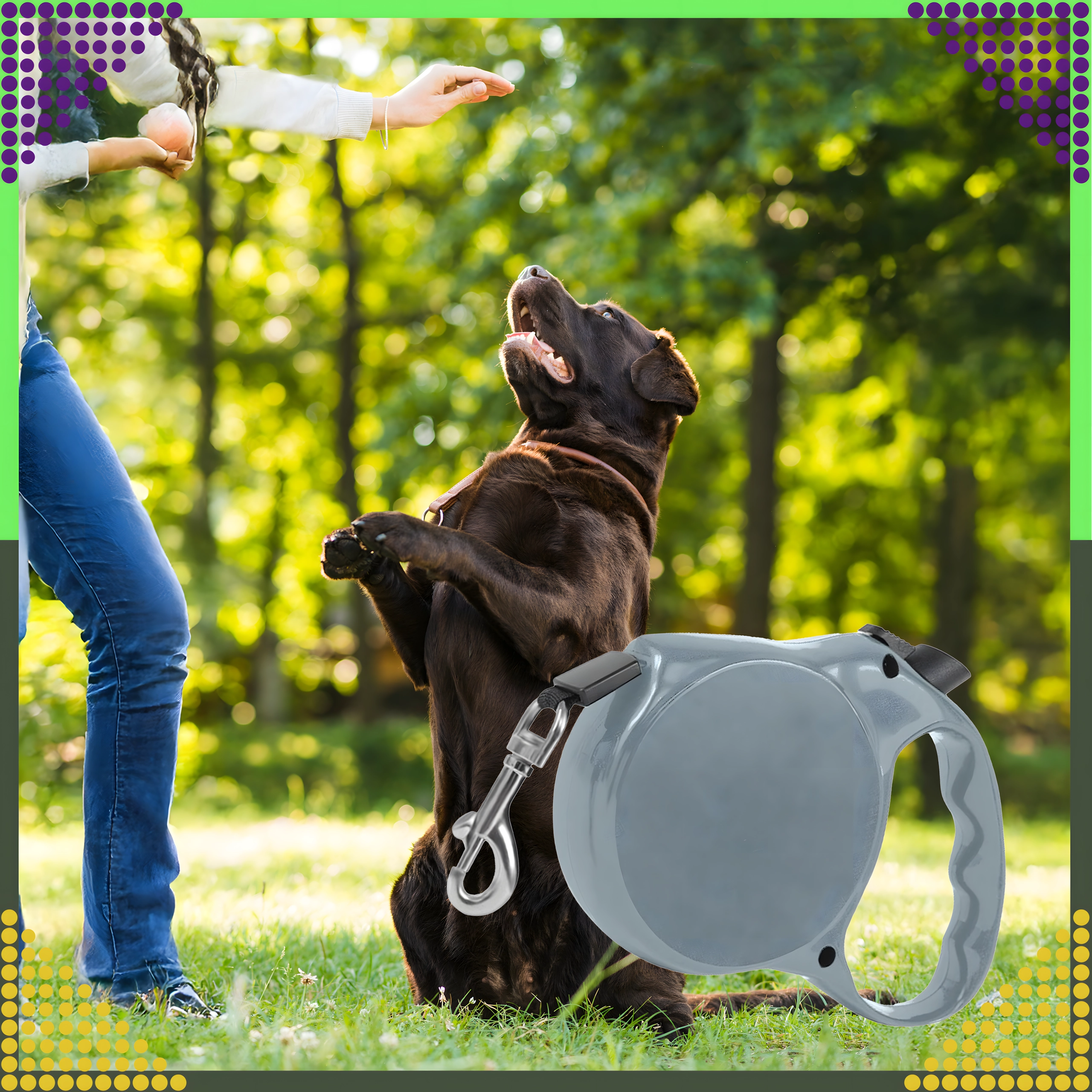 Élvezze a kényelmes sétákat az 5 m hosszú szalaggal rendelkező automata pórázzal. A masszív műanyag ház, a 360°-ban forgó fém karabiner és a halk mechanizmus megbízhatóságot és biztonságot nyújt a mindennapi használat során. A szürke kivitel univerzális és könnyen tisztítható.