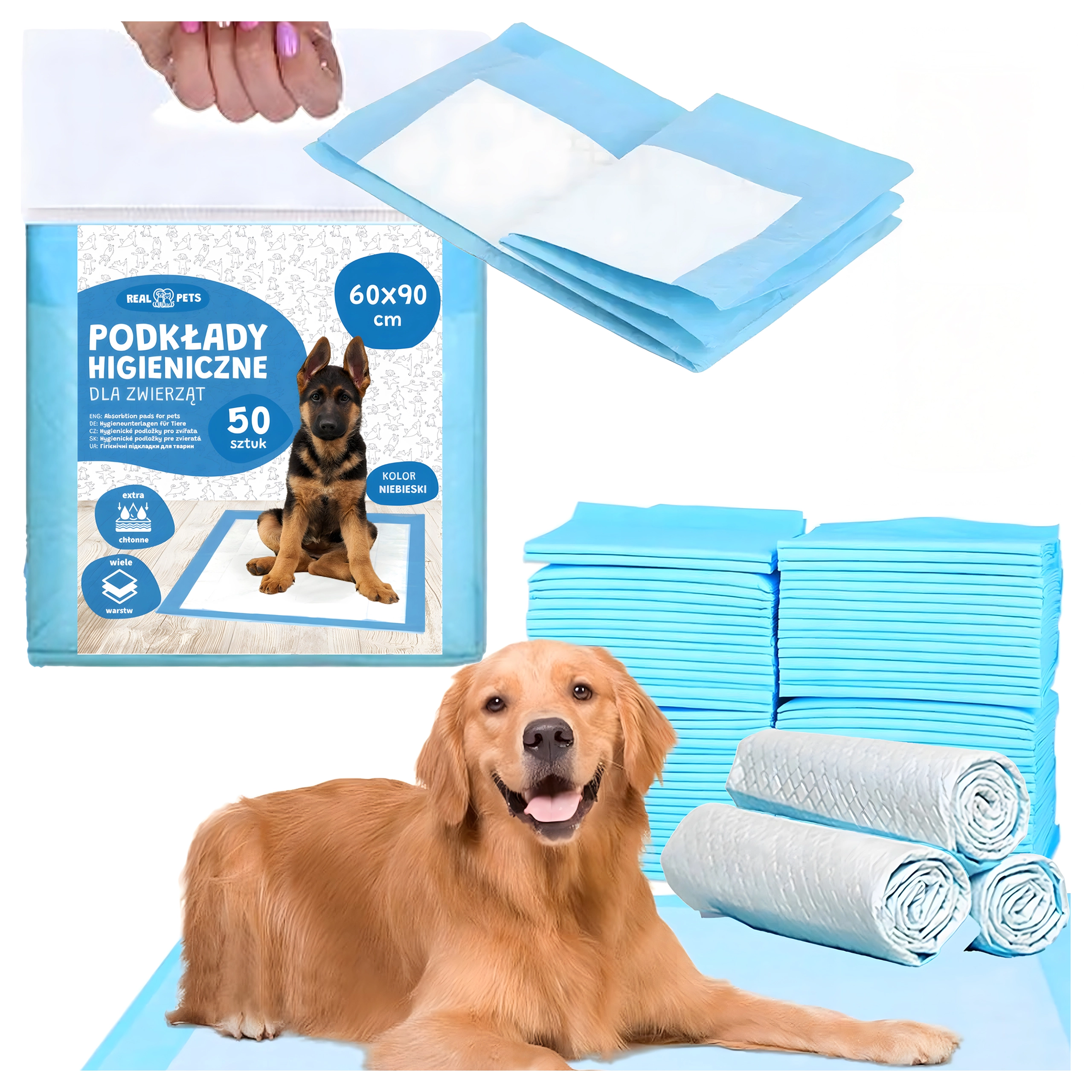 Praktikus, egyszer használatos higiénikus alátétek kutyáknak és más házikedvenceknek nagy, 60 × 90 cm-es méretben. Biztosítják a magas nedvszívó képességet, a padló átnedvesedés elleni védelmét és a kényelmes felületet, amely alkalmas kölyökkutyák szobatisztaságra neveléséhez, idős kutyák támogatásához és utazáshoz is. A csomagban 50 darab a hosszú távú használathoz otthon, fekhelyben, ketrecben és hordozóban.