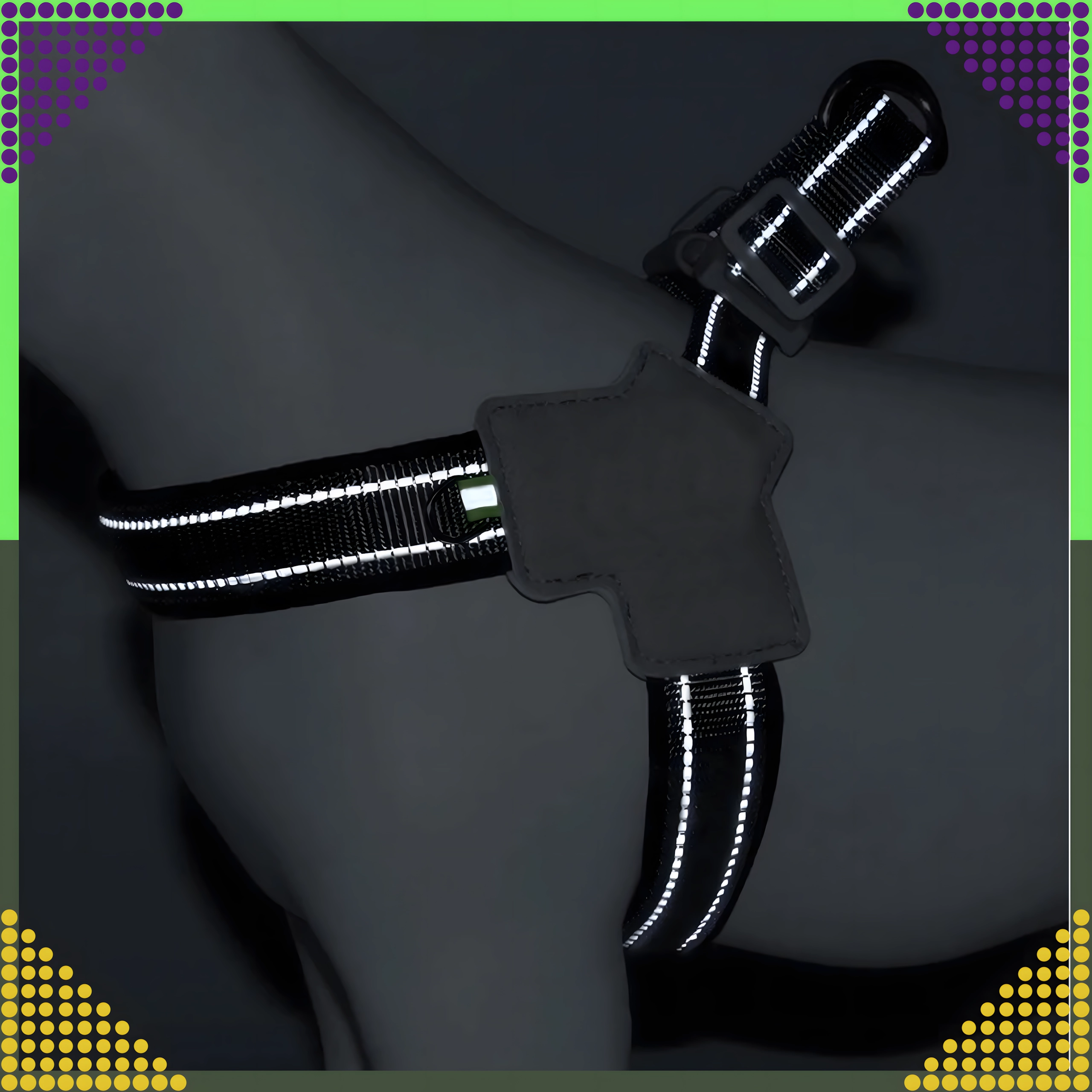 A hám kopásálló, tartós anyagokból készül, puha béléssel az egész napos kényelemért. A fényvisszaverő elemek jobb láthatóságot biztosítanak sötétedés után. A teljesen állítható pántok és a dupla reteszelésű biztonsági csat mindent a helyén tart, míg a kettős fém D-gyűrűk megbízható pórázcsatlakozást nyújtanak.
