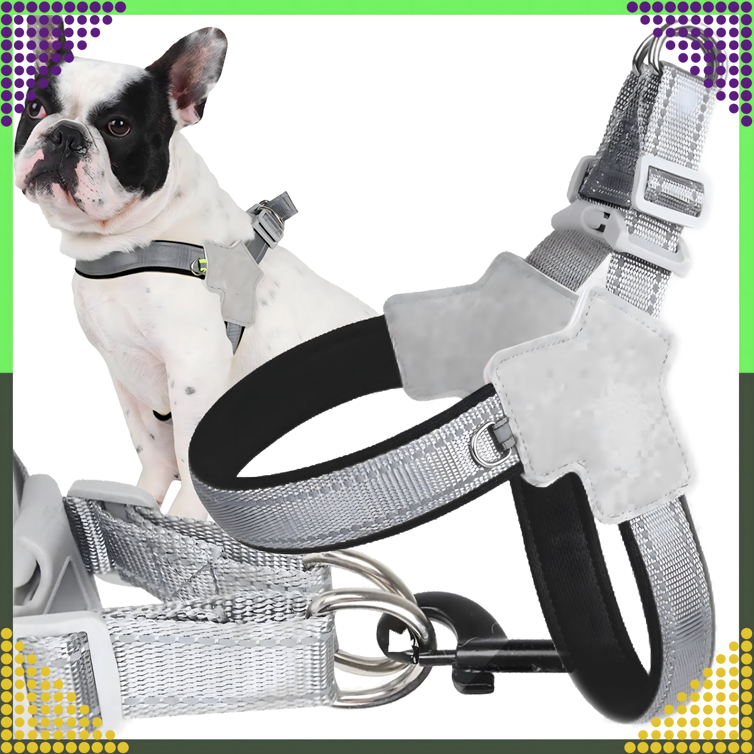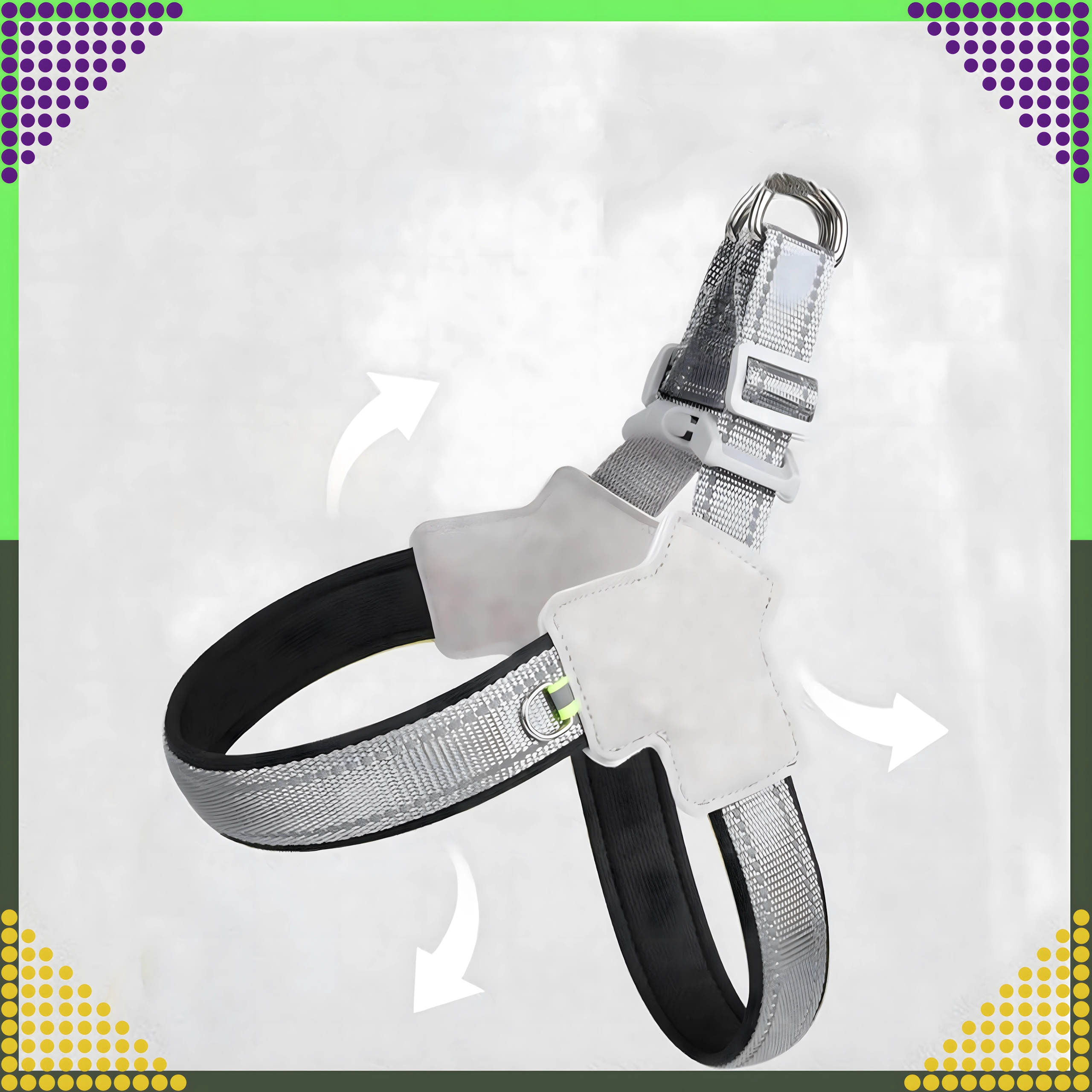 - Dupla D-gyűrű a póráz stabil és biztonságos rögzítéséhez.