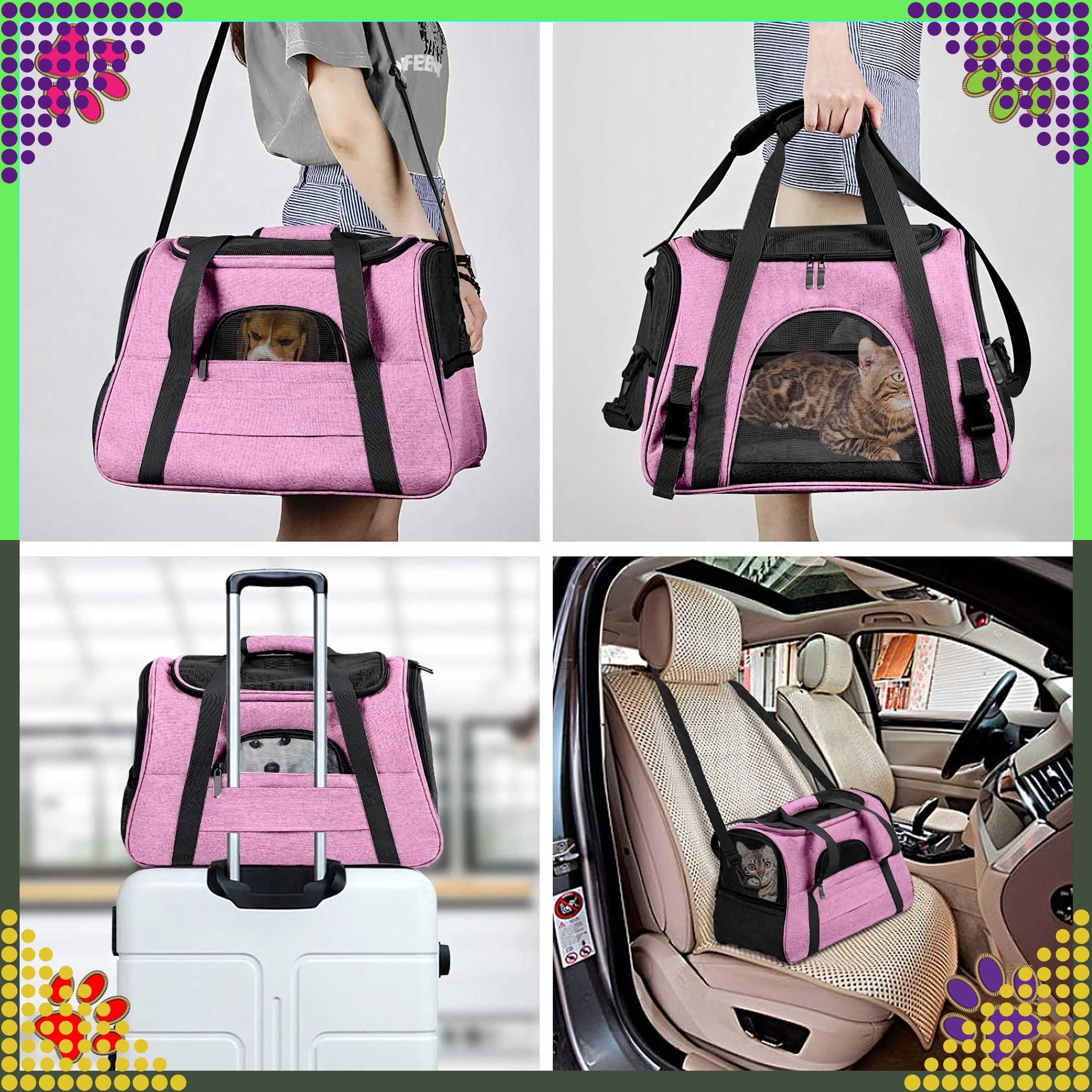 Kényelmes és biztonságos szállító kutyának, macskának vagy kis rágcsálóknak mindennapi autós és tömegközlekedési utazásokhoz. A könnyű és tartós poliészter táska nem nyeli el a szagokat, ellenáll a foltoknak és az időjárásnak, és bőséges helyet kínál jutalomfalatok és játékok számára. Ideális választás kedvencének kényelmes és biztonságos utazásához.