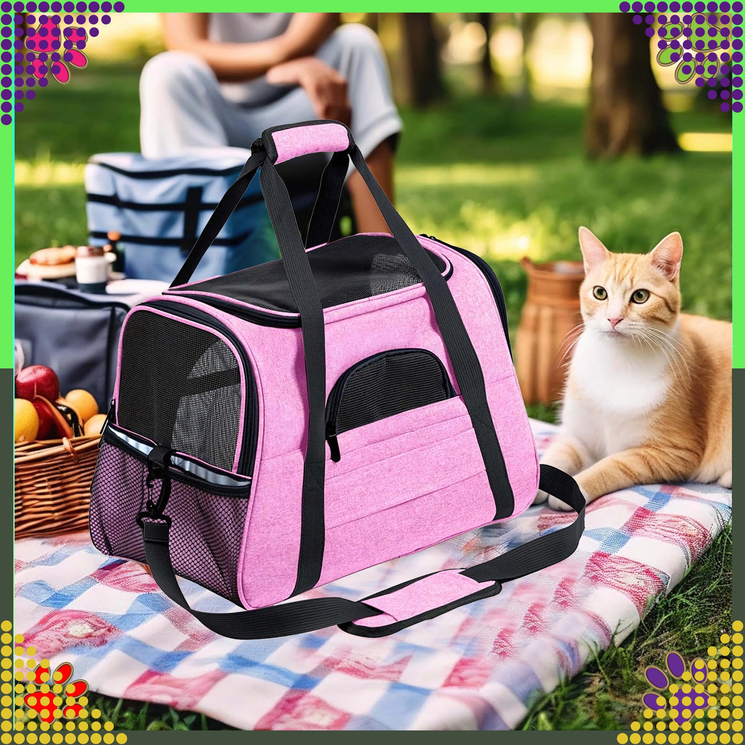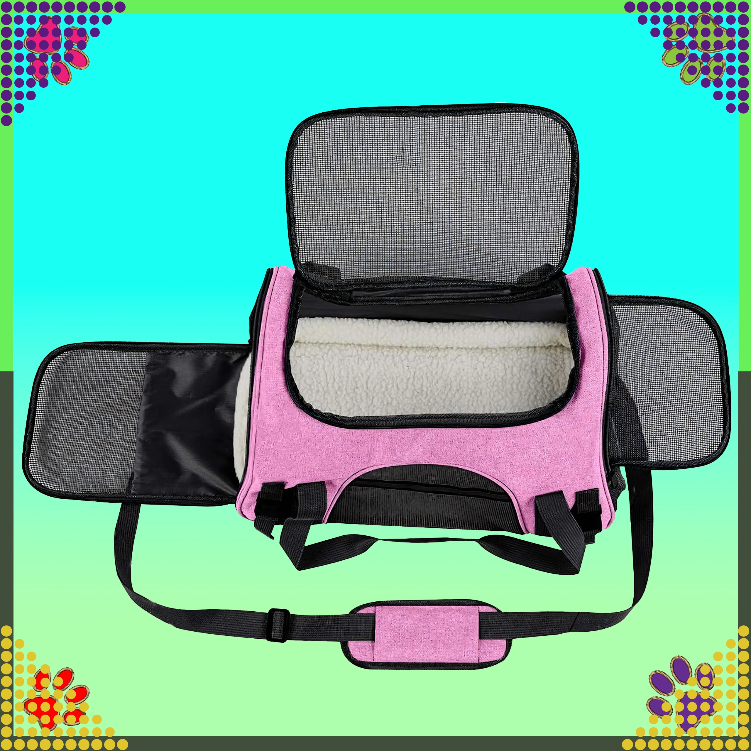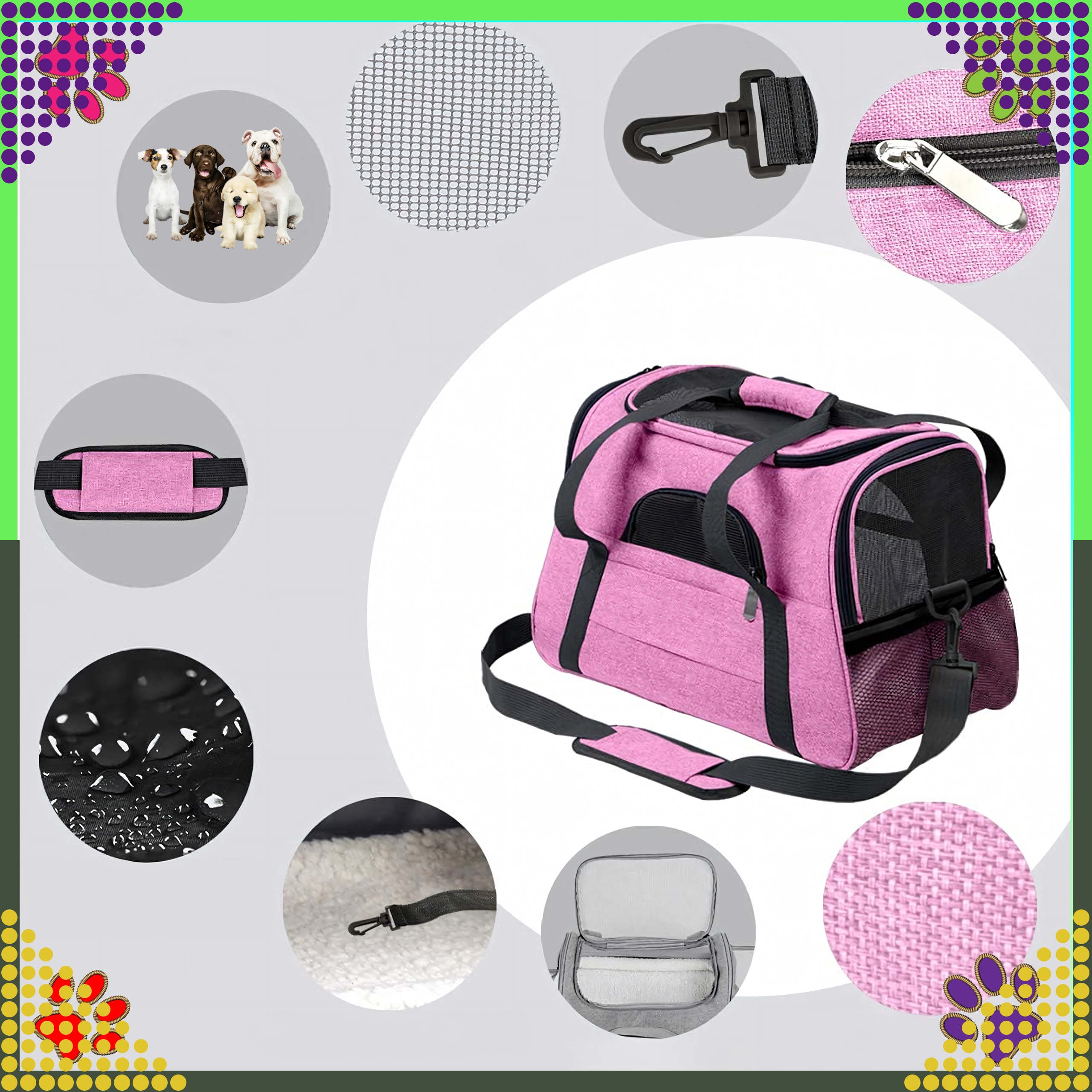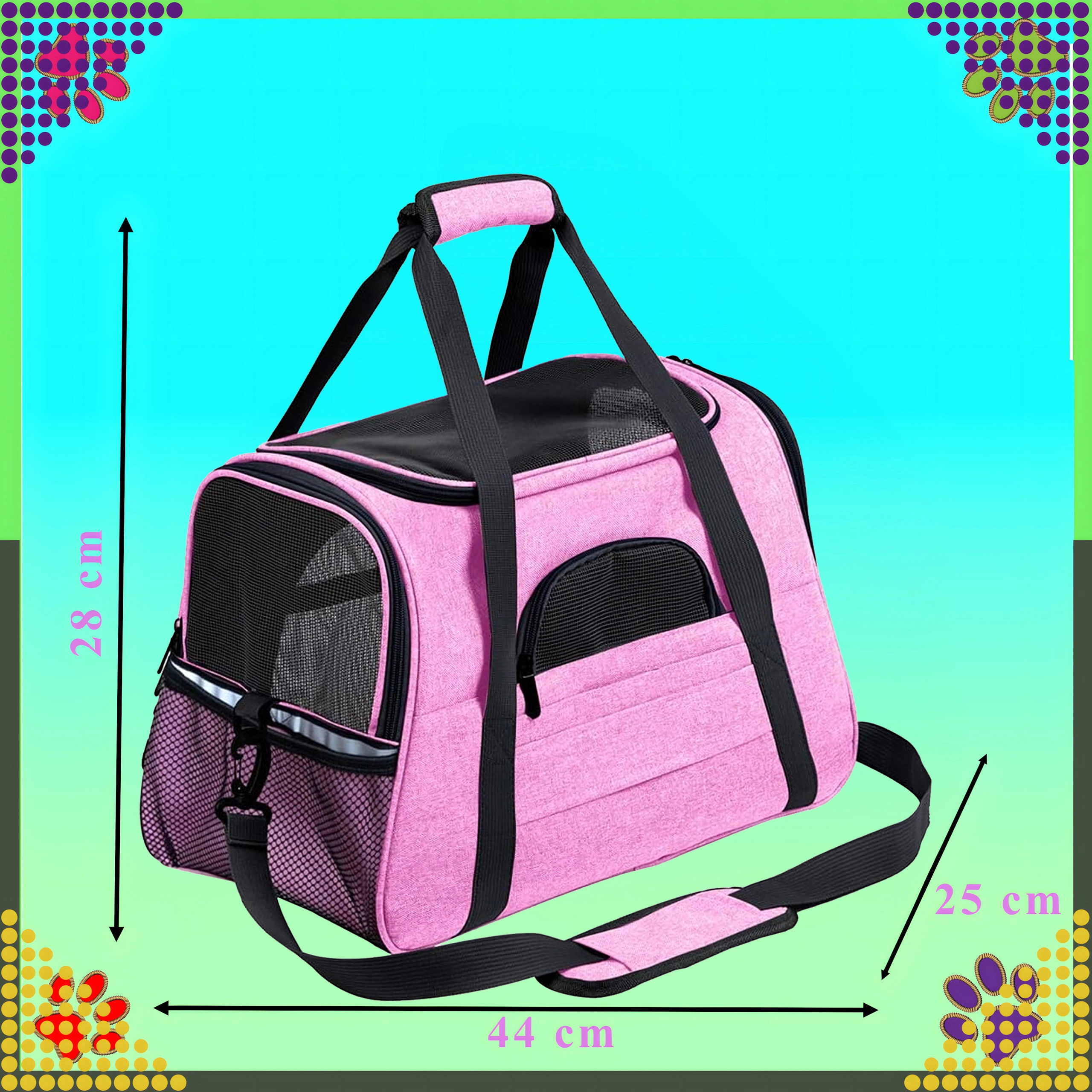 A praktikus hordozható állatszállító táska ötvözi a kényelmet, a biztonságot és a könnyű karbantartást. A minőségi poliészternek köszönhetően folt- és sérülésálló, nem veszi át a kellemetlen szagokat, és gyakori használat mellett is megőrzi megjelenését. A rózsaszín kivitel a stílus kedvelőinek szól, és nyugodt hátteret biztosít az állatnak utazás közben.