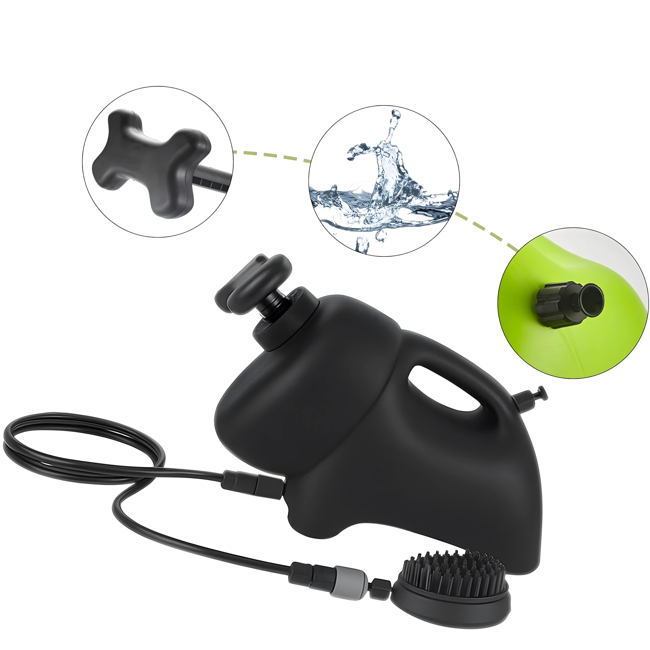 A hőszigetelt tartálynak köszönhetően a víz akár 2,5 órán át megőrzi kellemes hőmérsékletét. A hosszú tömlő és az ergonomikus fogantyú könnyű vízáram-szabályzást és kényelmes tisztítást biztosít a mancsoknál, a hasnál és a sűrű szőrzetnél is. A készülék áram nélkül működik, halk, és nemcsak háziállatokhoz ideális, hanem kerékpárok, babakocsik és lábbelik gyors leöblítéséhez is.
