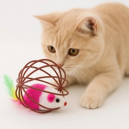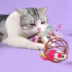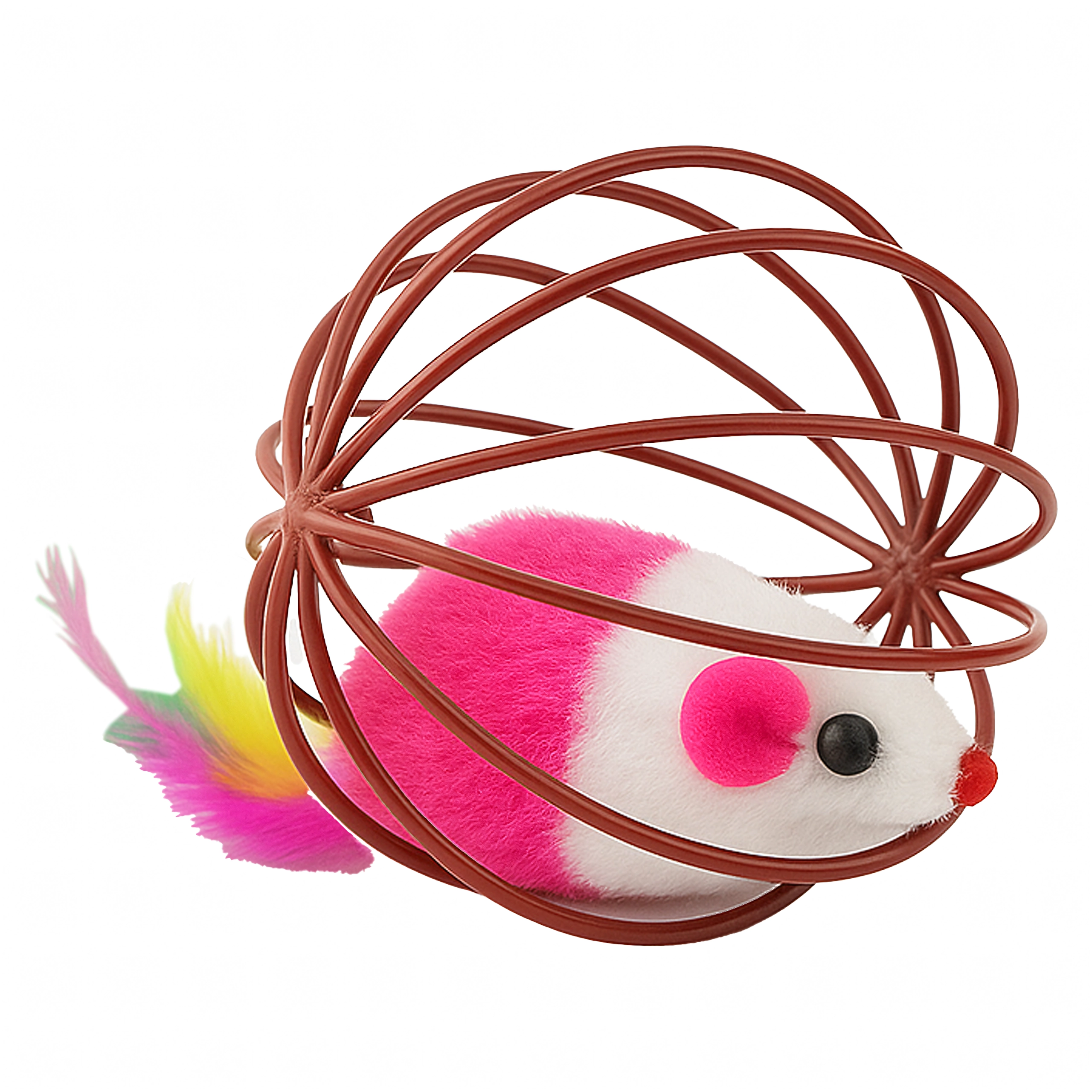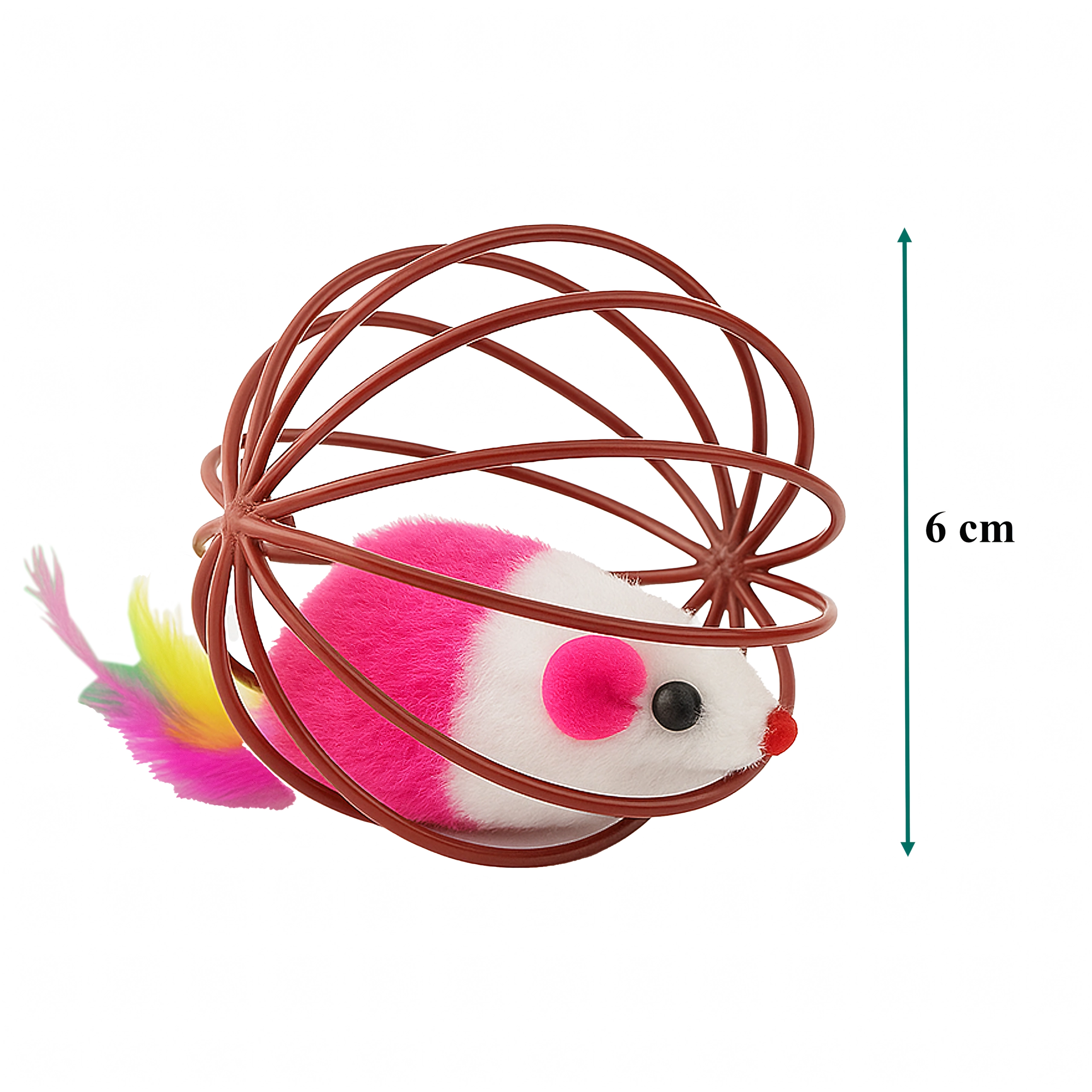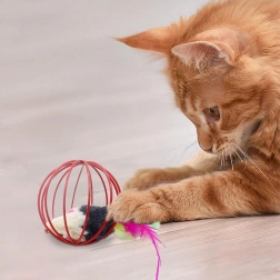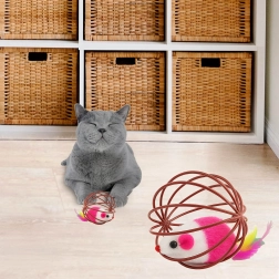A tartós drótos kialakításnak köszönhetően a játék könnyen gurul, miközben az egér biztonságban marad belül. A nyitott struktúra lehetővé teszi, hogy a macska jól megfogja és mozgassa a játékot, míg a puha plüss és a tollak vonzó textúrákat biztosítanak. Remek választás önálló és közös játékhoz a gazdival.