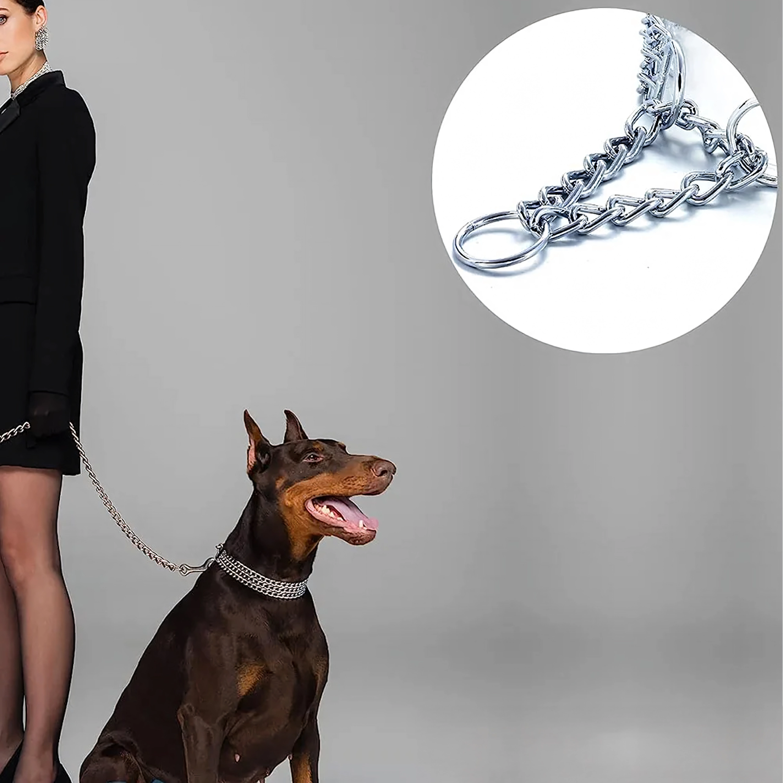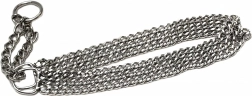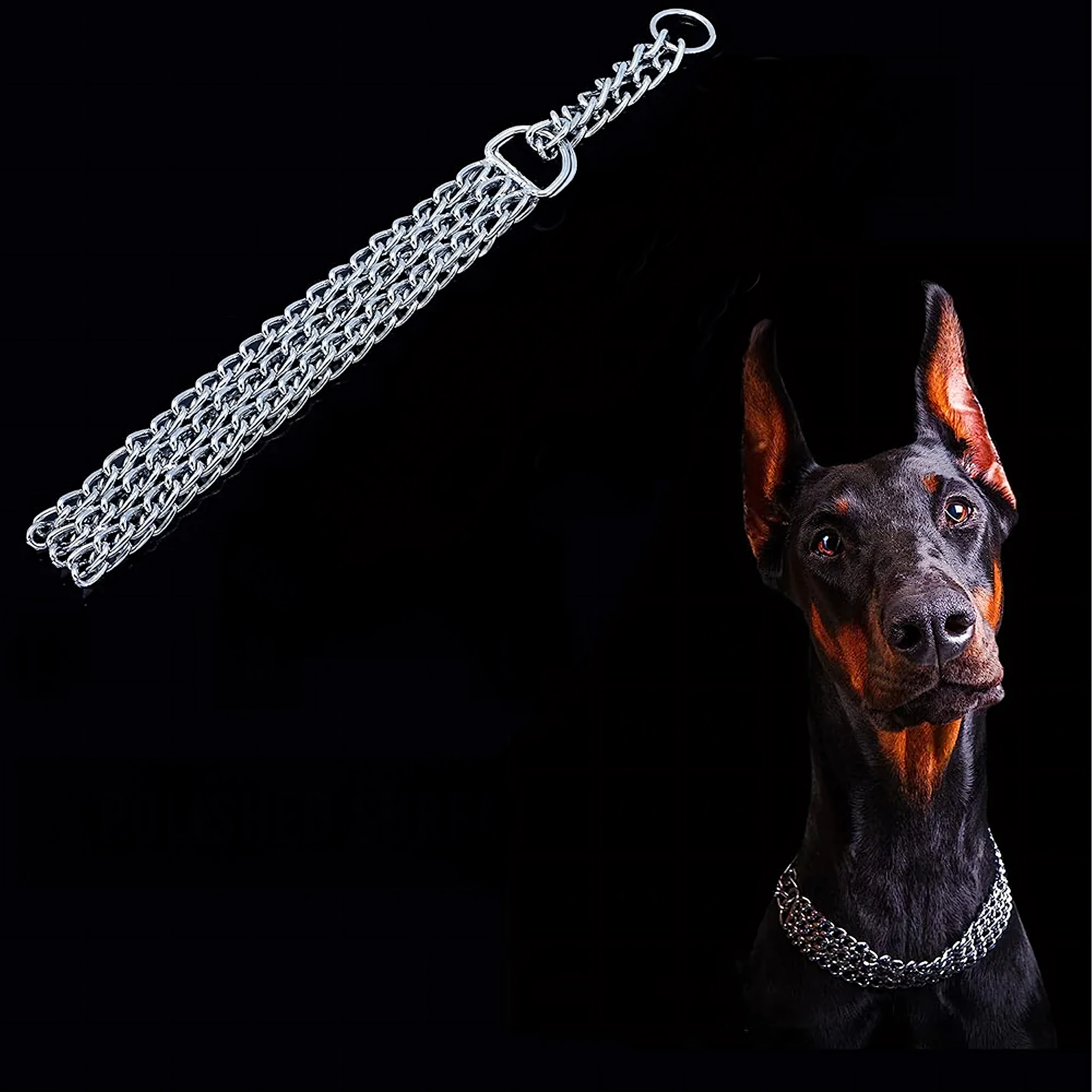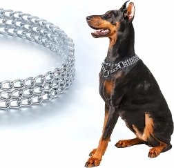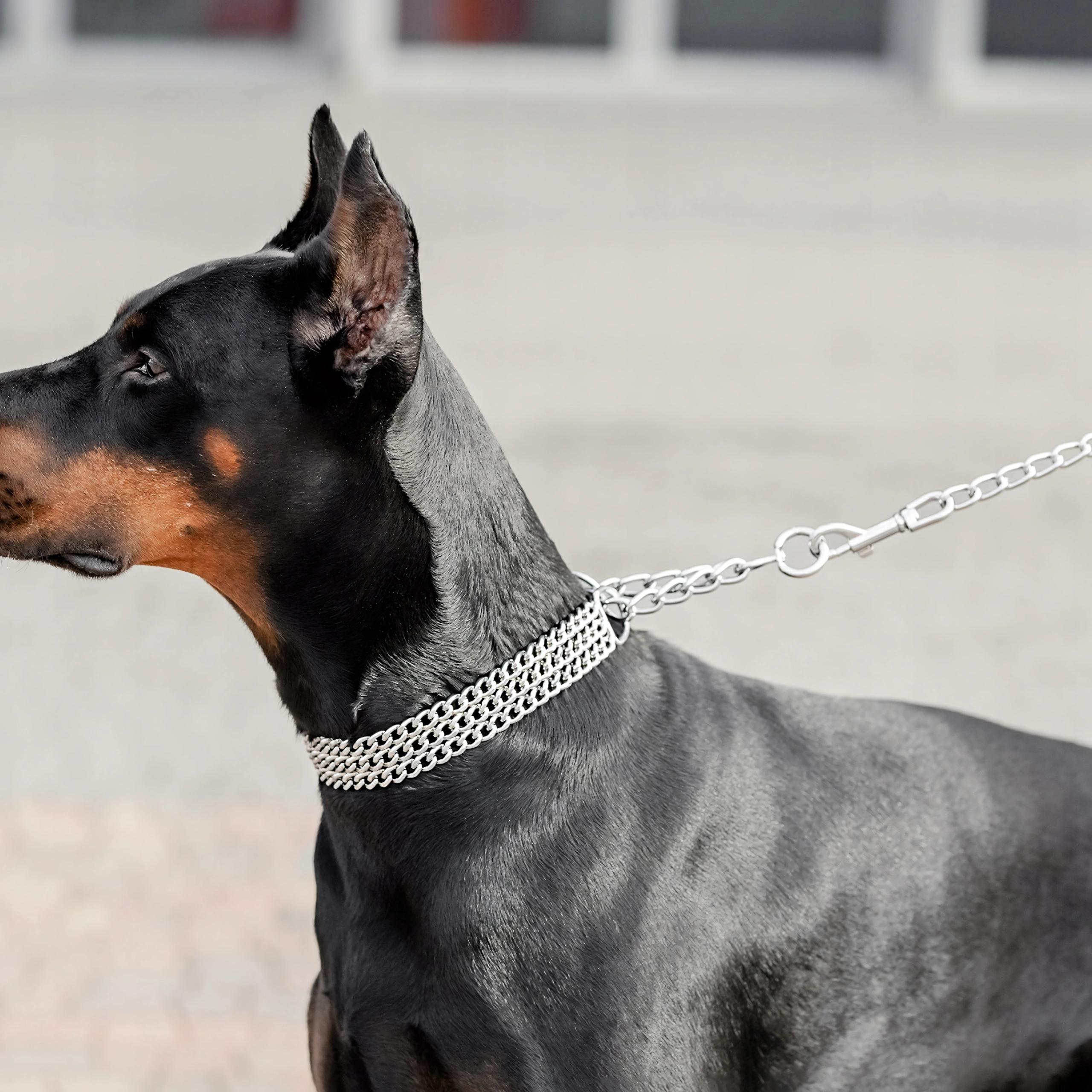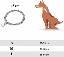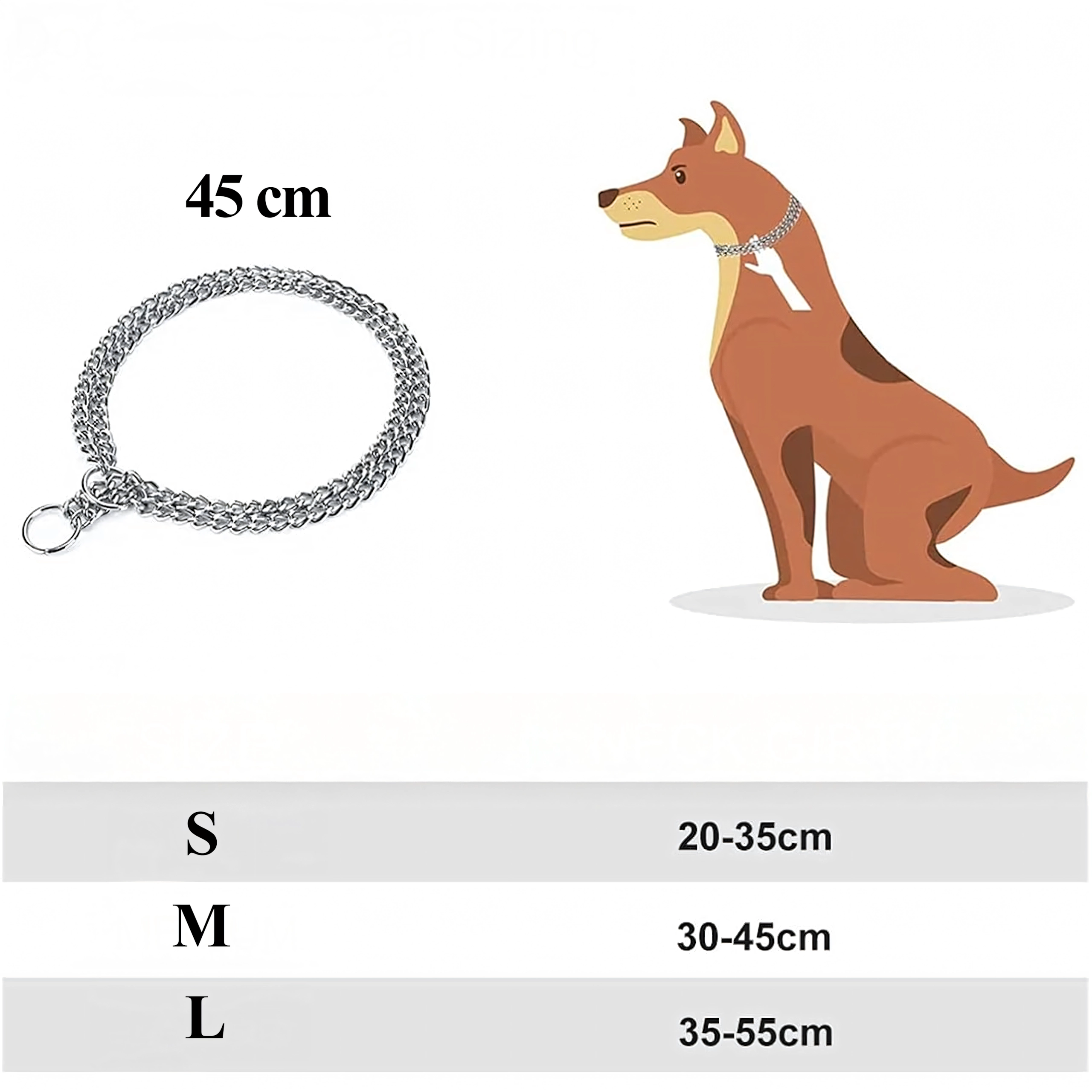 Ez a szűkítő láncos nyakörv minőségi krómozott acélból készült, amely magas szilárdságáról, korrózióállóságáról és a kutya kényelmét szolgáló sima felületéről ismert. A hármas lánc egyenletesen osztja el a nyomást, és pontos, érzékeny irányítást biztosít a kiképzés során.