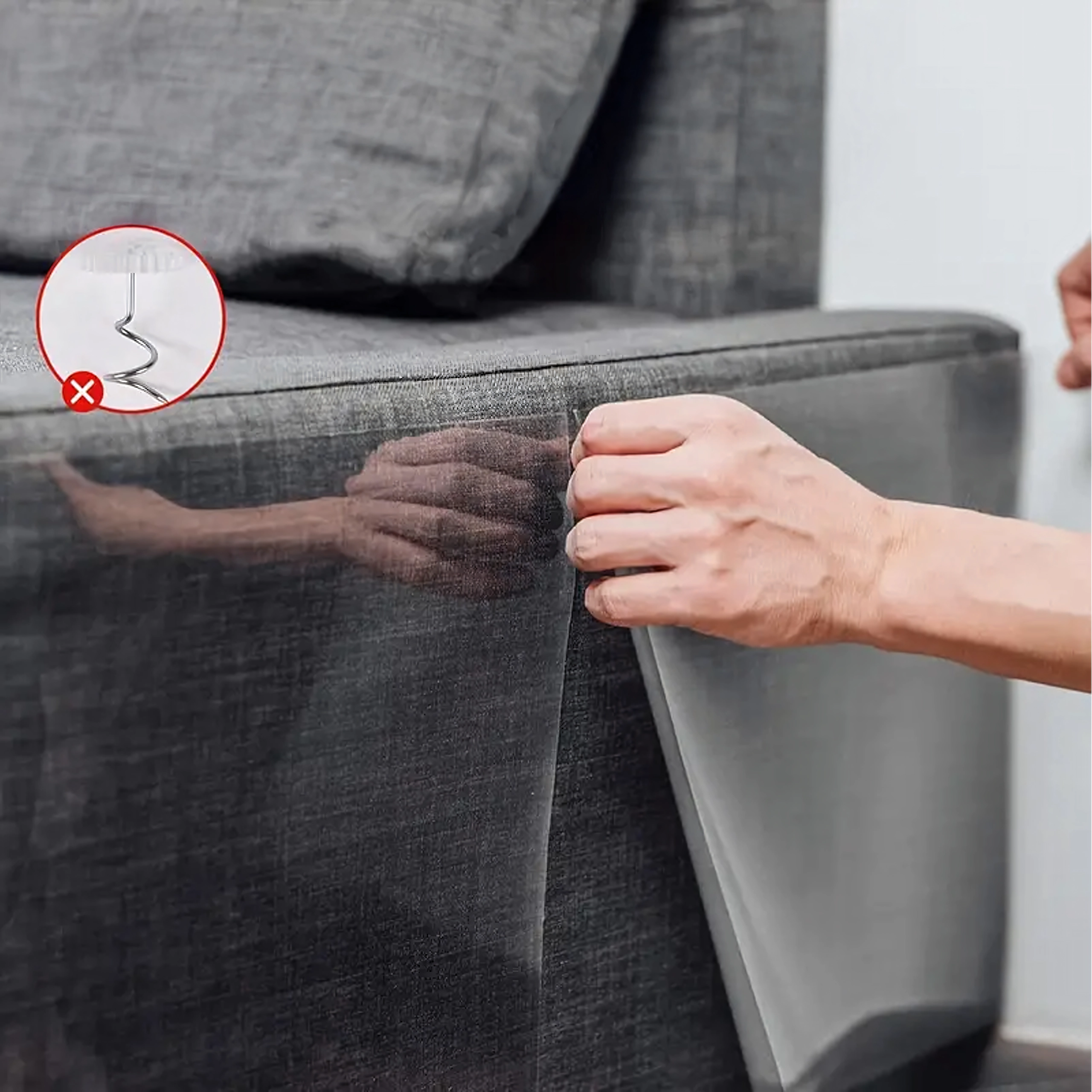 A teljesen átlátszó fólia beleolvad a bútor felületébe, és hatékonyan állítja meg a macskakarmokat anélkül, hogy megzavarná az enteriőr stílusát.
