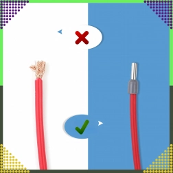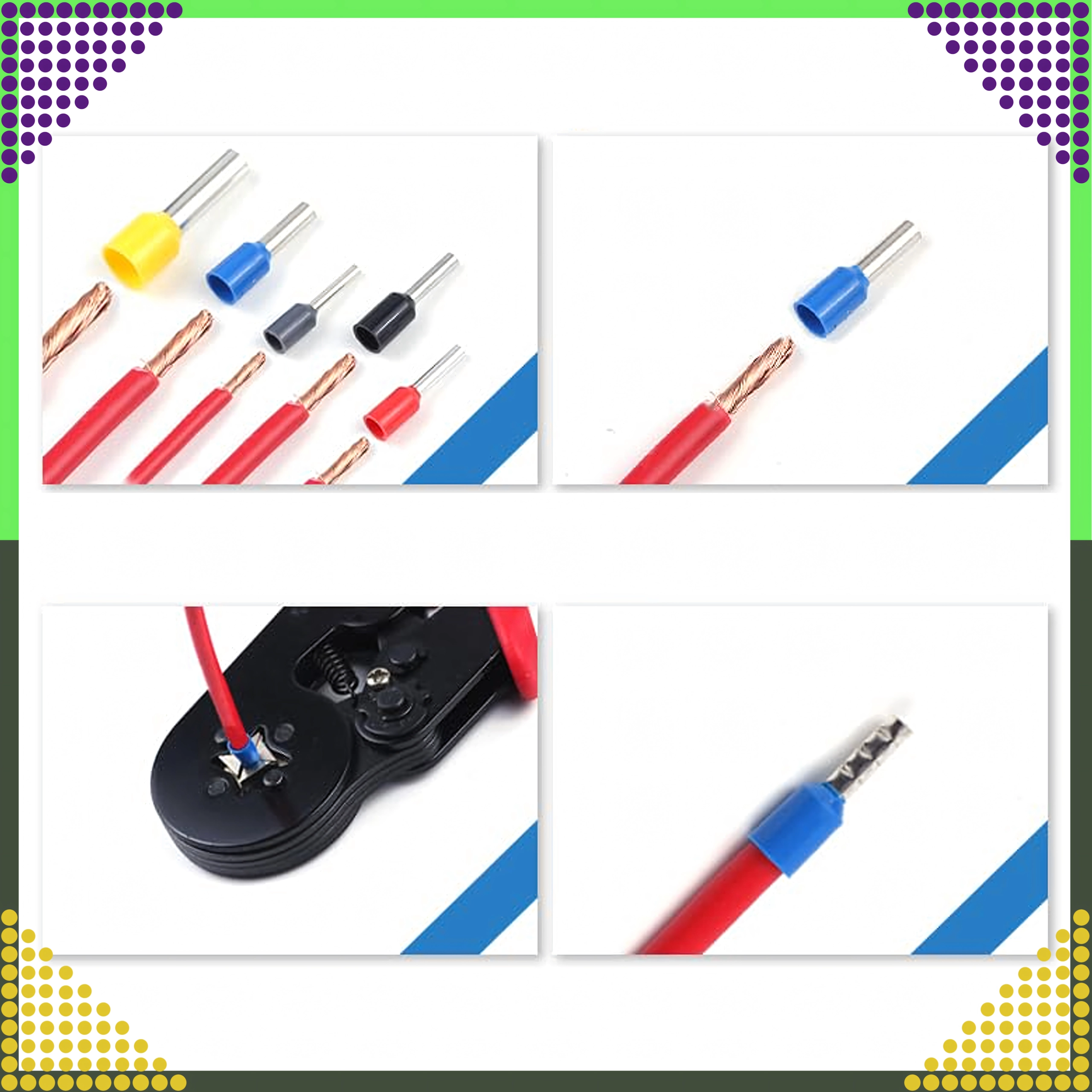 A fém betét és a szigetelő gallér biztosítja a magabiztos sajtolást a sodrott vezetéken, valamint a stabil kötést a csavaros sorkapcsokban a szálak szétesése nélkül.