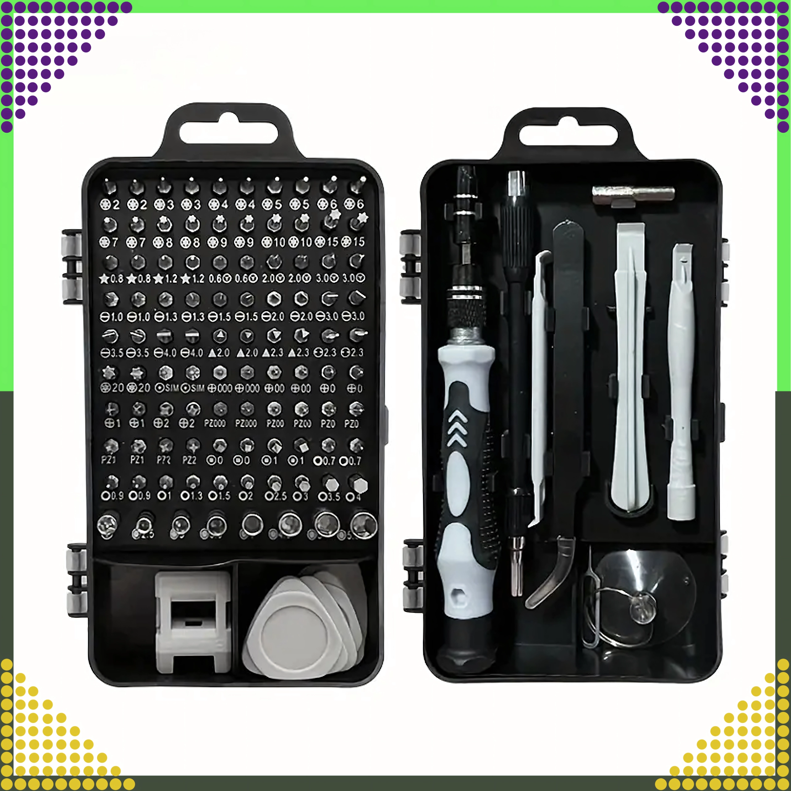 Egy mindenes szettet keres? Ez a 115 az 1-ben készlet széles precíziós bitválasztékot kombinál praktikus eszközökkel a készülékek biztonságos felnyitásához. Minden a kompakt, kétoldalas tokban kap helyet a rendre, a gyors hozzáférésre és a könnyű hordozhatóságra.