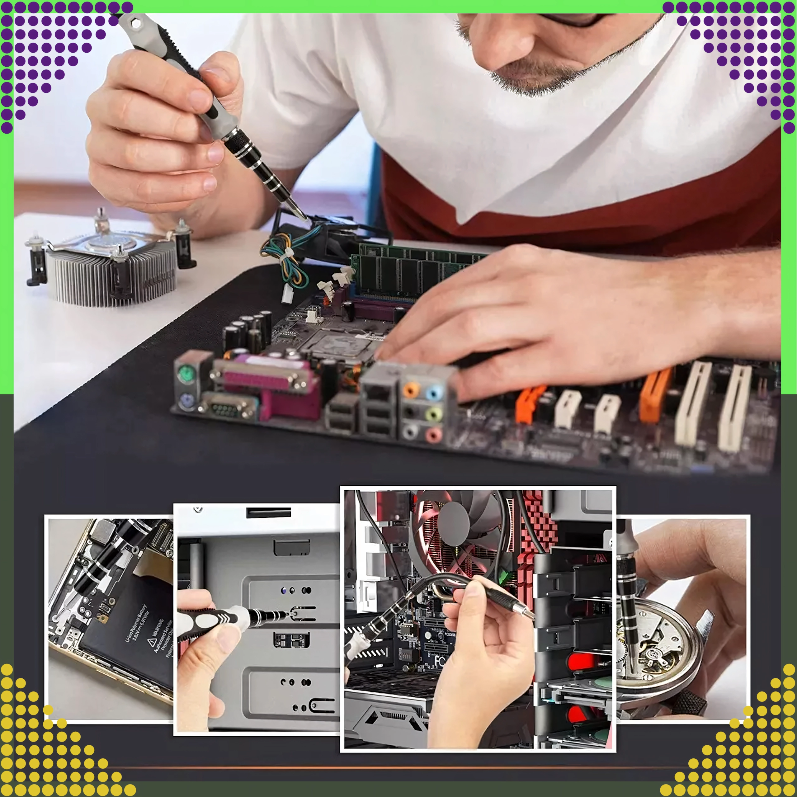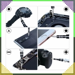 Ideális telefonok, laptopok, PC-k, játékkonzolok, fényképezőgépek javításához, valamint órás- és optikai munkákhoz. A tartós anyagok és a precíz kivitelezés garantálják a hosszú élettartamot és a biztonságos munkát szűk helyeken.