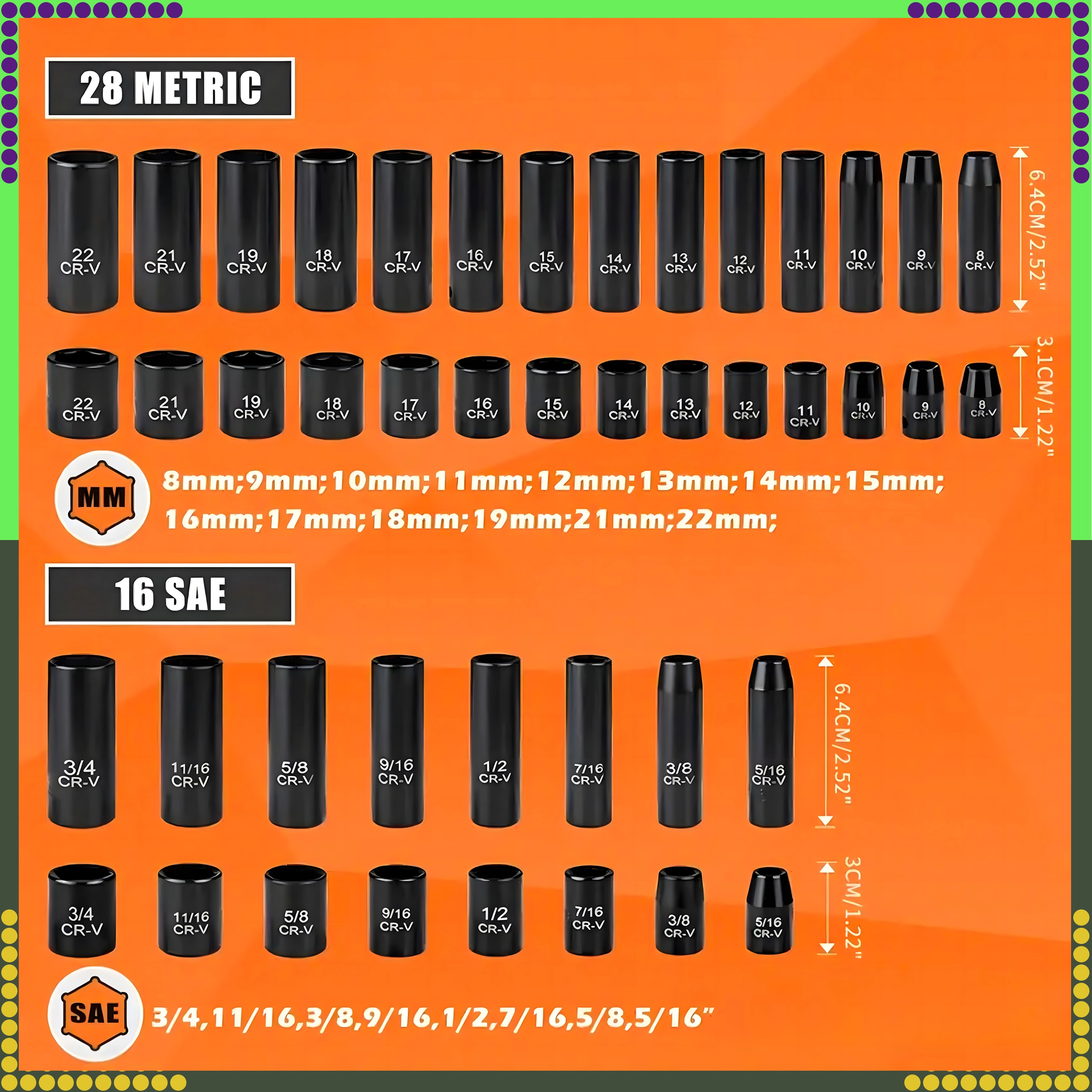 Ez a univerzális 3/8''-os ütvecsavarozó dugókulcskészlet szerelőknek, javítóknak és igényes hobbifelhasználóknak készült. Ötvözi a metrikus és SAE méreteket, így könnyedén szervizelhet európai és amerikai gépeket is. A hatszög profil biztos, csúszásmentes illeszkedést ad a csavarfejhez, csökkentve az éllekerekítés kockázatát.