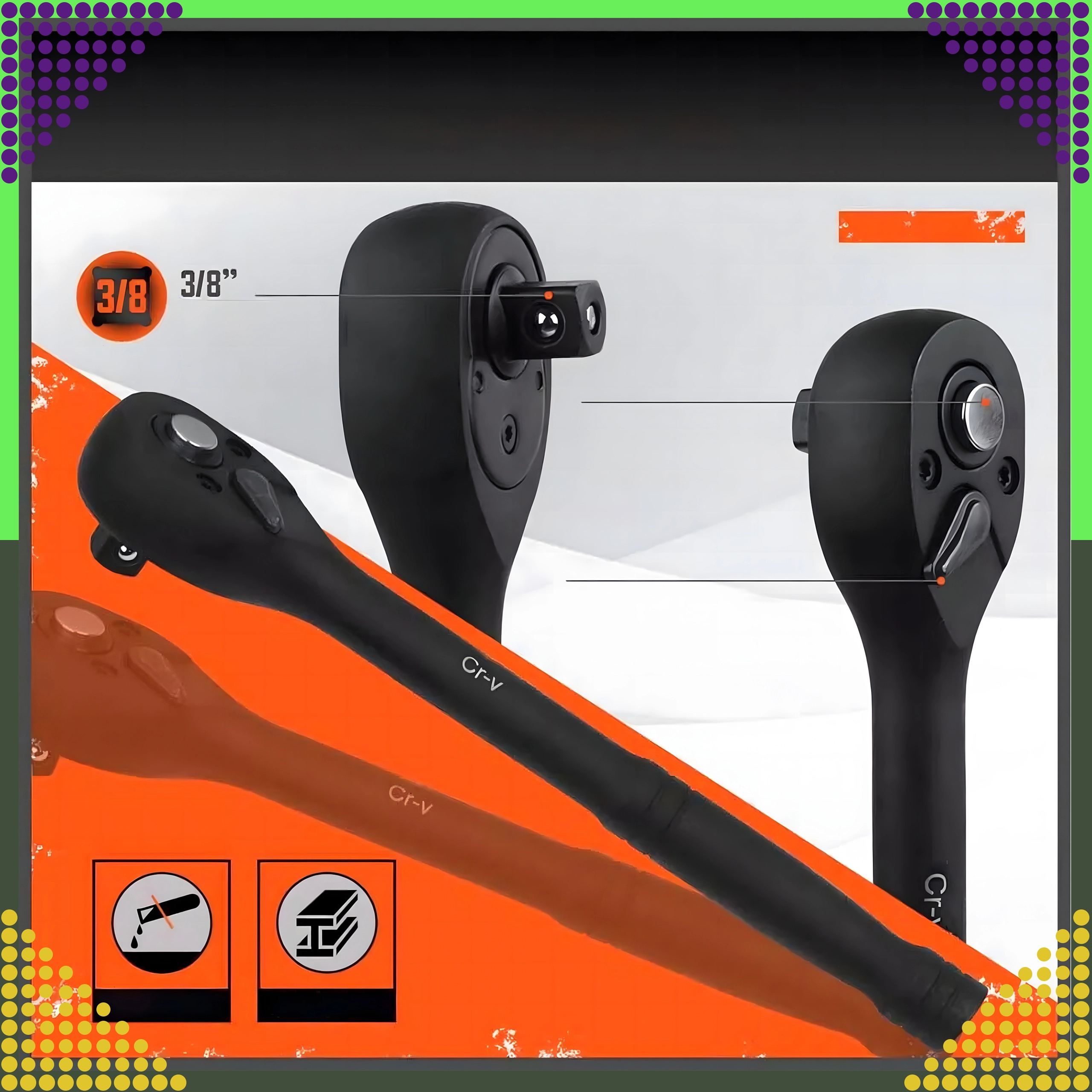 A 3/8''-os racsni és a tartozékok kényelmes meghúzást és lazítást tesznek lehetővé a motortérben vagy más szűk helyeken is.