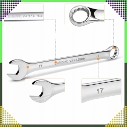 Ez a professzionális készlet egyesíti a villás és csillag véget egy szerszámban, így könnyedén meghúzhatja és meglazíthatja az anyákat és csavarokat különféle helyzetekben. A 8–24 mm mérettartománynak köszönhetően lefedi a legtöbb általános műveletet autószervizben, műhelyben és otthoni szereléseknél.