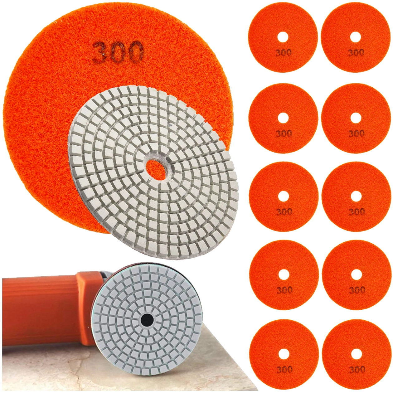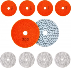 A 300-as szemcseméretű gyémánt korongok ideálisak a csiszolás köztes lépéséhez és a kemény anyagok előpolírozásához. A rugalmas, szegmentált struktúra és a központi nyílás folyamatos víz- és iszapelvezetést, stabil futást és tisztább eredményt nyújt. A narancssárga, tépőzáras hátoldal felgyorsítja a szerszám nélküli cserét.