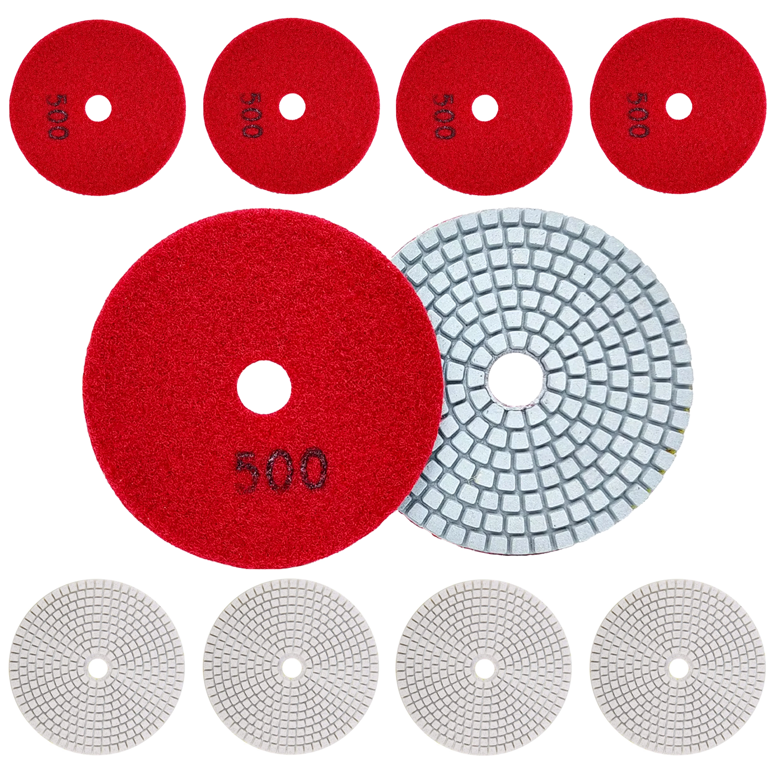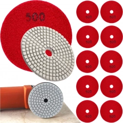 Professzionális 10 darabos, 80 mm átmérőjű gyémánt polírozó korong precíz csiszoláshoz és polírozáshoz greshez, kerámialapokhoz, kőhöz, márványhoz és gránithoz. Támogatja a száraz és nedves csiszolást, és a tépőzáras rögzítésnek köszönhetően gyors cserét tesz lehetővé. 500-as szemcseméret a hatékony finomcsiszoláshoz és sima felülethez.
