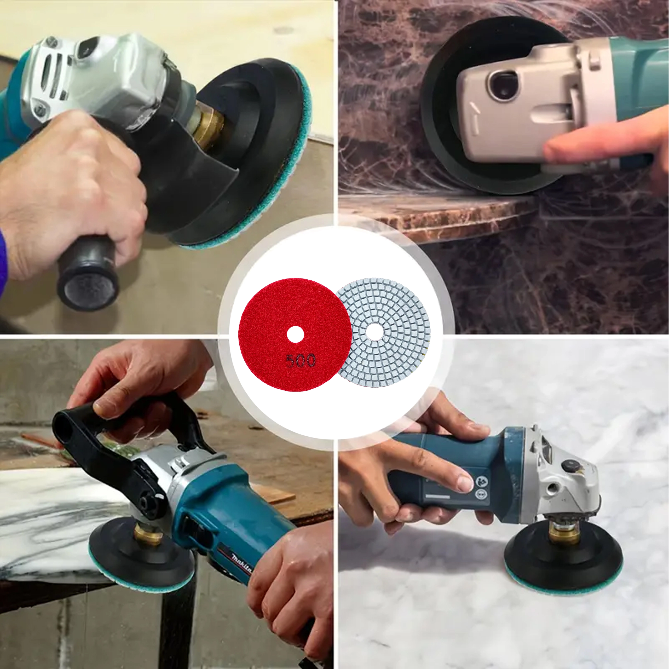 A gyors tépőzáras rögzítésnek köszönhetően a korongok könnyen cserélhetők közvetlenül a munkaterületen. Használhatóak sarokcsiszolóval vagy polírozógéppel, tépőzáras támasztótalppal, élek, síkfelületek és részletek megmunkálásához gresen, kerámián, márványon, grániton és betonon.